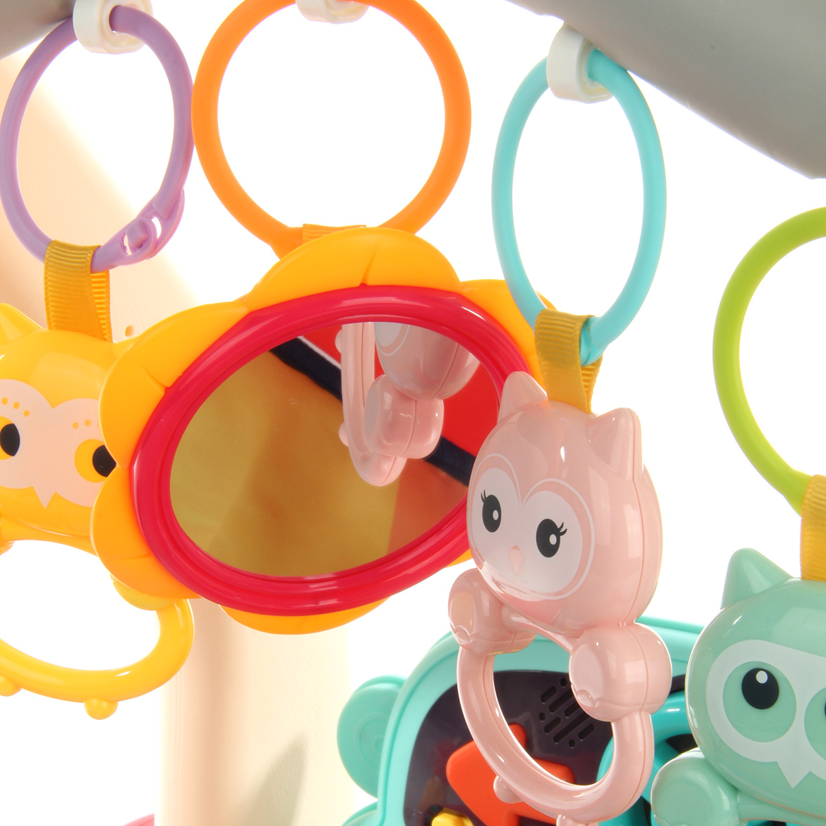 В комплекте детали для сборки ходунков 18 деталей, коврик, 5 подвесных игрушек с кольцами.