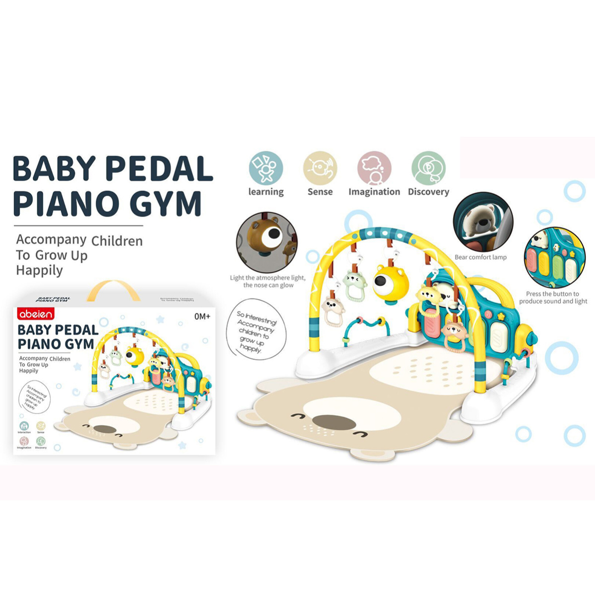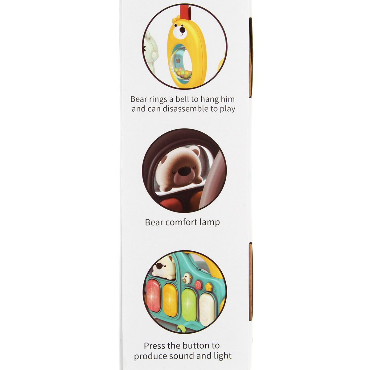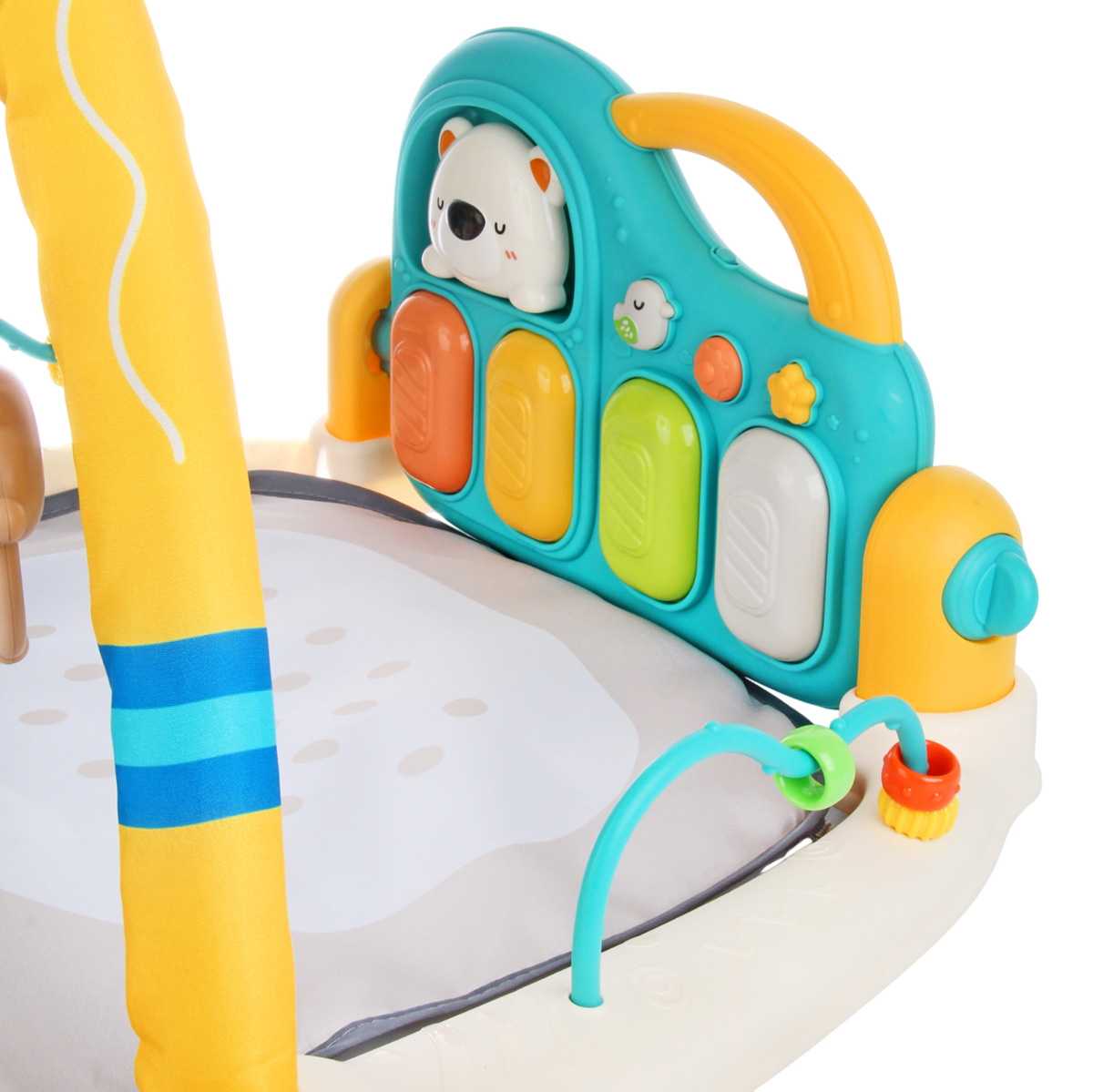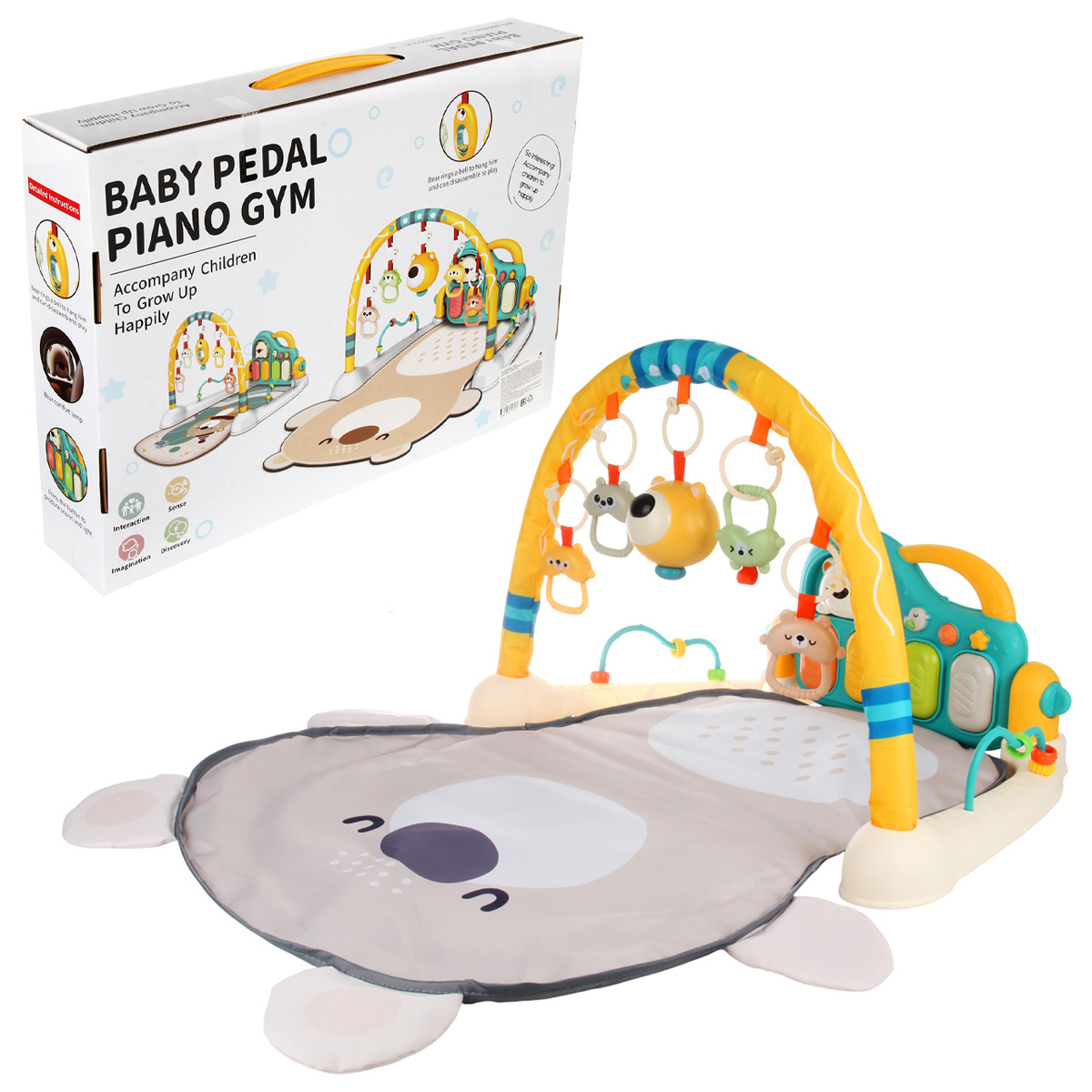 3 в 1, коврик, пианино и коврик с дугой с игрушками. Роскошный развивающий музыкальный коврик для новорожденного со съемными игрушками погремушками, оформленными в милом дизайне. Светильник в виде головы медвежонка, проигрывает колыбельные. Пианино с 3 режимами работы, издает звуки нот, проигрывает более 5 мелодий, достройка мелодий, регулировка уровня громкости. Детский коврик для ползанья имеет мягкую подкладку, легко стирать. Отличное качество исполнения, удобство хранения в разобранном виде. Такой коврик для ползанья отлично подойдет для развития тактильных и слуховых навыков ребёнка, станет замечательным подарком на Новый год и День рождения.