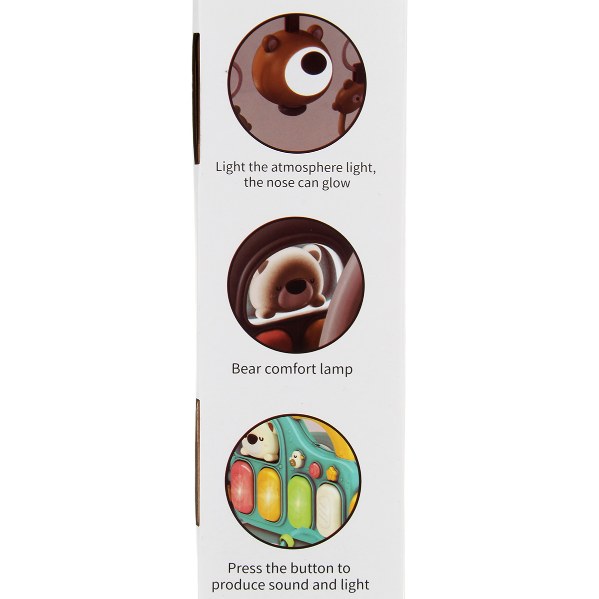 2. Голова медведя - это светильник, мордочка подсвечивается, проигрывает колыбельные, колыбельные следуют одна за другой.