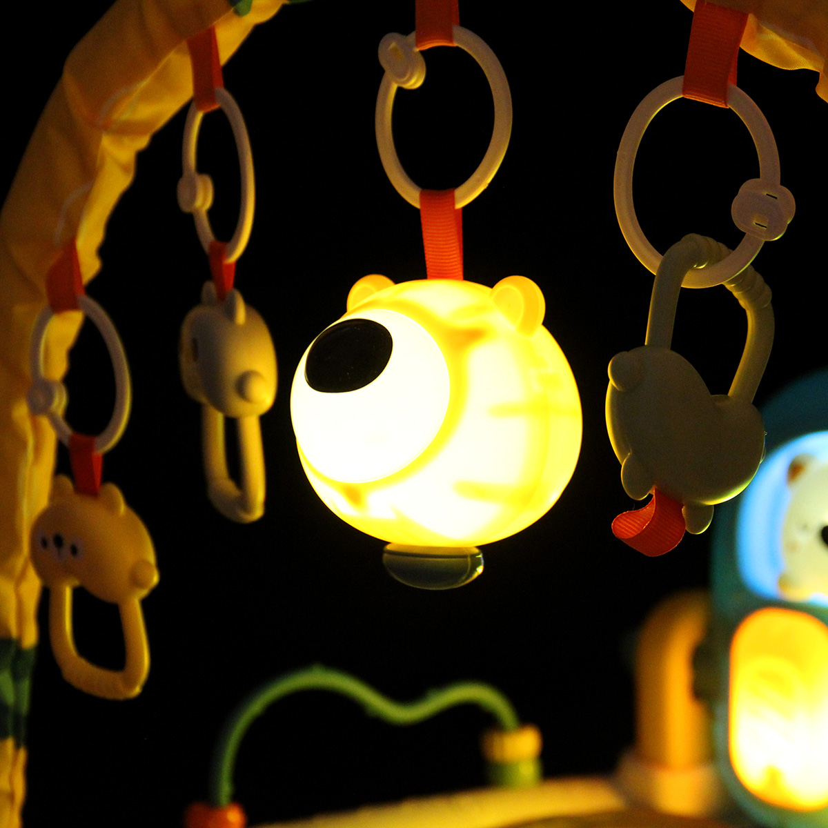 1. Игрушки можно подвесить. 4 маленькие игрушки шумят, если их потрясти, можно использовать в качестве погремушек. Есть ручки.