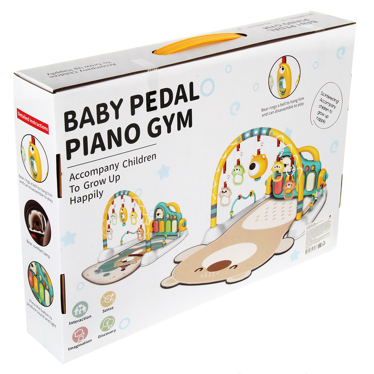 В наборе детали для сборки коврика, 5 игрушек, инструкция по сборке на английском языке.
