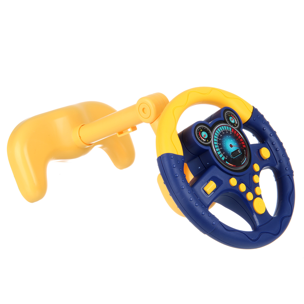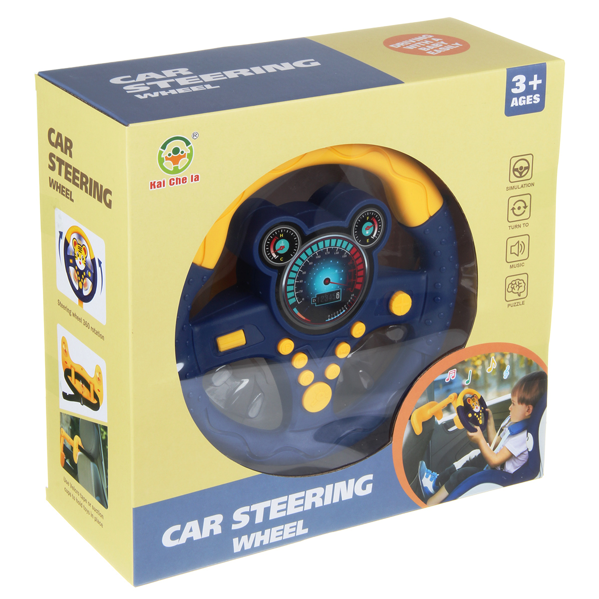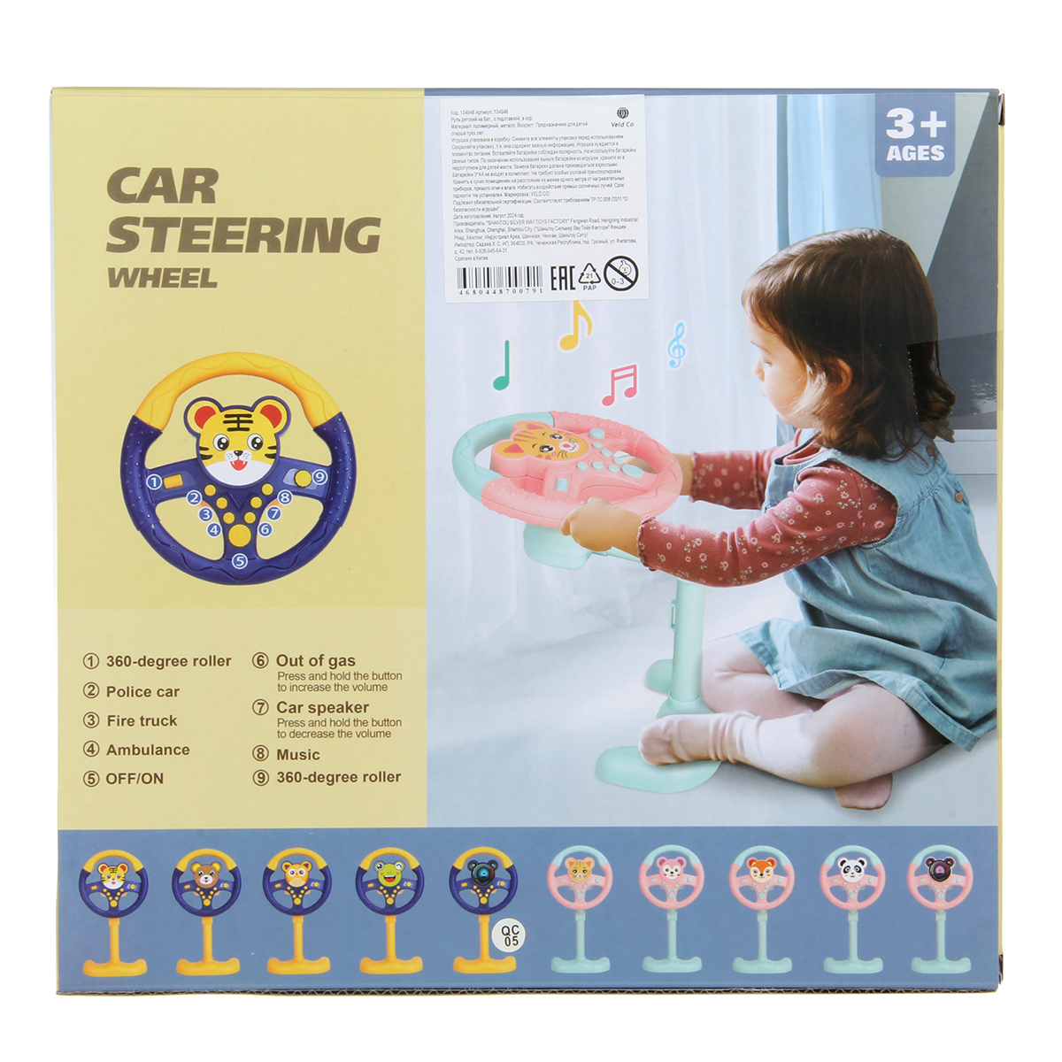 Крутим руль, нажимаем на кнопочки, слушаем звуки сирены, гудка, мелодии. Часть стойки игрового комплекса с рулем меняет угол наклона, что позволяет прикрепить музыкальную игрушку к задней части подголовника. Имитация действий за рулем, пока родитель ведет настоящую машину, ребенок может крутить игрушечный руль, отличное развлечение для детей во время путешествия.