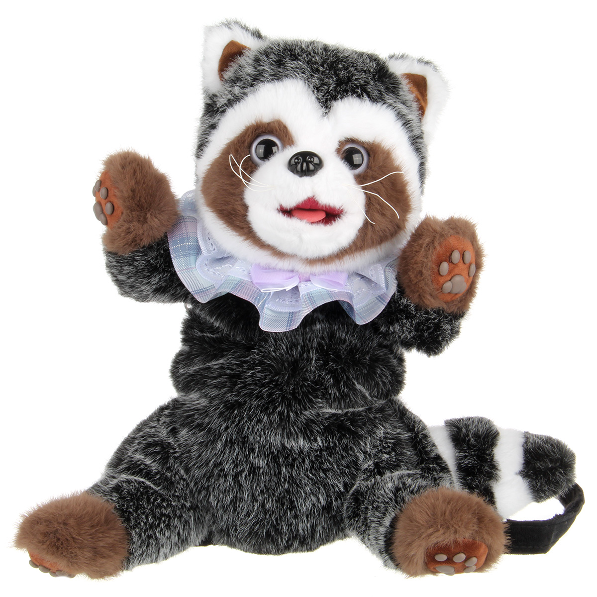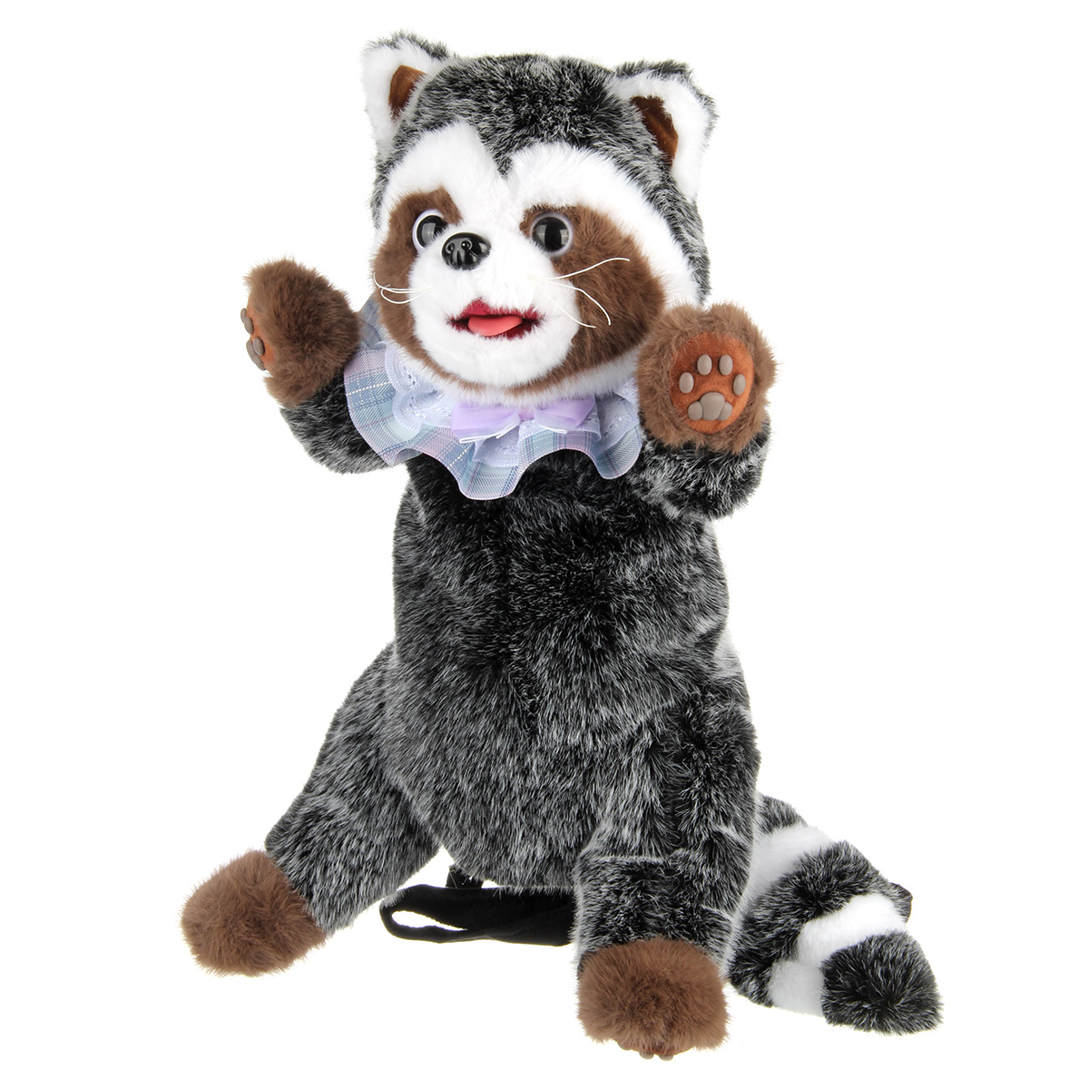 2 в 1, очаровательная игрушка енотик и рюкзачок. Снимите ремешки лямки, игрушечный питомец готов к веселым забавам. Музыкальная мягкая игрушка проигрывает более 3 песен, шевелит головой и язычком, имитируя процесс облизывания, издает разные звуки, реагирует на прикосновения. Плюшевая игрушка рюкзак енот имеет силиконовые язычок и подушечки на лапах, по тактильным ощущениям похожи на части тела настоящего питомца. Регулирующиеся по длине ремешки, воротничок можно снять. Мягкая, приятная на ощупь шерстка, глазки бусинки. Игрушечный интерактивный рюкзак отличается качественным исполнением, компактными размерами, выполнен из безопасных материалов. Мягкая интерактивная игрушка станет замечательным подарком мальчику и девочке на Новый год и День рождения.