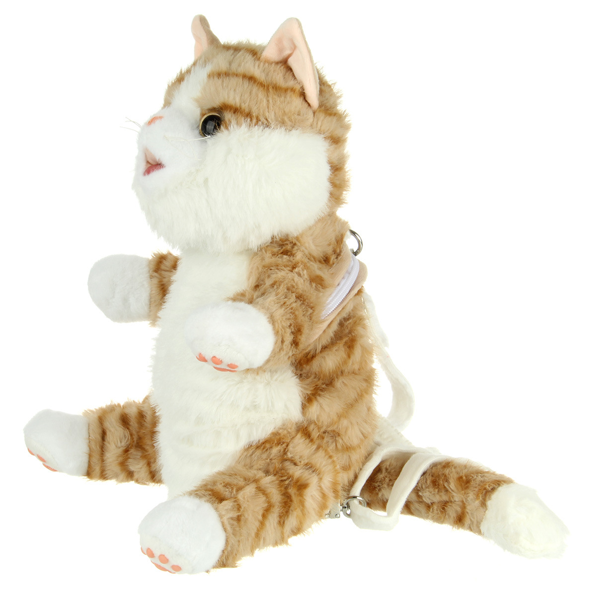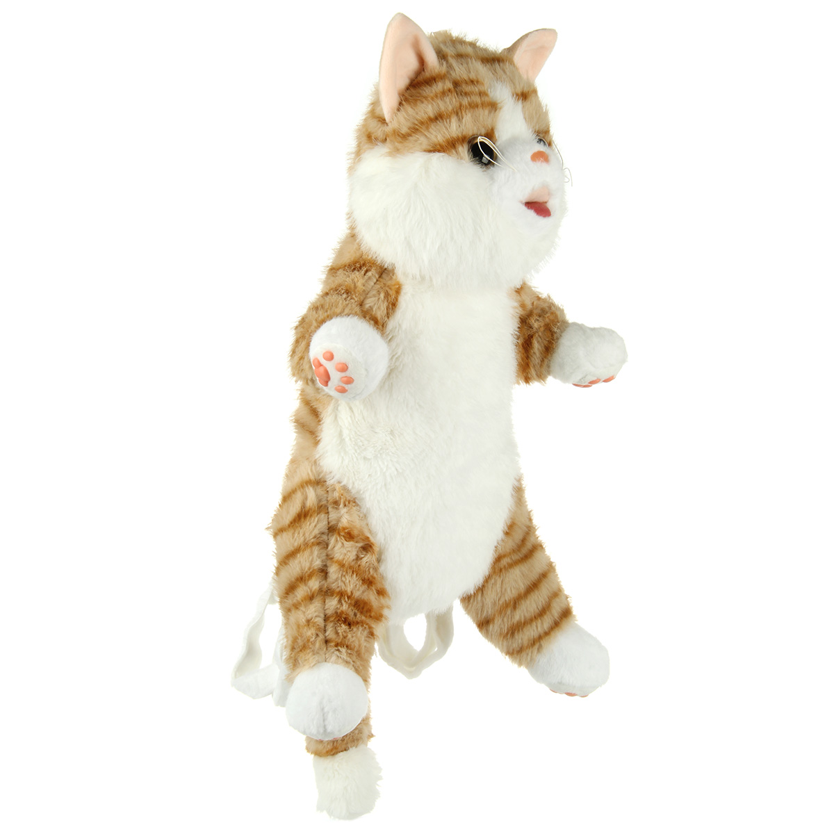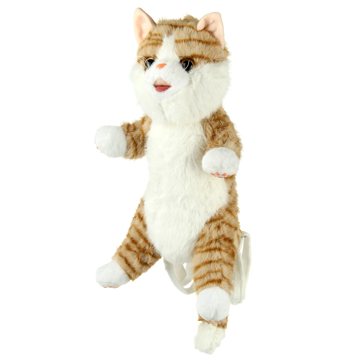 2 в 1, очаровательная игрушка котик и рюкзачок. Снимите ремешки лямки, игрушечный питомец готов к веселым забавам. Музыкальная мягкая игрушка проигрывает более 3 песен, шевелит головой и язычком, имитируя процесс облизывания, мяукает, реагирует на прикосновения. Плюшевая игрушка рюкзак кот имеет силиконовые язычок и подушечки на лапах, по тактильным ощущениям похожи на части тела настоящего питомца. Регулирующиеся по длине ремешки, воротничок можно снять. Мягкая, приятная на ощупь шерстка, глазки бусинки. Игрушечный интерактивный рюкзак отличается качественным исполнением, компактными размерами, выполнен из безопасных материалов. Мягкая интерактивная игрушка станет замечательным подарком мальчику и девочке на Новый год и День рождения.