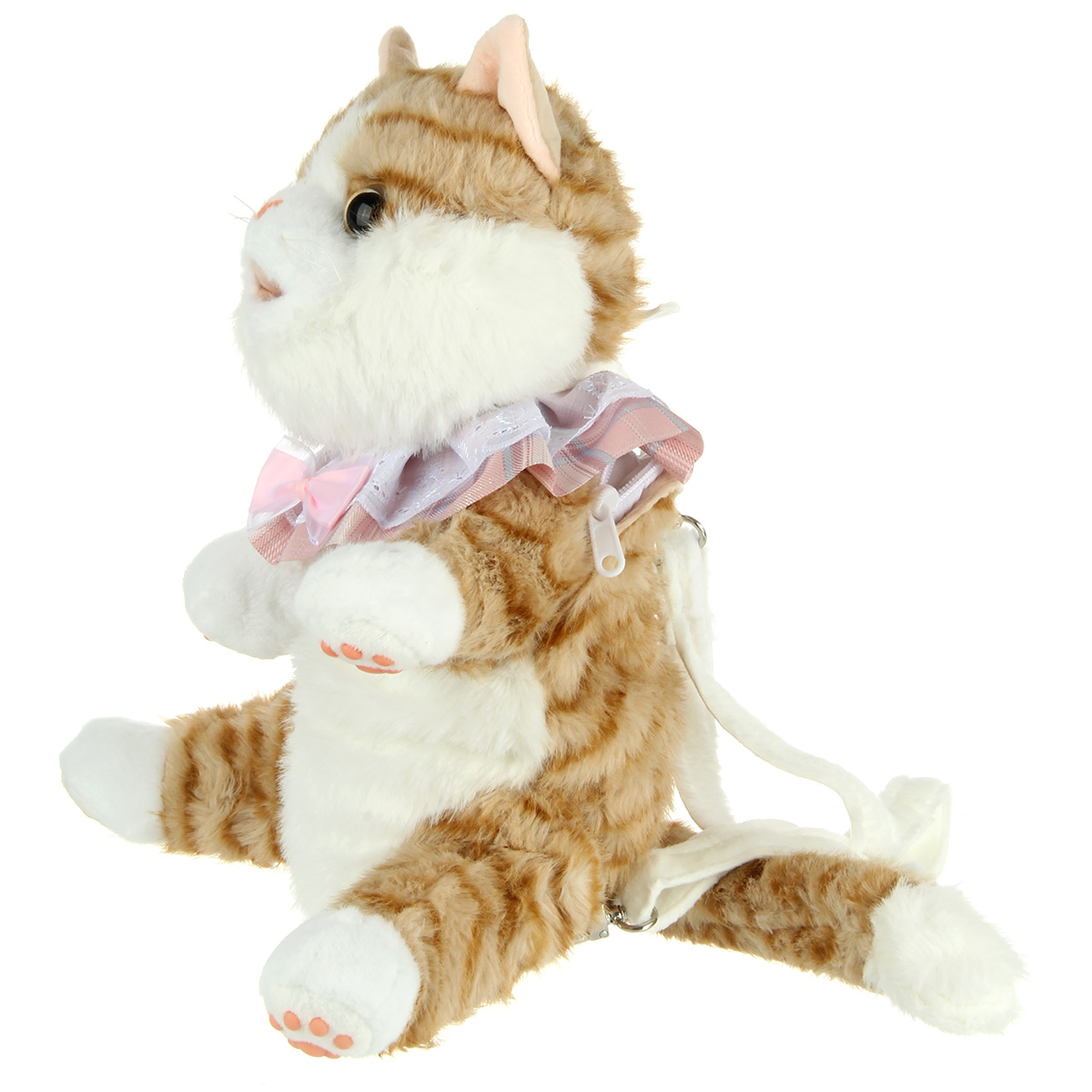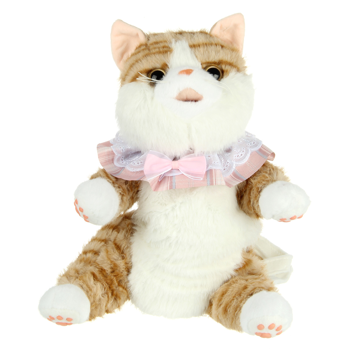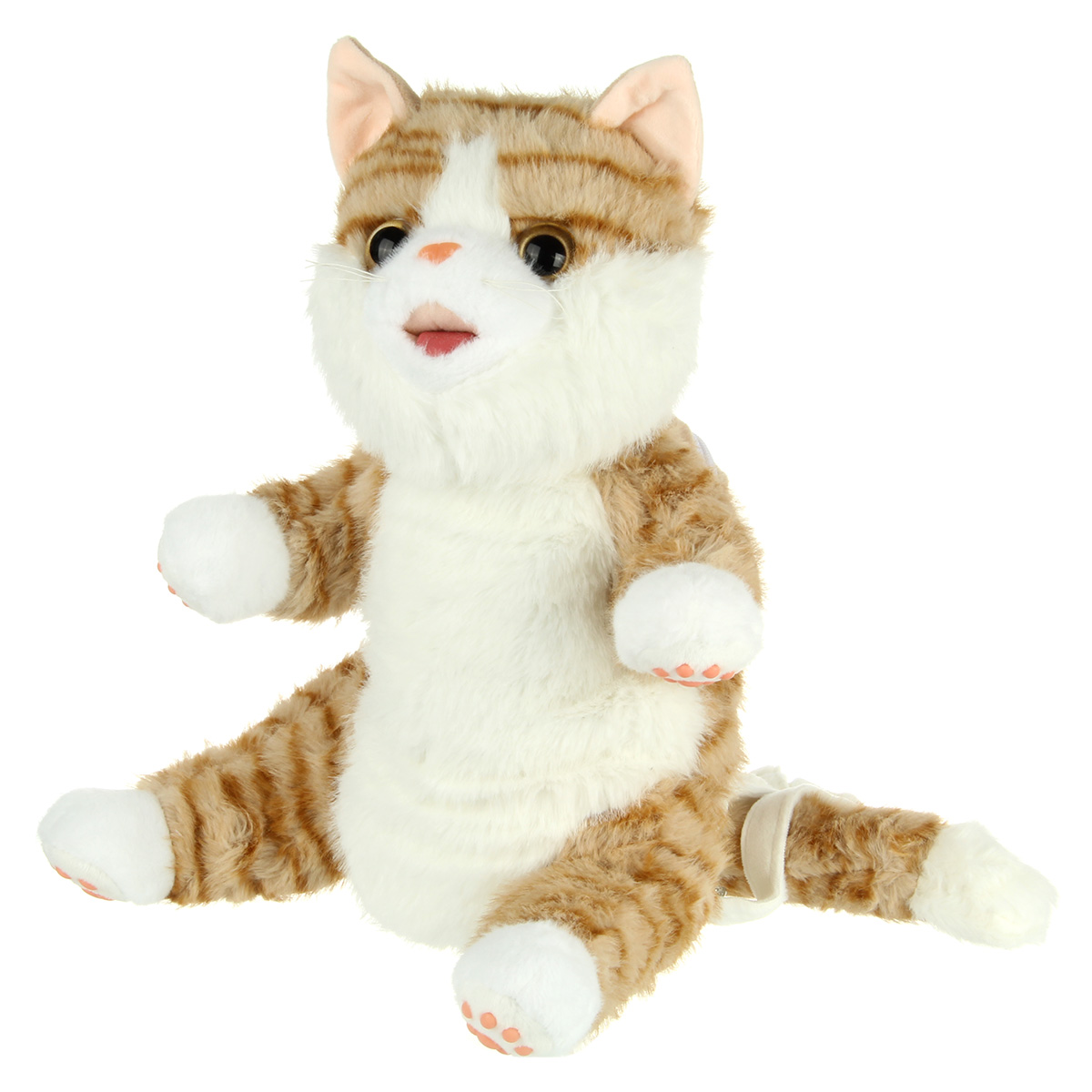 2 в 1, очаровательная игрушка котик и рюкзачок. Снимите ремешки лямки, игрушечный питомец готов к веселым забавам. Музыкальная мягкая игрушка проигрывает более 3 песен, шевелит головой и язычком, имитируя процесс облизывания, мяукает, реагирует на прикосновения. Плюшевая игрушка рюкзак кот имеет силиконовые язычок и подушечки на лапах, по тактильным ощущениям похожи на части тела настоящего питомца. Регулирующиеся по длине ремешки, воротничок можно снять. Мягкая, приятная на ощупь шерстка, глазки бусинки. Игрушечный интерактивный рюкзак отличается качественным исполнением, компактными размерами, выполнен из безопасных материалов. Мягкая интерактивная игрушка станет замечательным подарком мальчику и девочке на Новый год и День рождения.