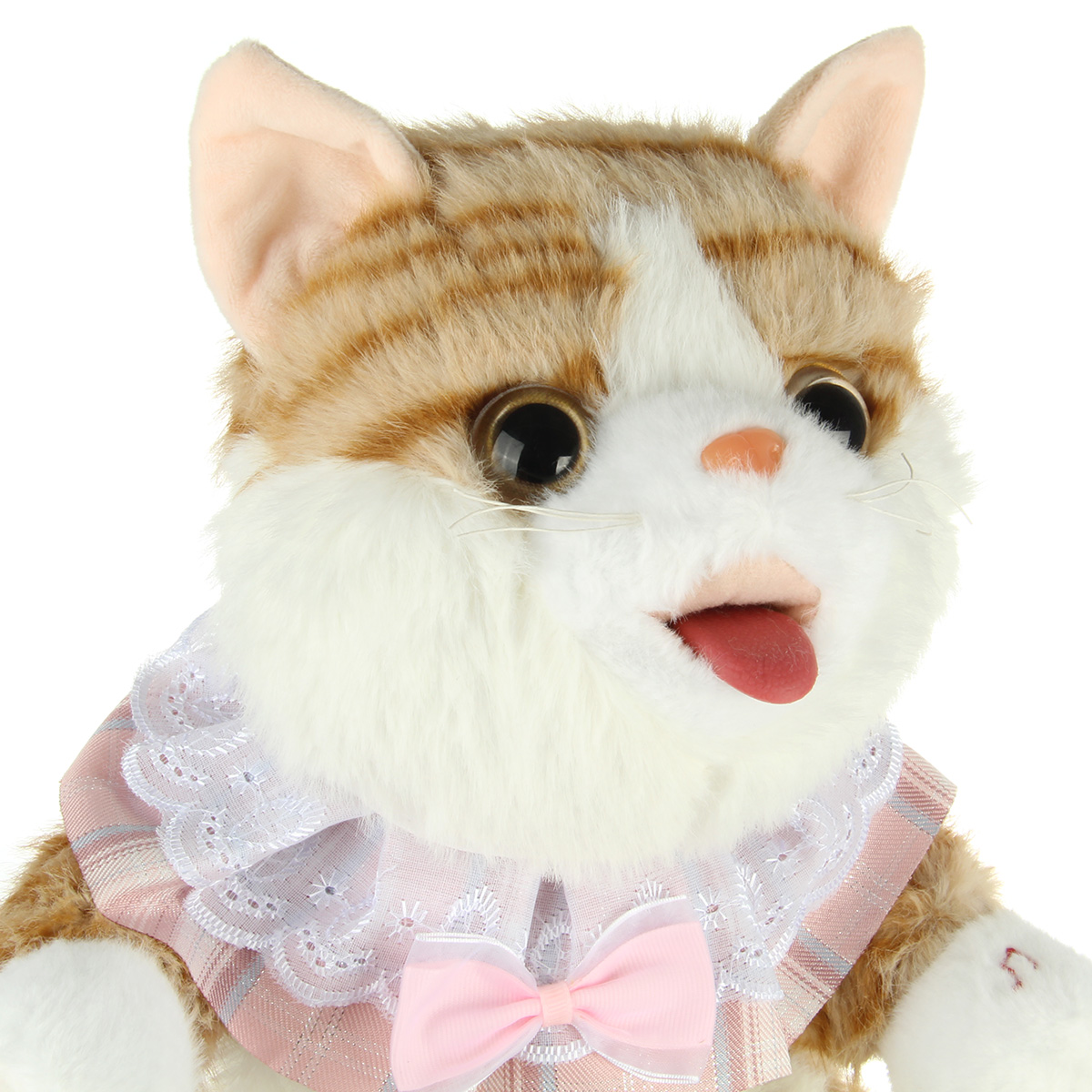 2. При нажатии на лапку проигрывает треки, более 3 песен, шевелит головой, верхними лапками, высовывает язычок, имитируя процесс облизывания. Повторное нажатие на лапку останавливает музыку и движения. Еще одно повторное нажатие на лапку, котик проигрывает следующую песню, движение головой, верхними лапками и язычком.