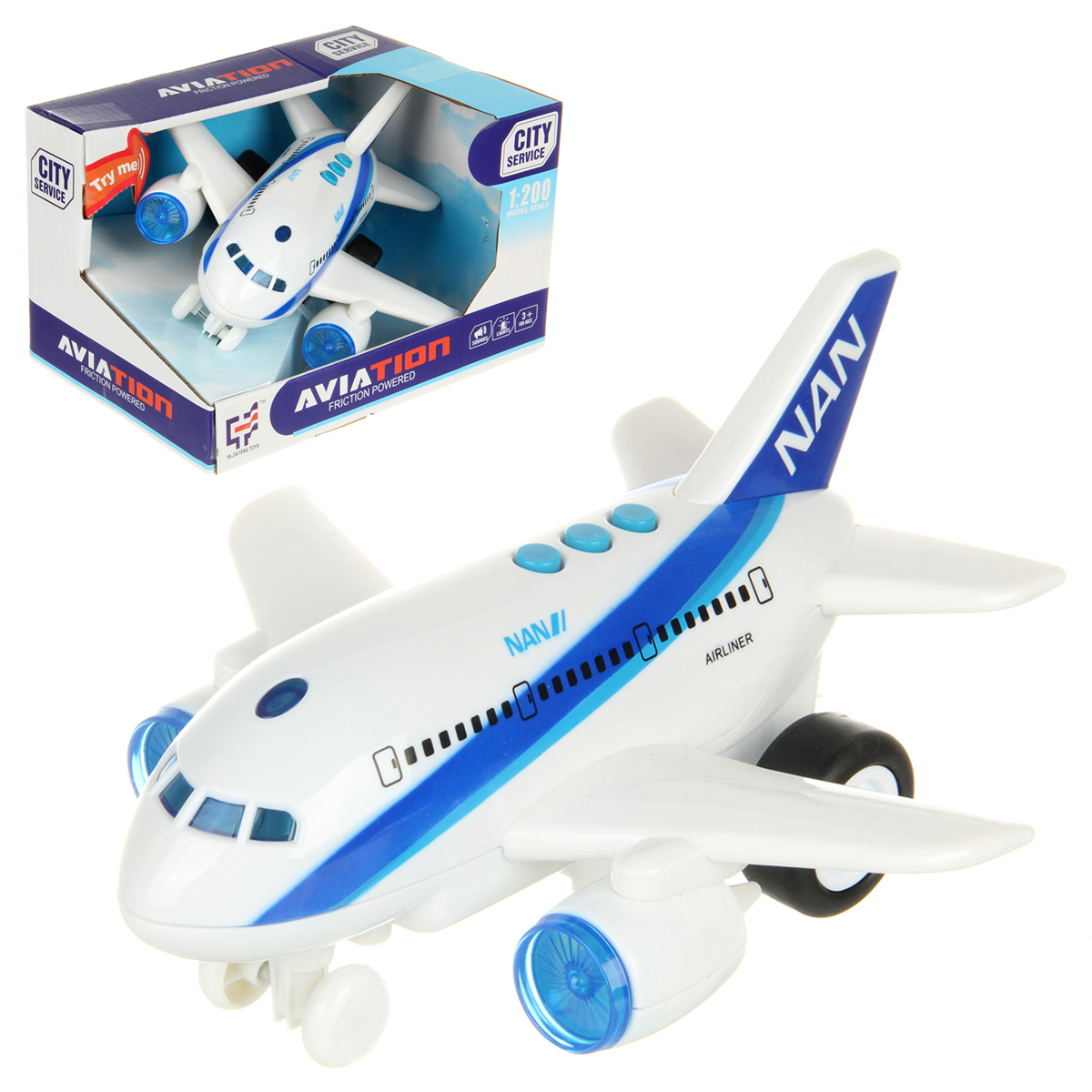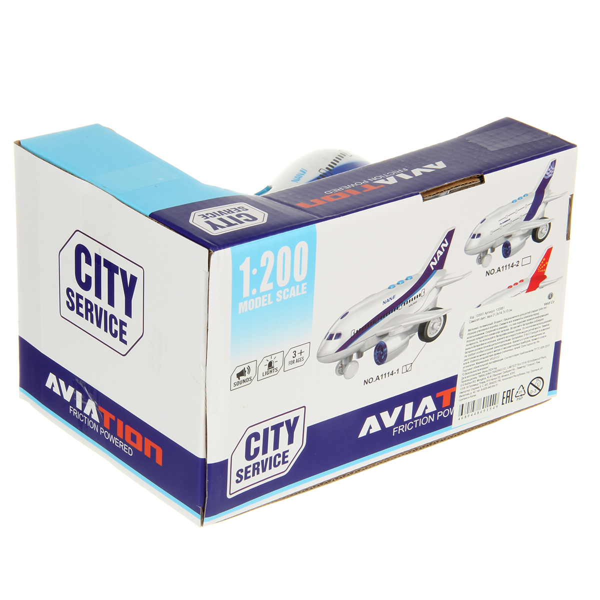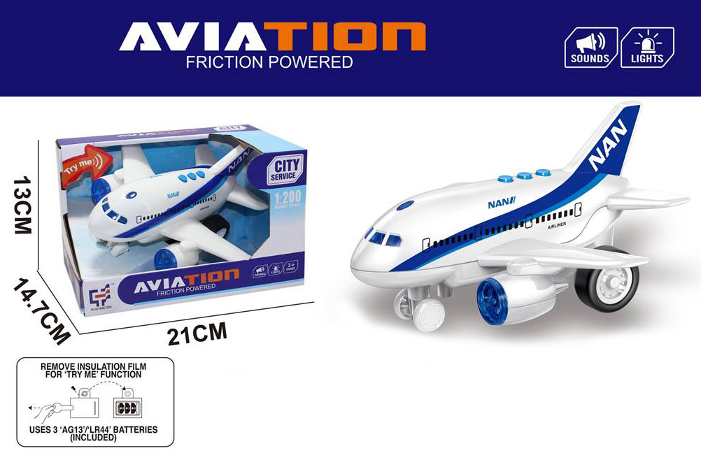 Игрушечный самолет со световыми и звуковыми эффектами, это отличная игрушка для маленького любителя авиатехники. Самолет на батарейках выполнен в стилизованном дизайне, красивой расцветке. Детская игрушка изготовлена из прочных и долговечных материалов. Игрушка самолет станет замечательным подарком для детей на Новый год и День рождения.