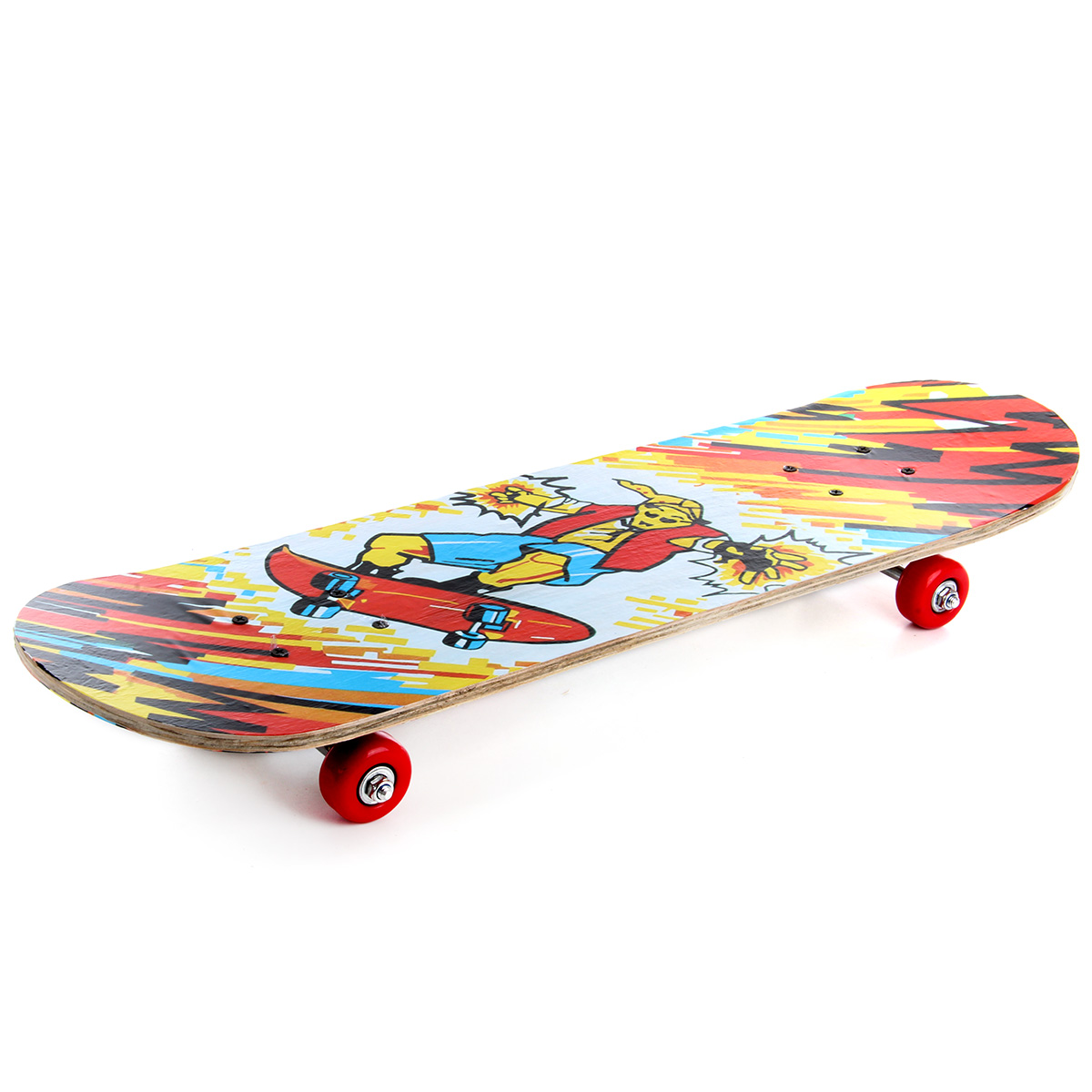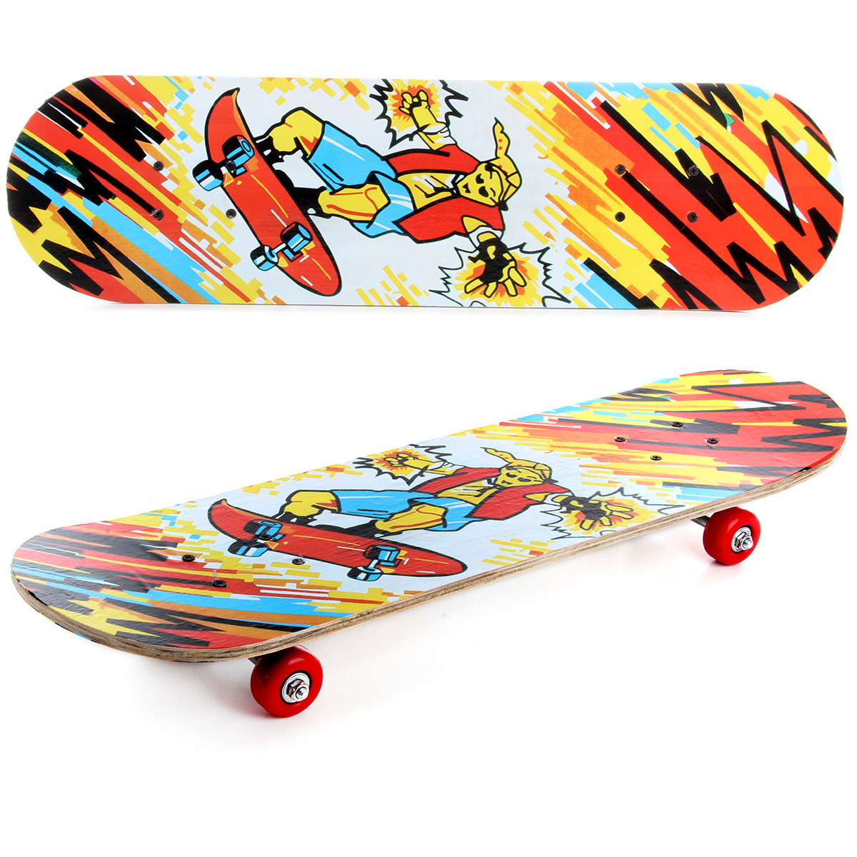 Крутой скейт для крутых трюков. Скейтборд оформлен в красивой и яркой расцветке, при движении все колеса подсвечиваются, удобно кататься в темное время суток. При езде на скейтборде задействованы почти все группы мышц, что способствует поддержанию хорошей физической формы и укреплению иммунитета. Ребенок будет развивать вестибулярный аппарат, координацию движений, концентрацию внимания, зрительное восприятие. Скейтборд станет замечательным подарком, сделает прогулки на свежем воздухе полезными и увлекательными, масса положительных эмоций гарантирована. Функционал игрушки: -скейт выдерживает нагрузку до 55 кг. Размеры скейта: 70*20*12 см. Размеры деки: 70*20 см. Высота деки от пола: 7 см. Изготовлено из полимерного материала, металла, дерева.