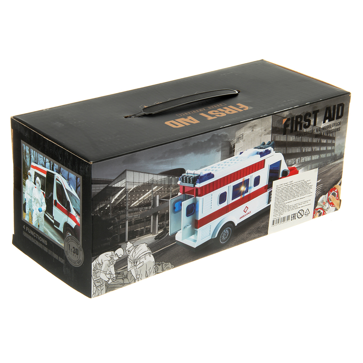 Машина на радиоуправлении изготовлена из прочных и долговечных материалов, оформлена в реалистичном дизайне.