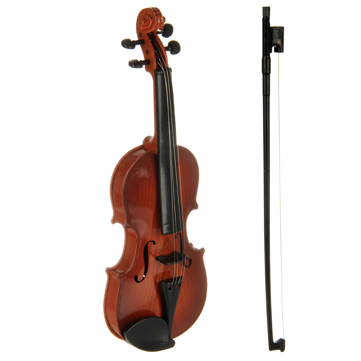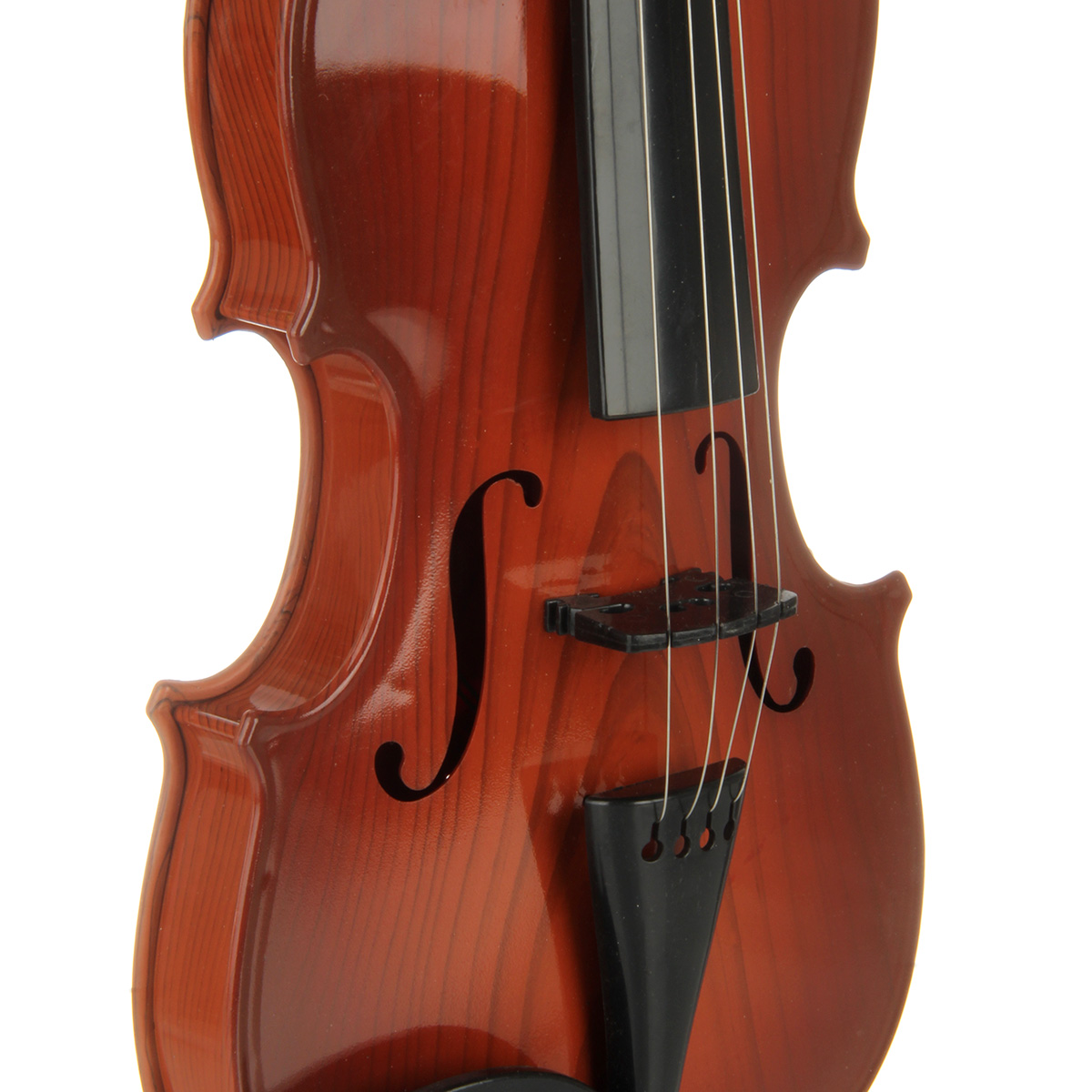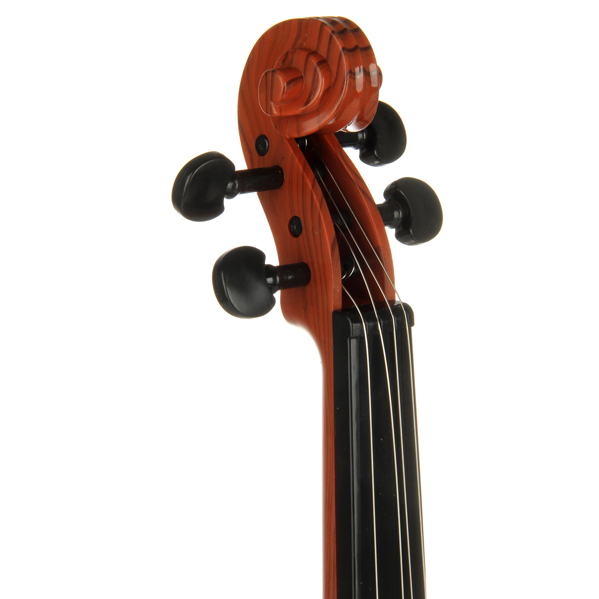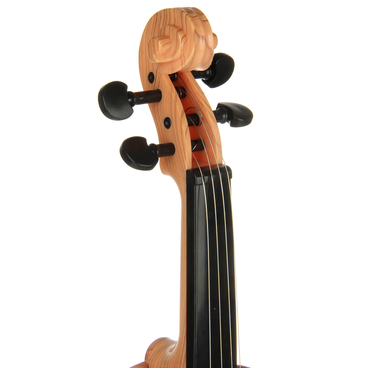 Игрушечная скрипка выполнена в реалистичном дизайне, классическом цвете.