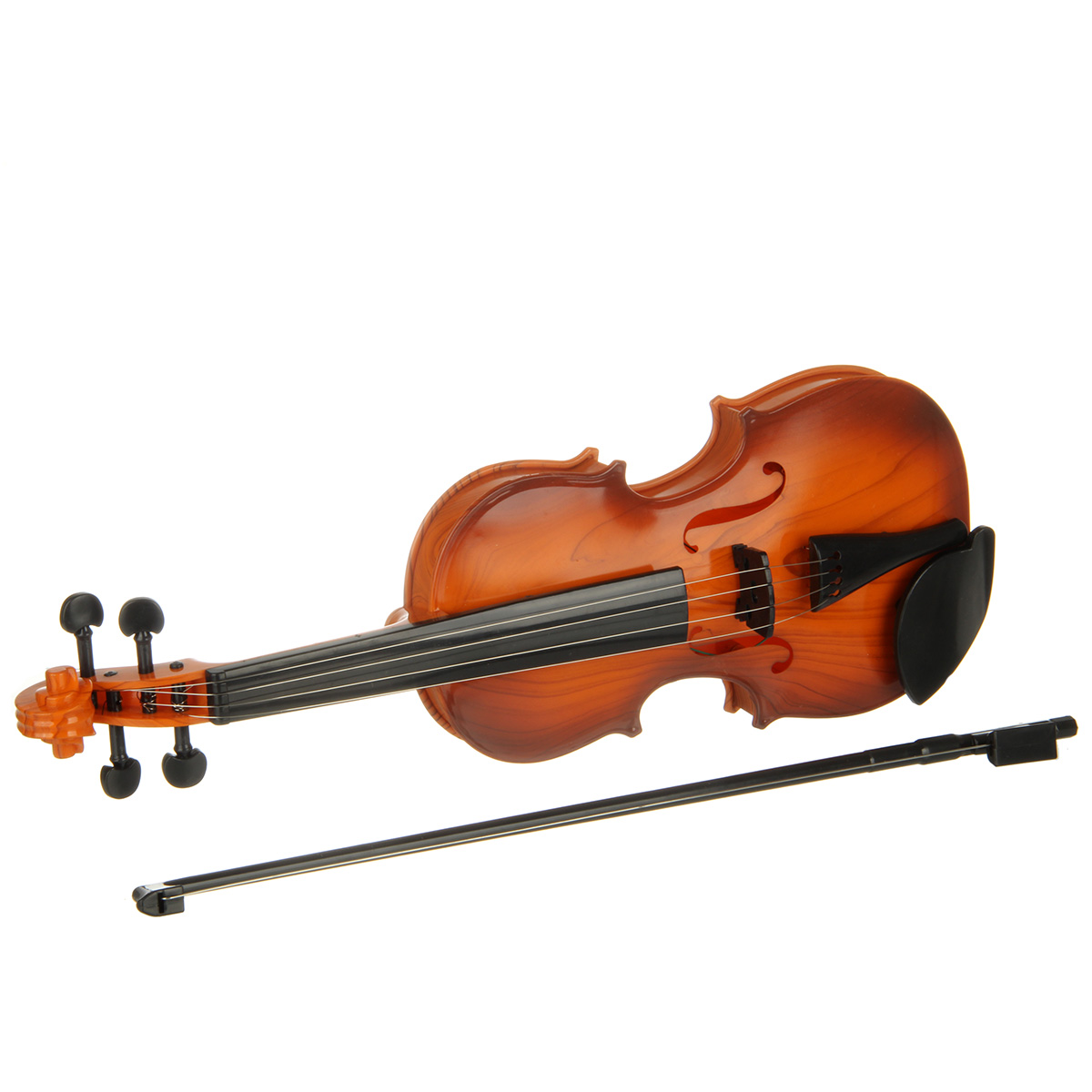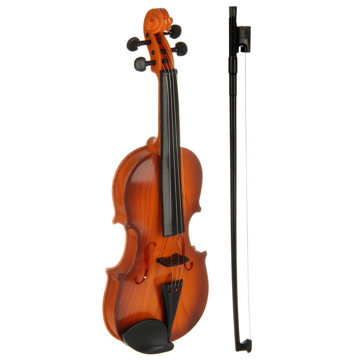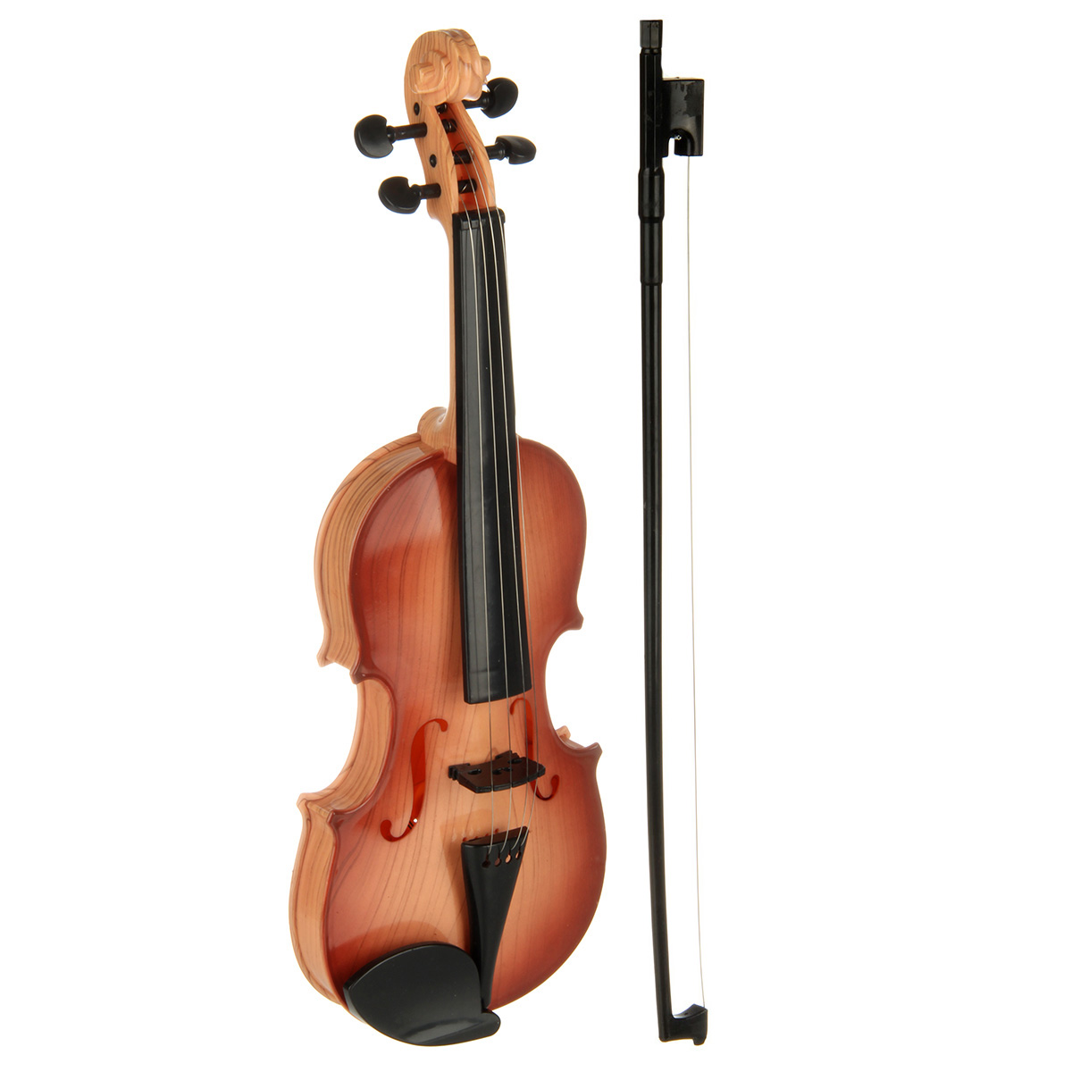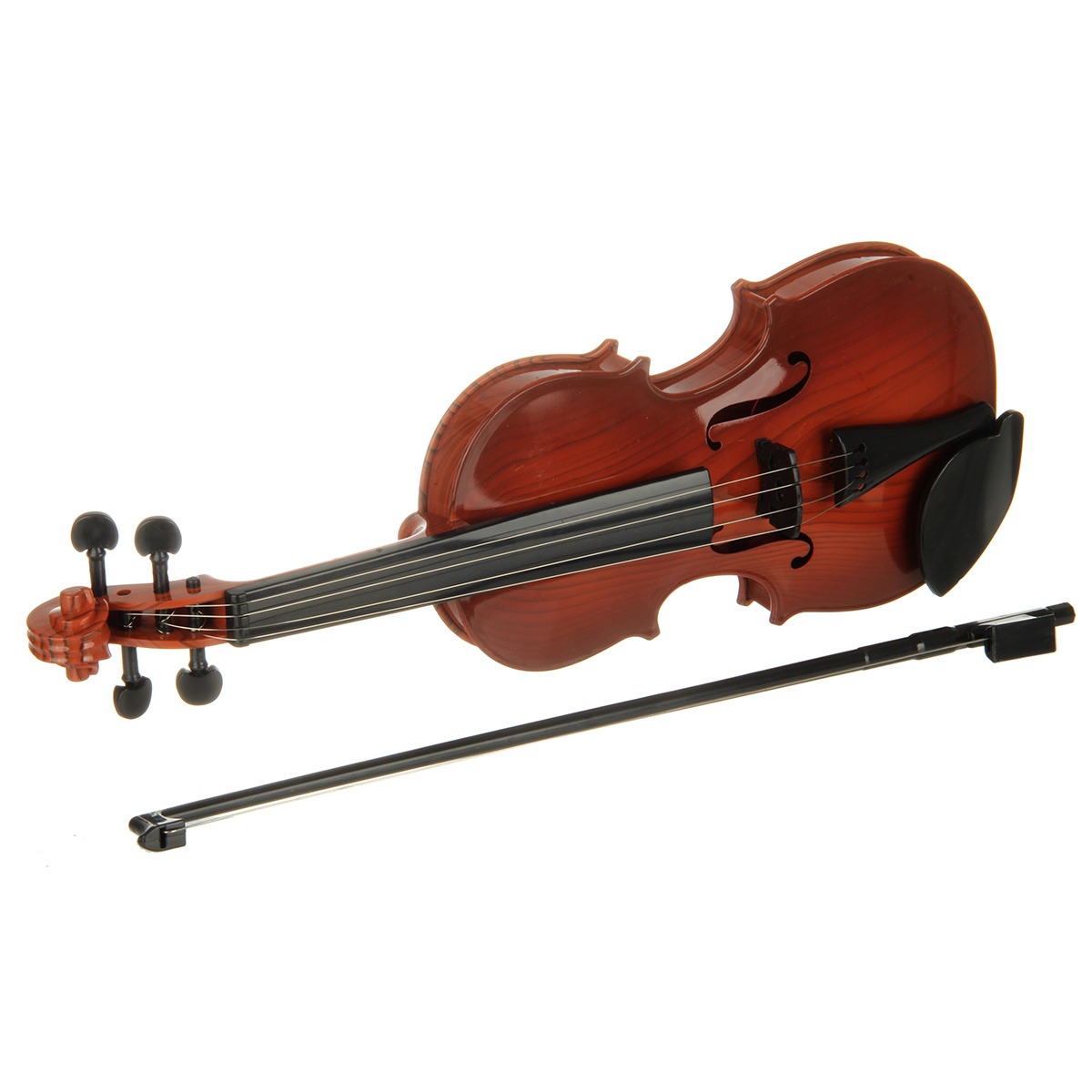 Игрушечная скрипка выполнена в реалистичном дизайне, классическом цвете.