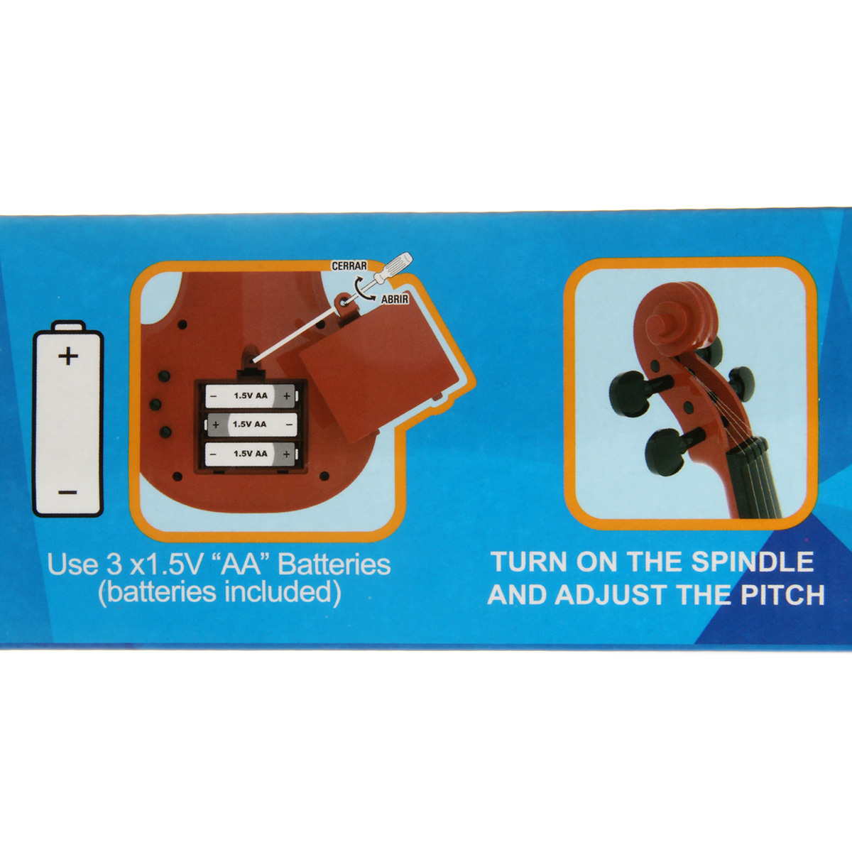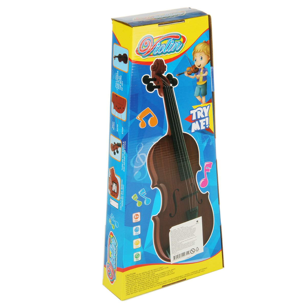 Скрипка работает от 3 батареек АА, не входят в комплект.