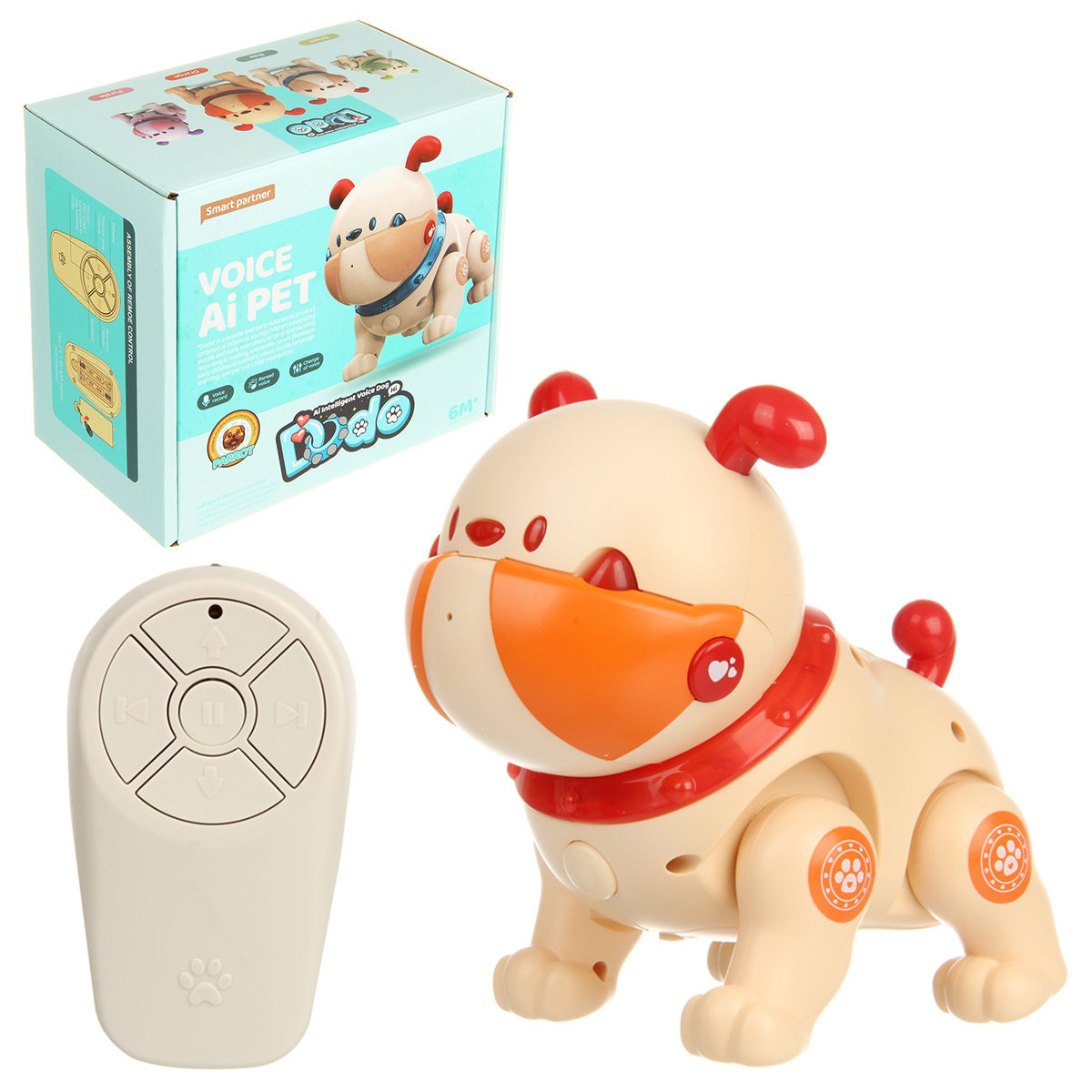 Очаровательная игрушка собака, которая обладает множеством функций. Робот на радиоуправлении умеет проигрывать мелодии и колыбельные, передвигаться вперед и назад, сенсорная функция, гладим питомца по голове, издает различные звуки.