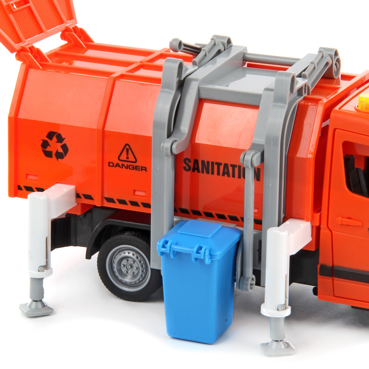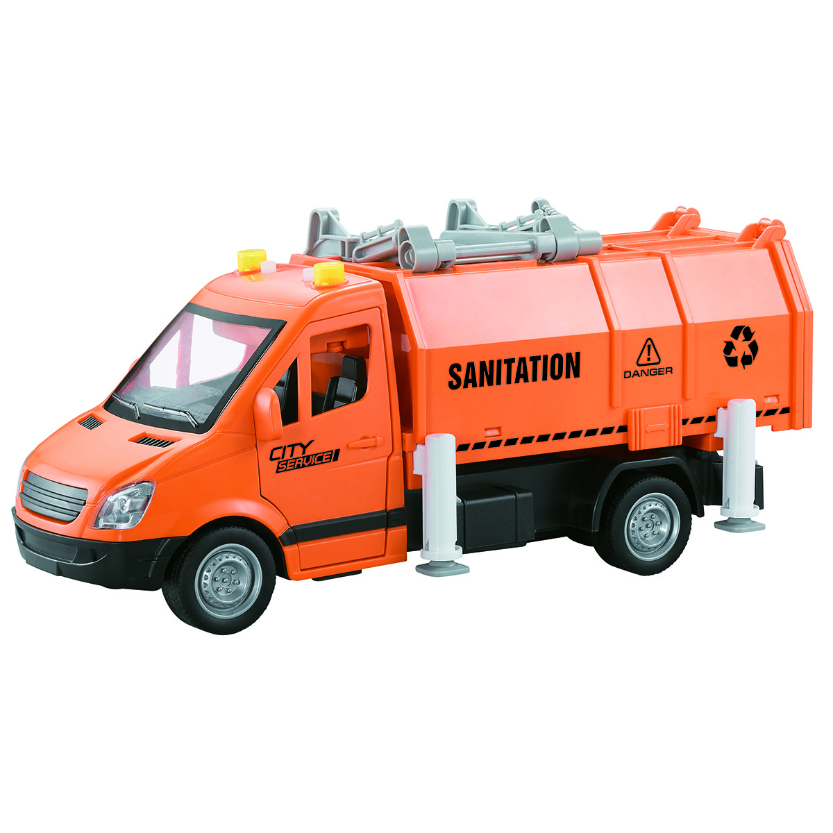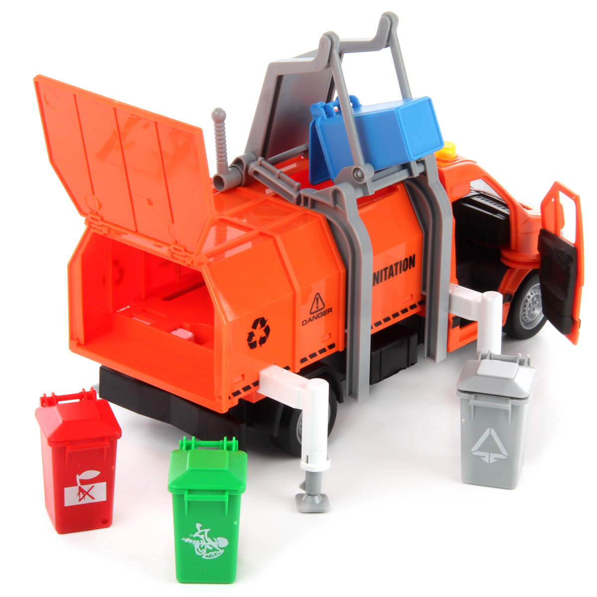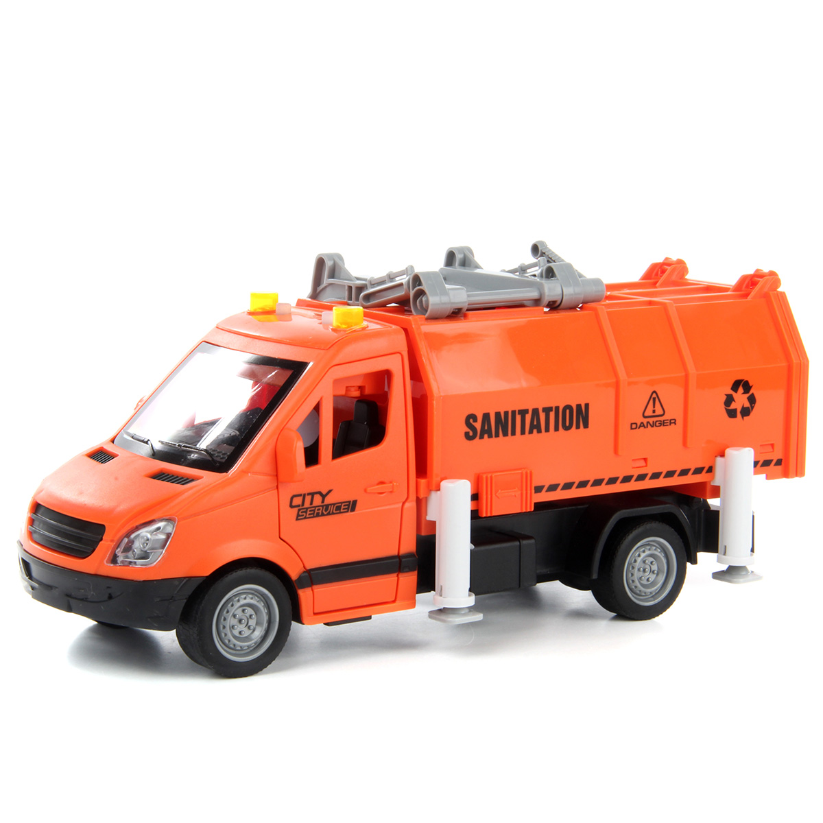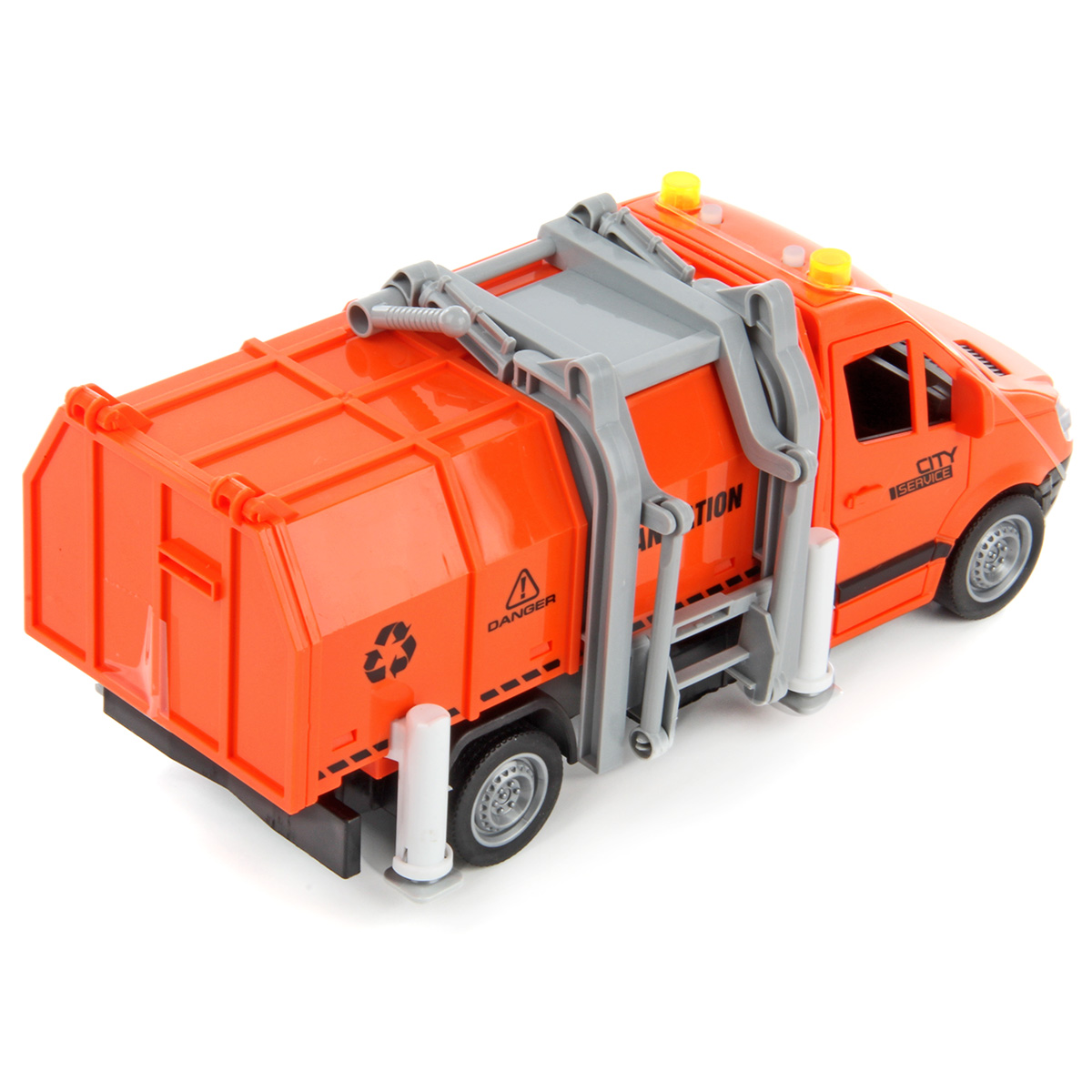 Машина-спецтехника Drift, с прорезиненными колёсами, звуковыми и световыми эффектами. Большое количество подвижных элементов и высокое качество изготовления подарят незабываемые впечатления от игры вашему ребёнку. В комплект игрушки входит мусоровоз, 4 мусорных бака, 4 комплекта бумажного мусора. Мусоровоз работает от батареек AG-13 3 шт., входят в комплект. Функционал игрушки: -двери открываются и закрываются; -машинка оснащена фрикционным механизмом, двигается вперёд, назад; -при нажатии кнопок на крыше издаёт различные звуки мусоровоза, сигналы мигают; -мусорный контейнер снимается; -дверь контейнера открывается; -мусор помещается в мусорный бак; -мусорный бак фиксируется в подъёмном механизме и вытряхивается в контейнер; -опоры поднимаются и опускаются, мусорный бак фиксируется на двери контейнера. Размеры упаковки: 32*12*19 см. Размеры машинки: 27*12*12 см. Размеры мусорного бака: 5*4*3 см. Изготовлено из пластика, резины.