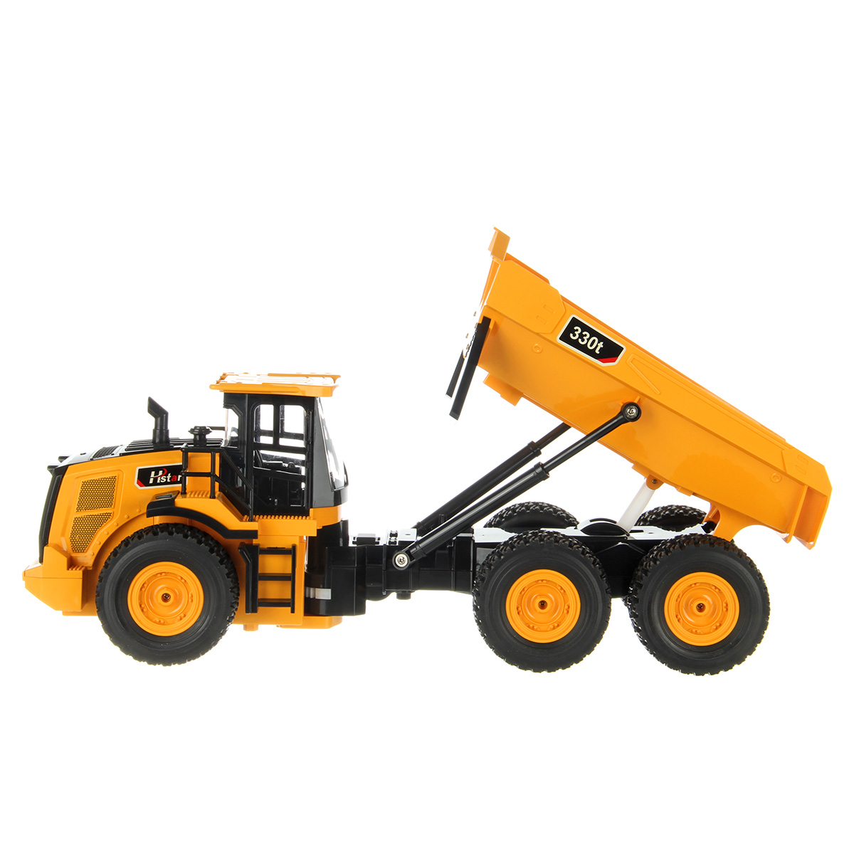 Радиоуправляемый самосвал с аккумулятором, движением во все стороны, светом и звуком. Деморежим, подсветка передних фар, поднимающийся и опускающийся кузов. Прозрачные окна салона, прорезиненные боковые зеркала и колеса, реалистичный дизайн, качественное исполнение и внимание к деталям. Игрушечная спецтехника оформлена в красивой расцветке.