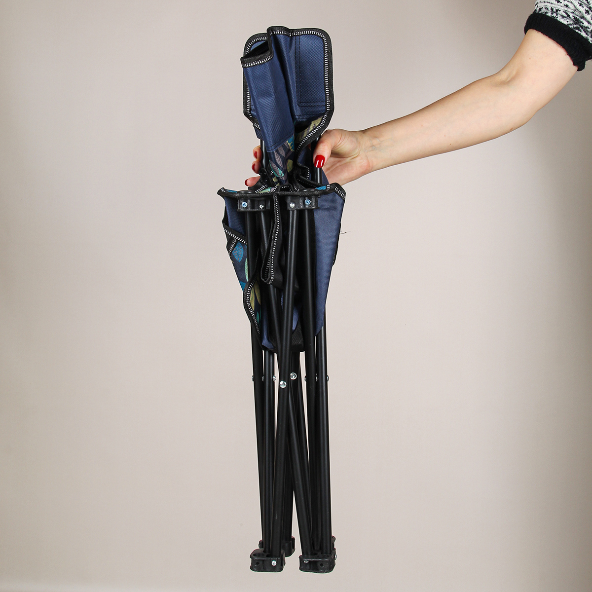Походный стул легко раскладывается и не требует сборки. В сложенном виде пляжный стул занимает мало места, компактный, поместится в багажнике машины или в шкафу.