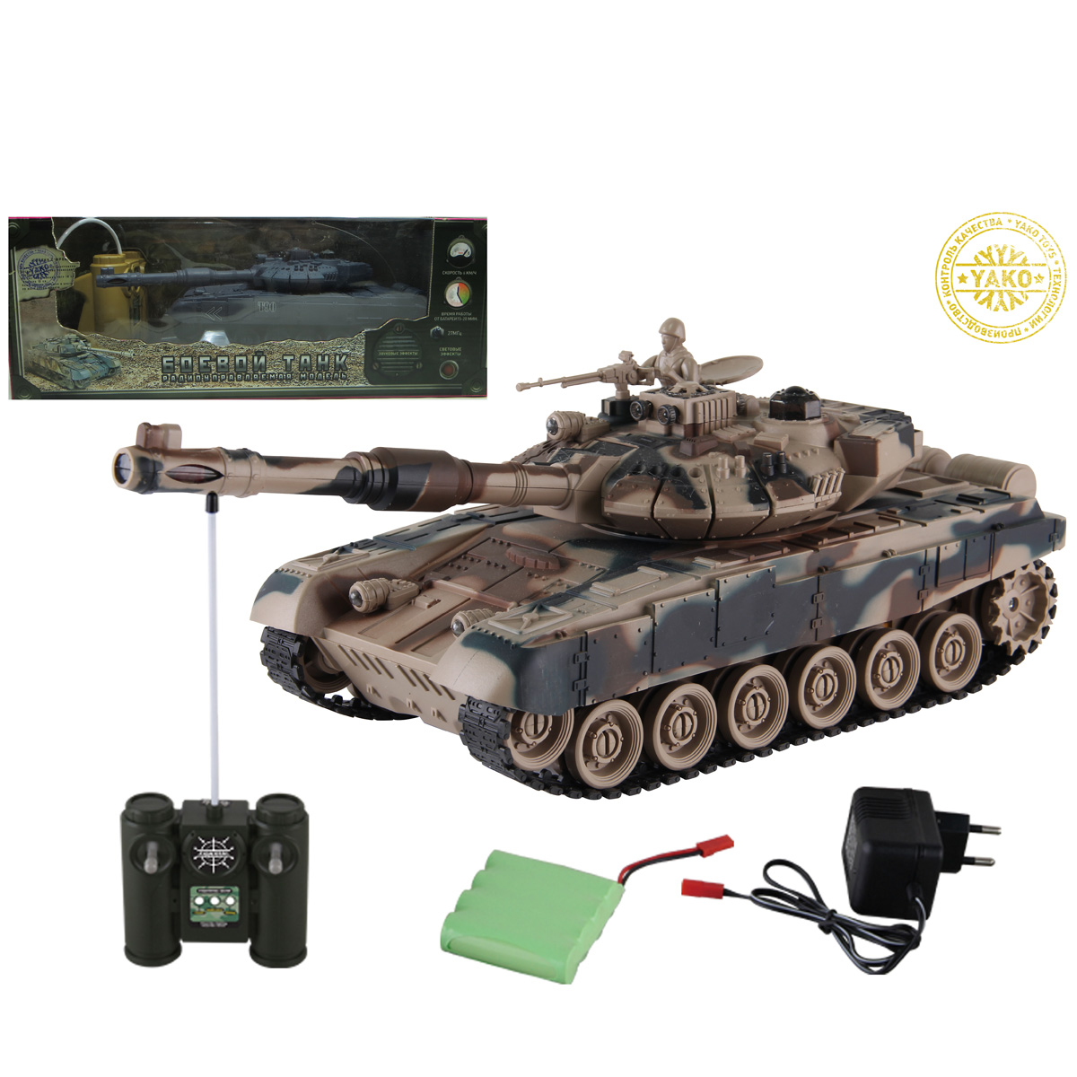 В комплект входит танк, пульт управления, инструкция, зарядное устройство.