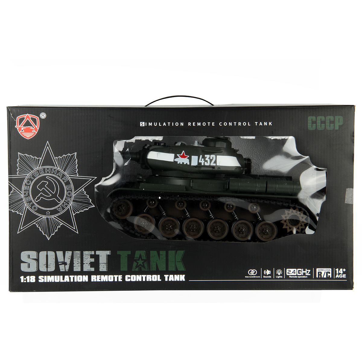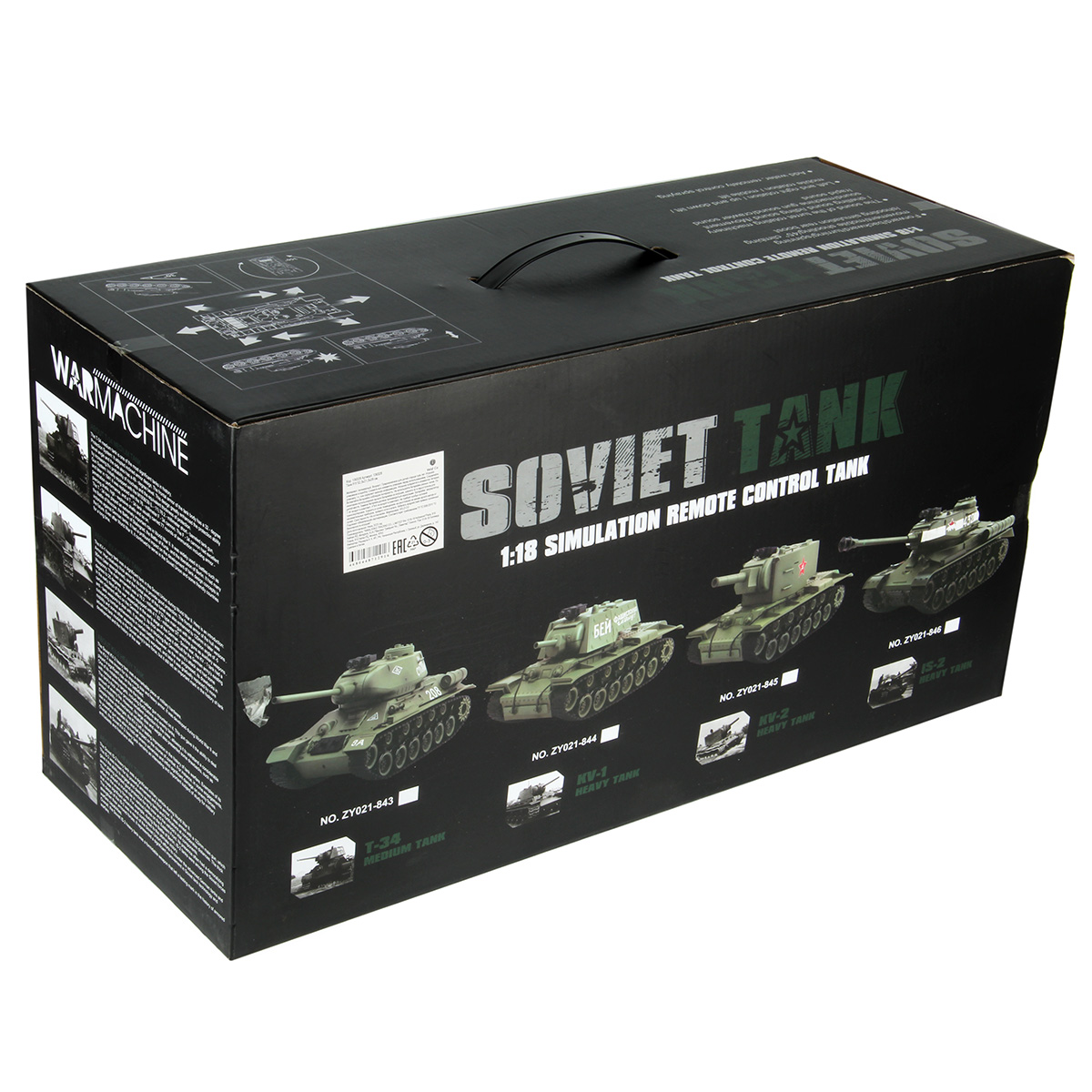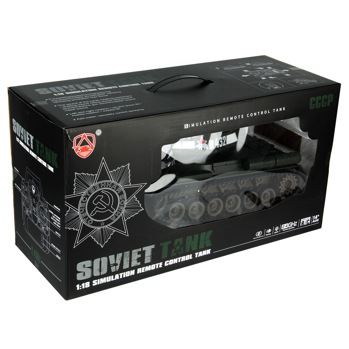 Танк, пульт управления, солдатик, 2 пулемета, люк для патронов, USB кабель, аккумулятор 7.4 V, бутылочка для воды, картонная мишень, 2 пакетика орбизов по 500 штук каждый, пластиковые пульки 50 шт, инструкция на английском языке.