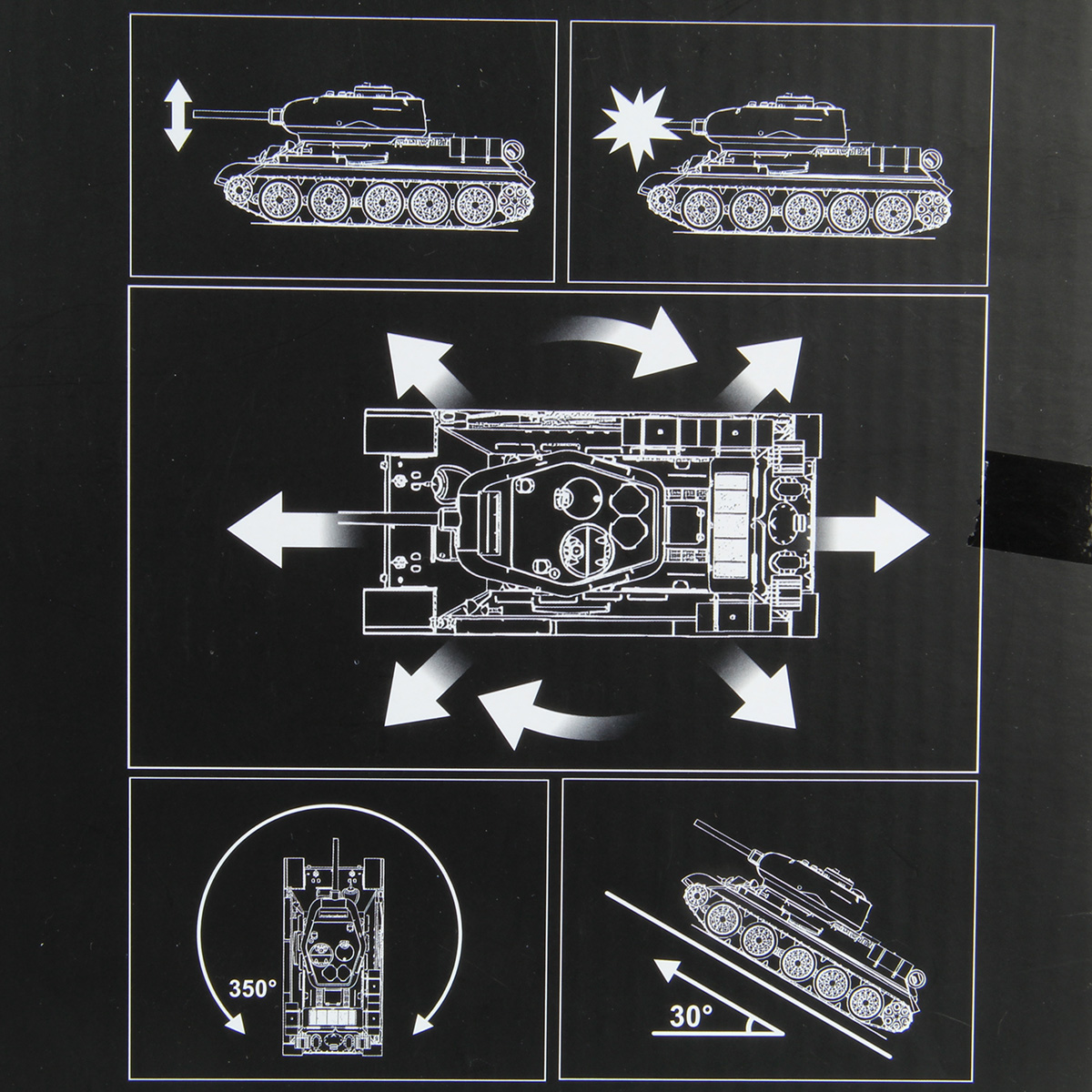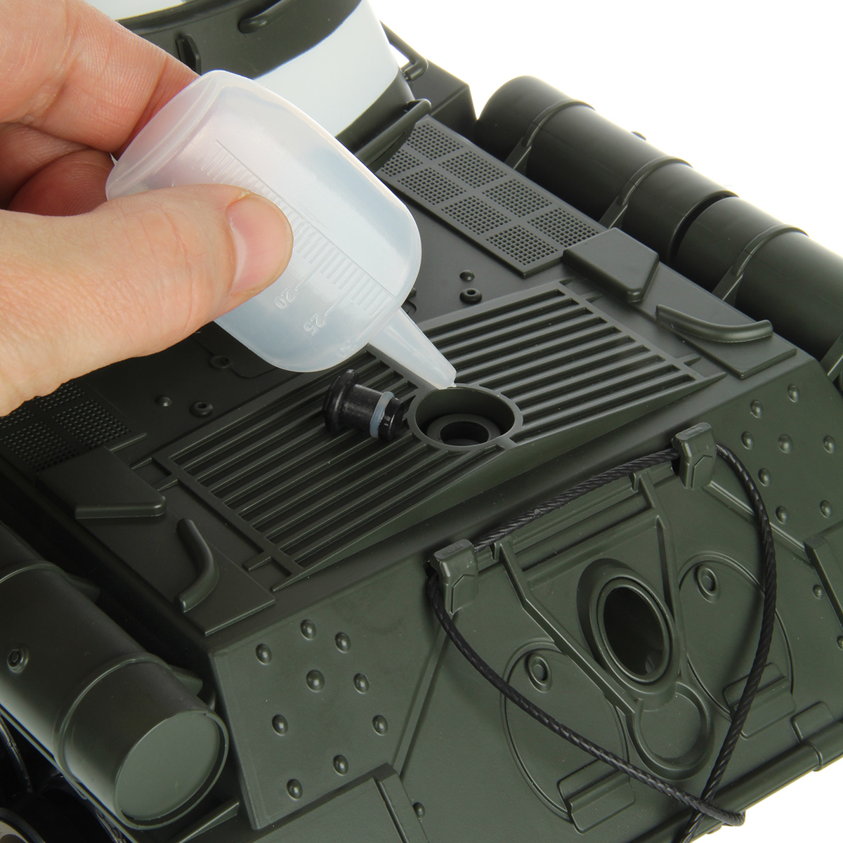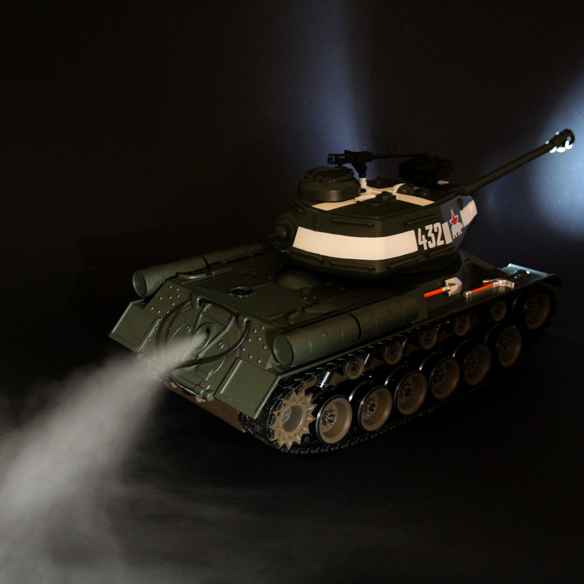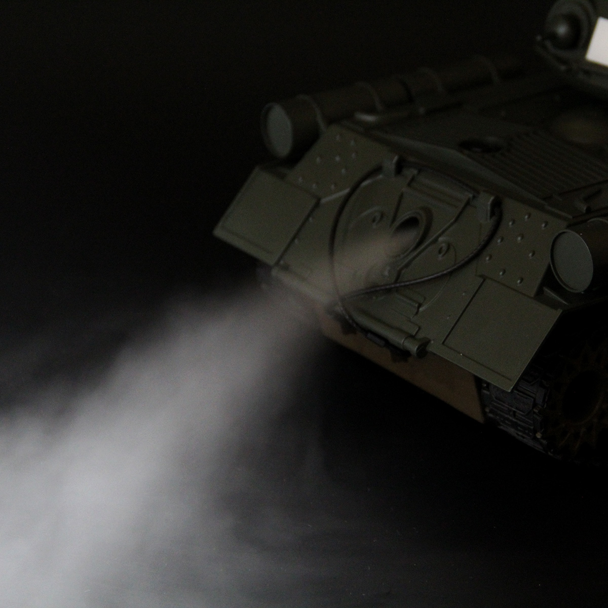 4. Функция пара. Необходимо залить воду в отсек в задней части танка. При нажатии на кнопку на пульте управления из отверстия в задней части пойдёт пар.
