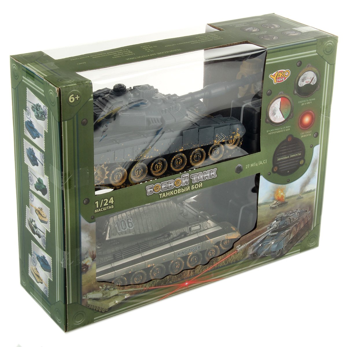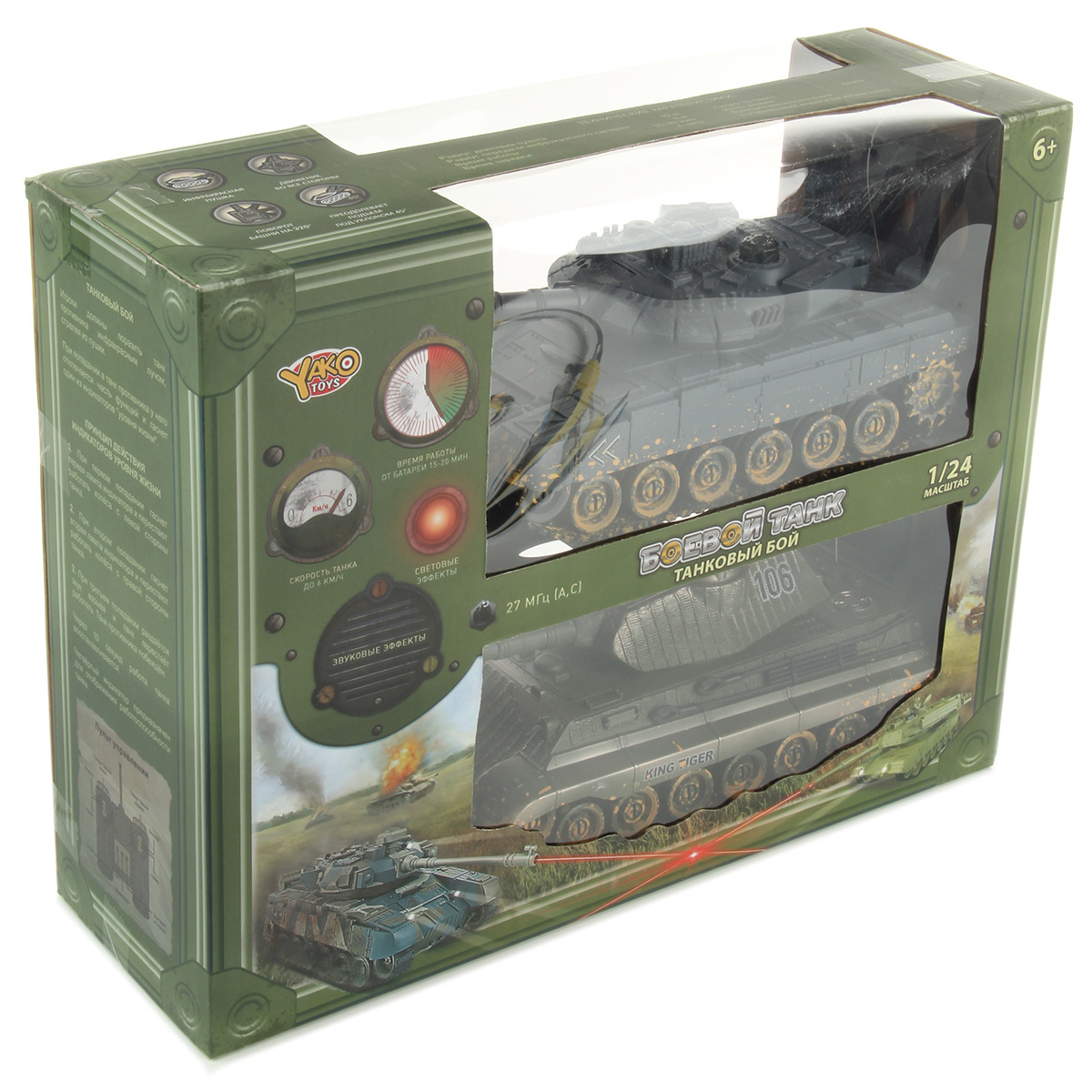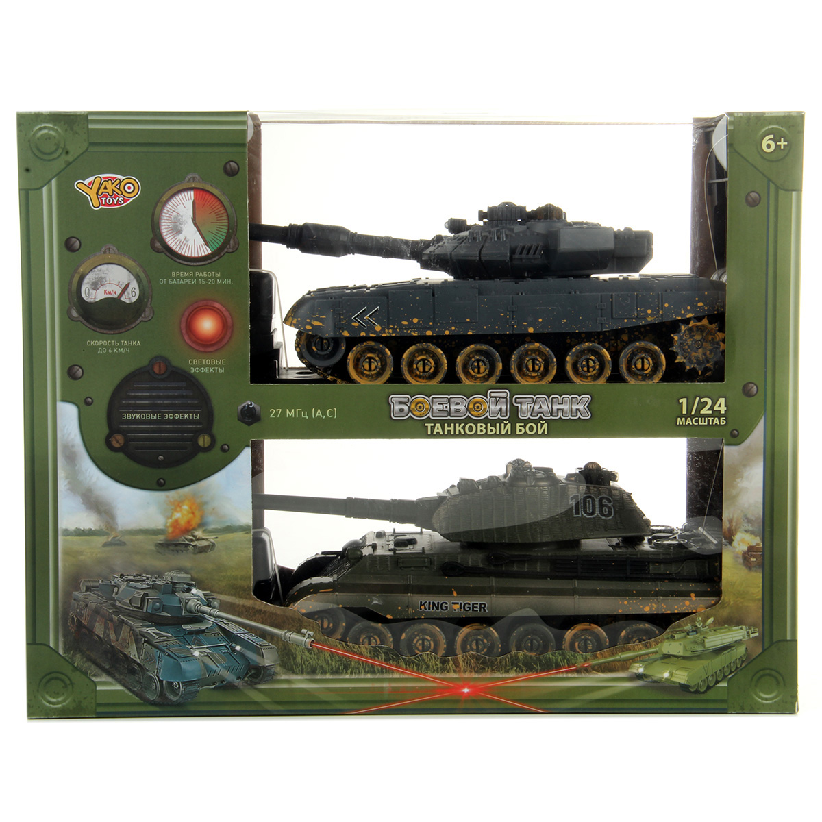 Танки катаются во все стороны, издавая звук работающего двигателя, стреляют, имитируя откат, при этом издают звук выстрелов, инфракрасный излучатель на конце пушки подсвечивается красным светом.