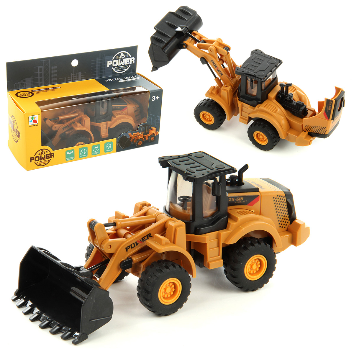 Игрушечный транспорт с двигающимся ковшом, движением во все стороны и открывающимся капотом. Трактор фрикционный с высоким уровнем детализации, коллекционная модель транспорта из прочных и долговечных материалов.