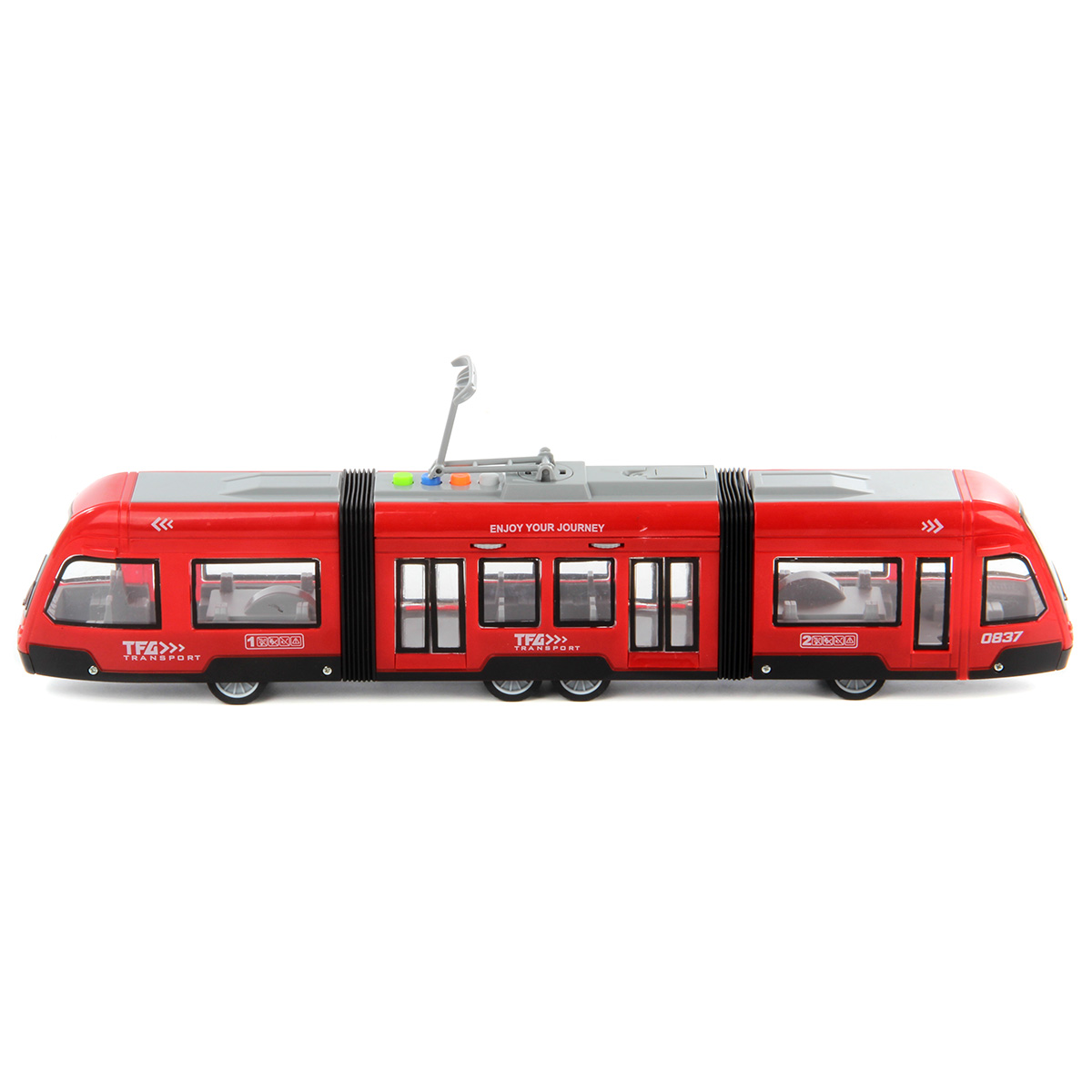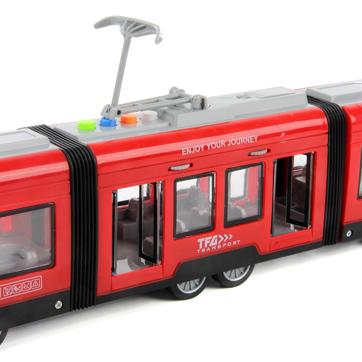Игрушка трамвай со светом, звуком и подвижными элементами станет замечательным дополнением в коллекцию игрушечного транспорта. Изготовлена из прочных и долговечных материалов, прослужит много лет. Коллекционная модель оформлена в реалистичном дизайне и яркой расцветке. Обладает высоким уровнем детализации и качественным исполнением. Детская игрушка оснащена фрикционным механизмом, катается вперёд и назад. Фрикционный транспорт имеет прозрачные стекла, через которые виден салон. Элементы над дверками вращаются. Дверки открываются. Пантограф складывается и крутится. Салон обладает большими размерами, можно поместить внутрь маленькие фигурки. У салона есть подсветка. Воспроизводит звуки объявления, гудка, едущего трамвая. Такая детская игрушка станет замечательным подарком детям, как мальчику, так и девочке на новый год, день рождения и на любой другой повод. Отлично подойдёт для сюжетно ролевых игр с городским транспортом. Изготовлено из качественного и безопасного полимера. Игрушечный трамвай работает от 3 батареек LR44, входят в комплект. Размеры машинки 45х6х11 см. Размеры коробки 48х11х16 см.