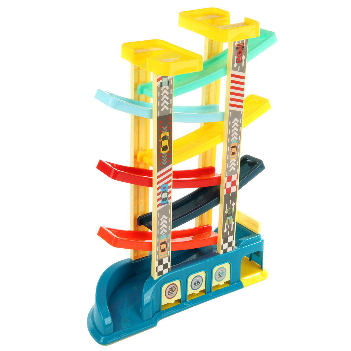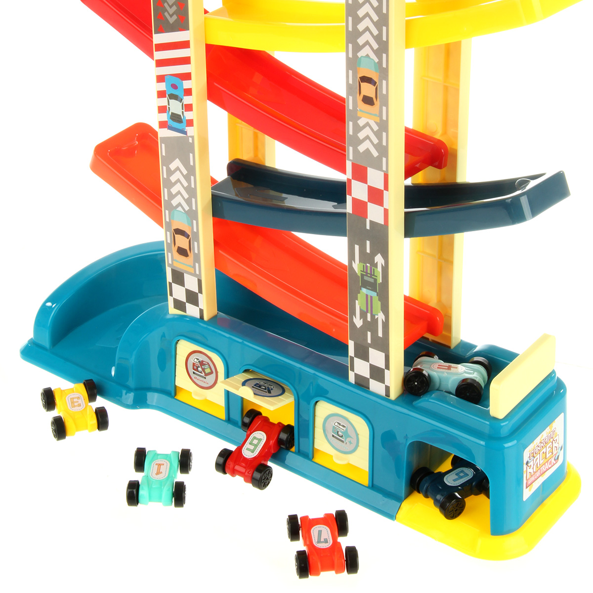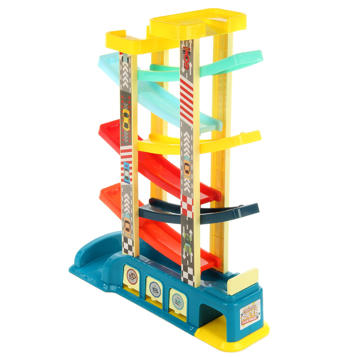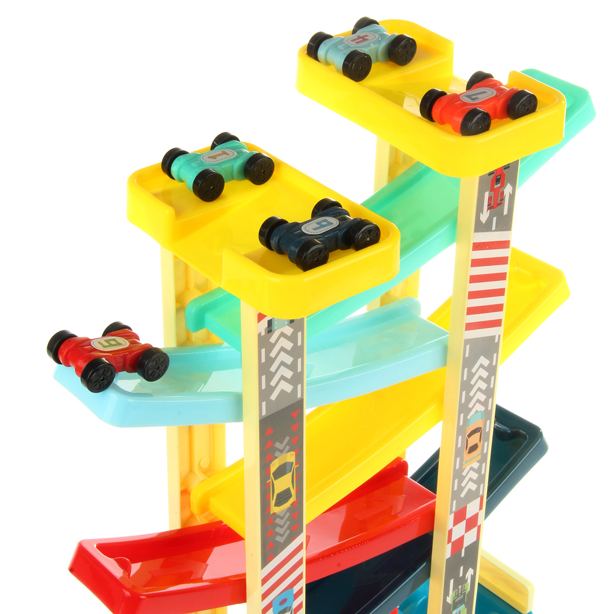 Замечательный набор для увлекательных сюжетно-ролевых игр. В комплект входят детали для сборки трека, 6 машинок, наклейки. Функционал игрушки: -трек легко собирается и разбирается; -двери гаража открываются; -машинки помещаются в гараже; -машинки двусторонние, двигаются вперёд назад. Размеры упаковки: 14*12*39 см. Размеры трека: 35*12*45 см. Размеры машинки: 4*3*1 см. Игрушка изготовлена из качественного и безопасного полимерного материала.