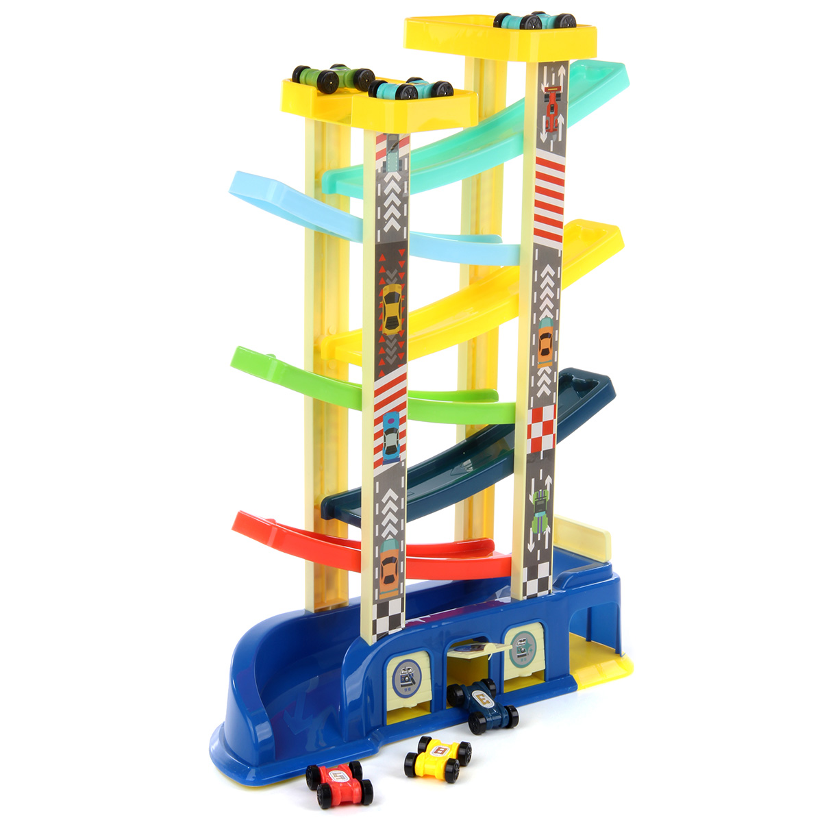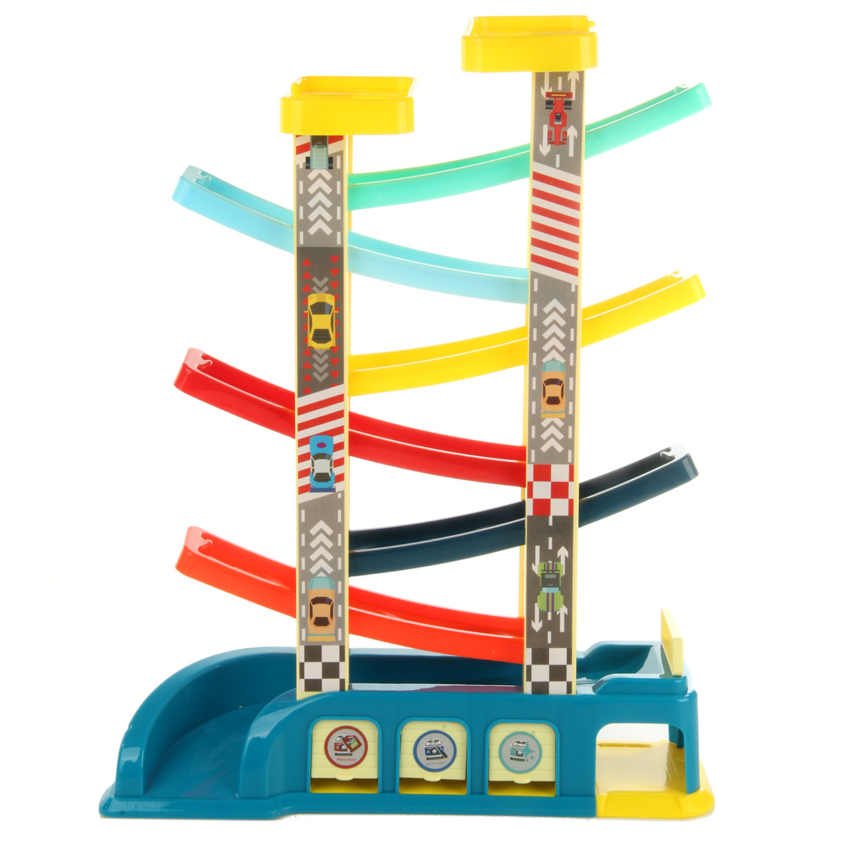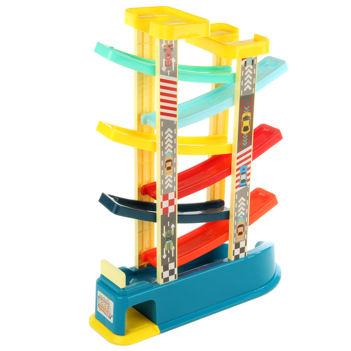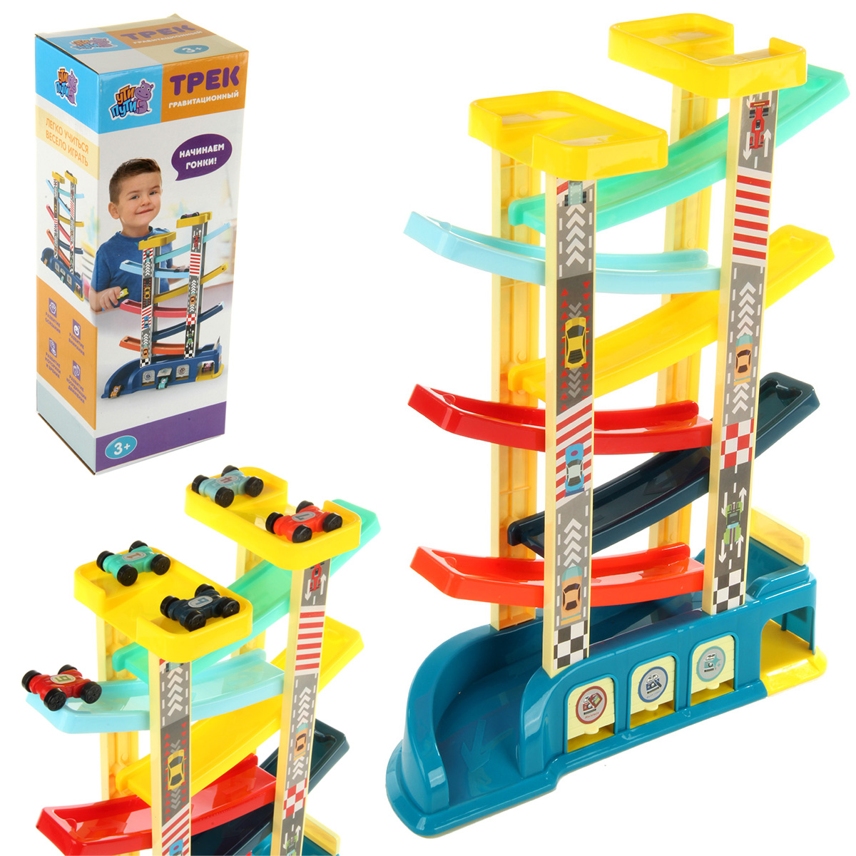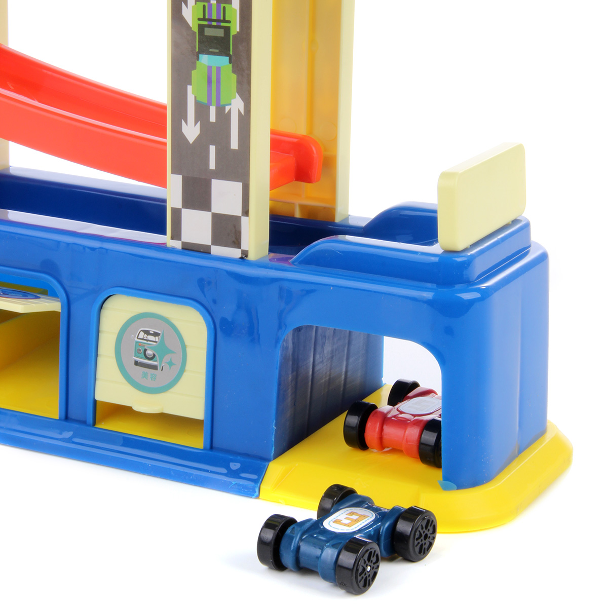 Замечательный набор для увлекательных сюжетно-ролевых игр. В комплект входят детали для сборки трека, 6 машинок, наклейки. Функционал игрушки: -трек легко собирается и разбирается; -двери гаража открываются; -машинки помещаются в гараже; -машинки двусторонние, двигаются вперёд назад. Размеры упаковки: 14*12*39 см. Размеры трека: 35*12*45 см. Размеры машинки: 4*3*1 см. Игрушка изготовлена из качественного и безопасного полимерного материала.