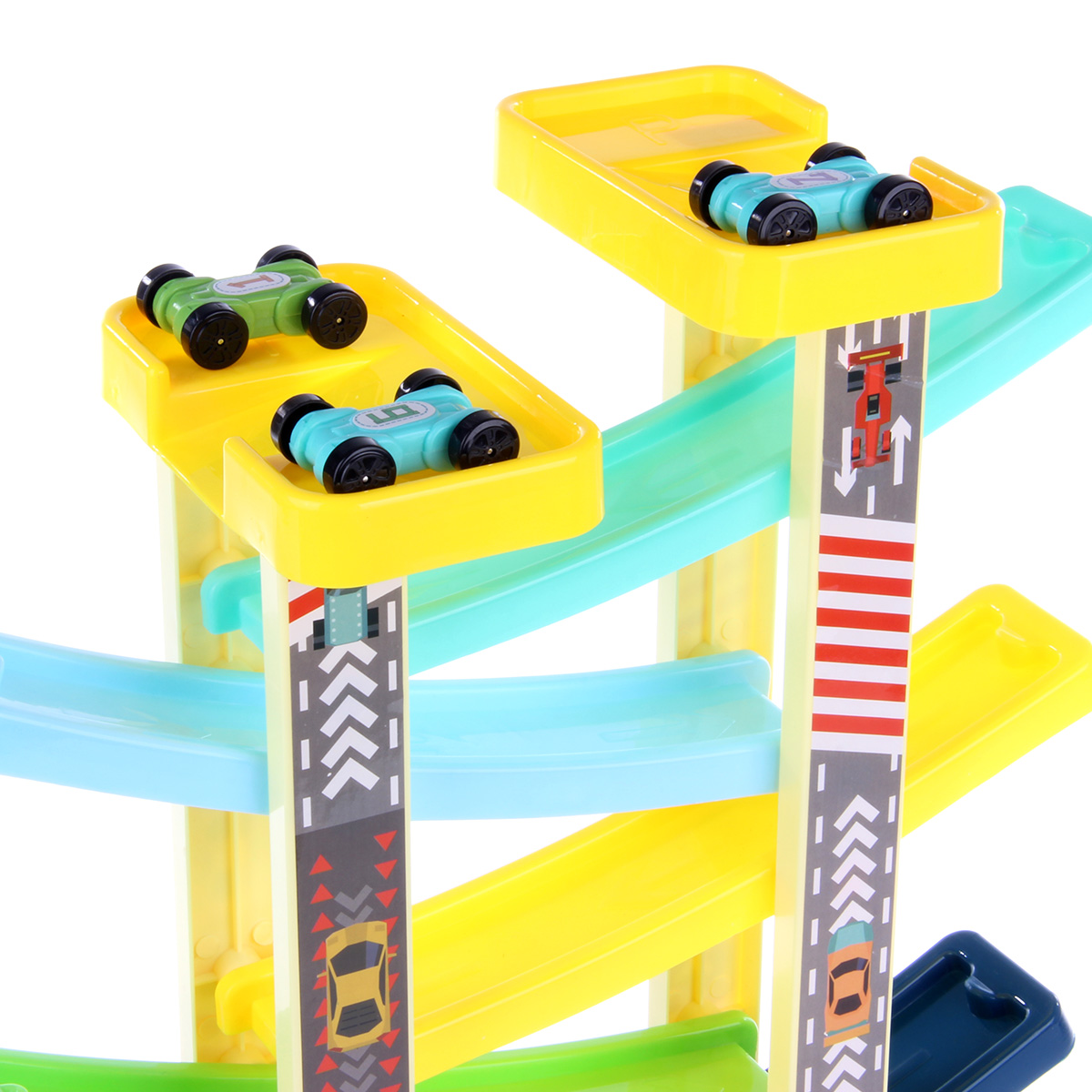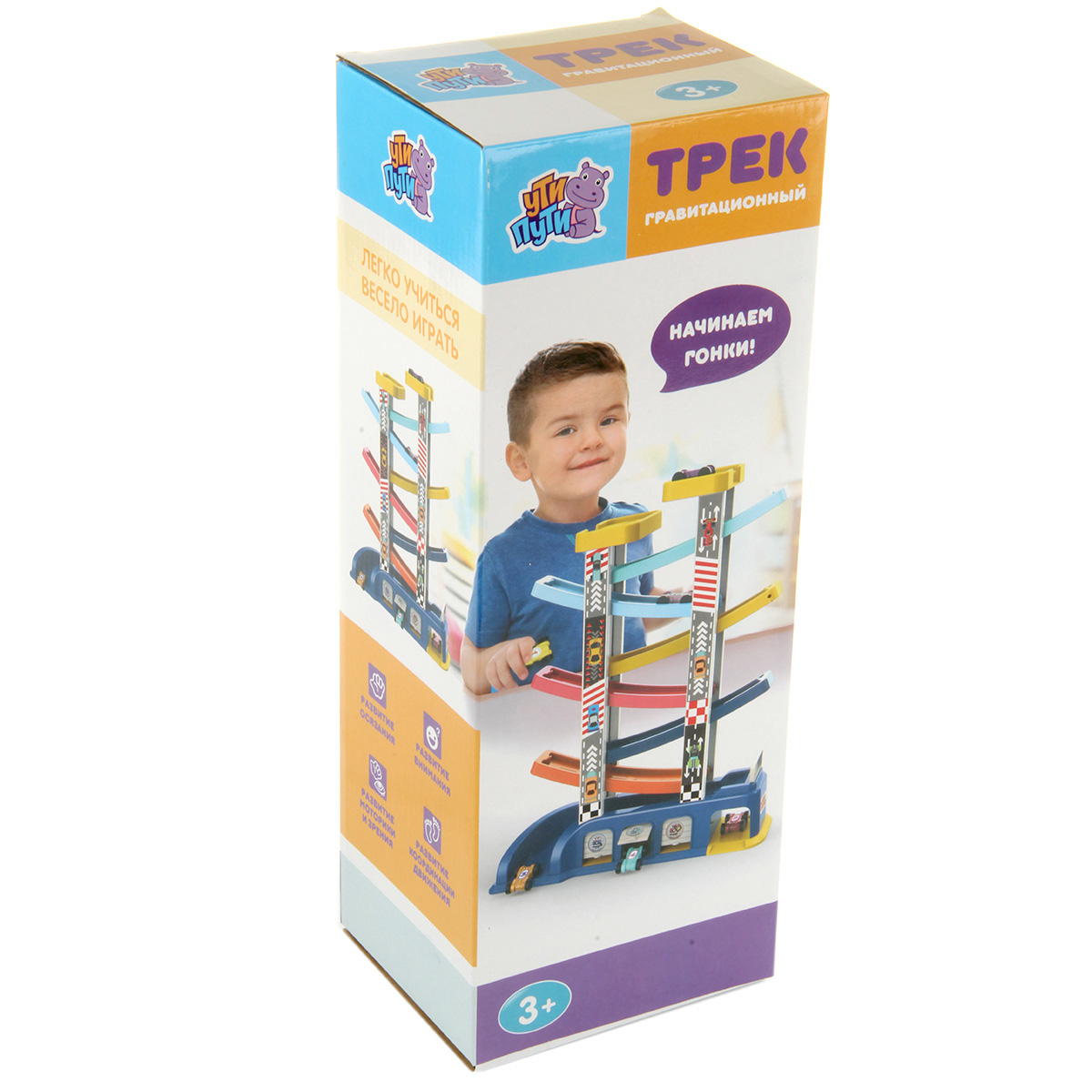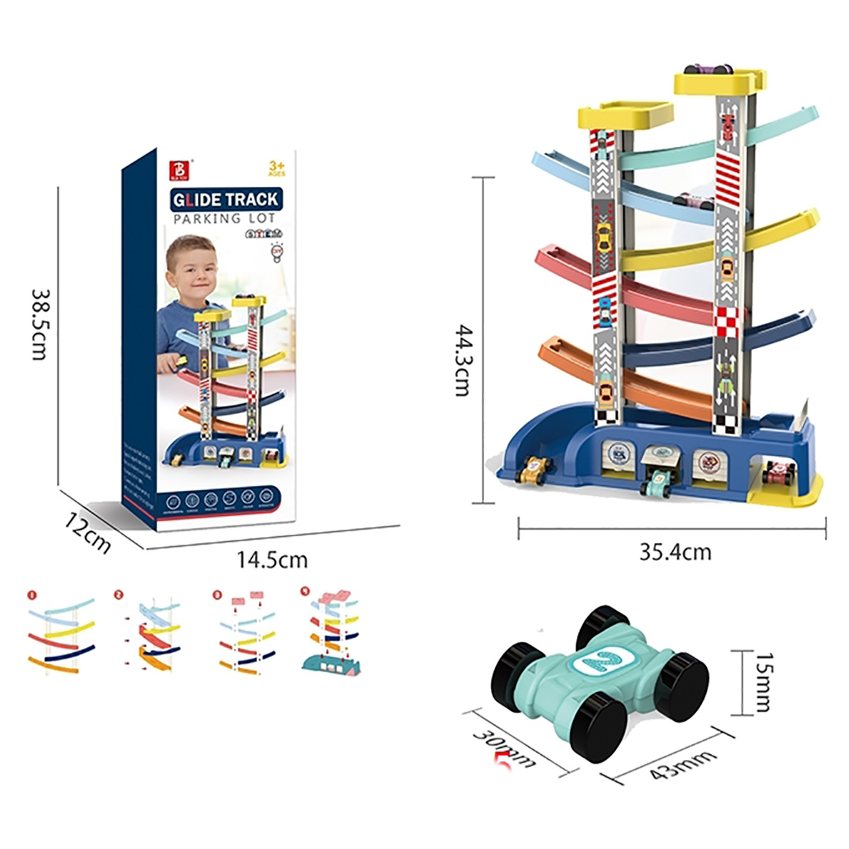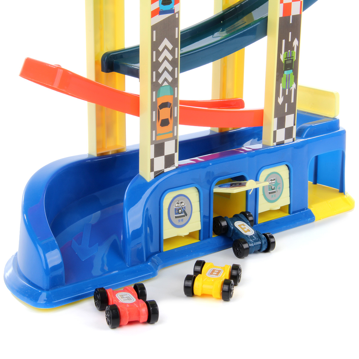 Замечательный набор для увлекательных сюжетно-ролевых игр. В комплект входят детали для сборки трека, 6 машинок, наклейки. Функционал игрушки: -трек легко собирается и разбирается; -двери гаража открываются; -машинки помещаются в гараже; -машинки двусторонние, двигаются вперёд назад. Размеры упаковки: 14*12*39 см. Размеры трека: 35*12*45 см. Размеры машинки: 4*3*1 см. Игрушка изготовлена из качественного и безопасного полимерного материала.