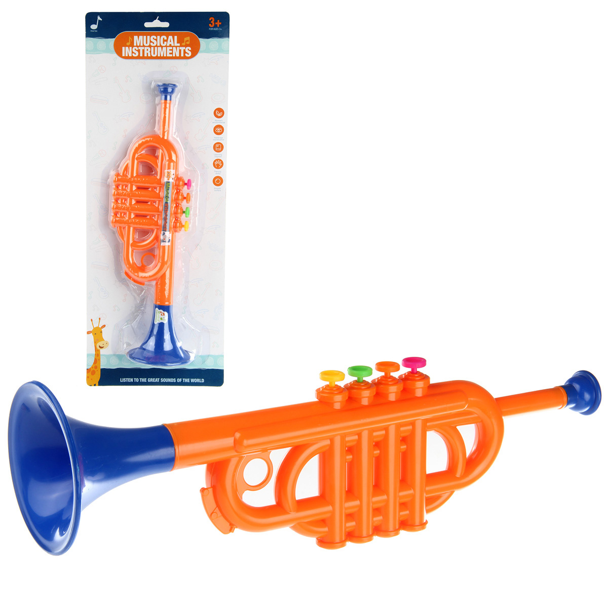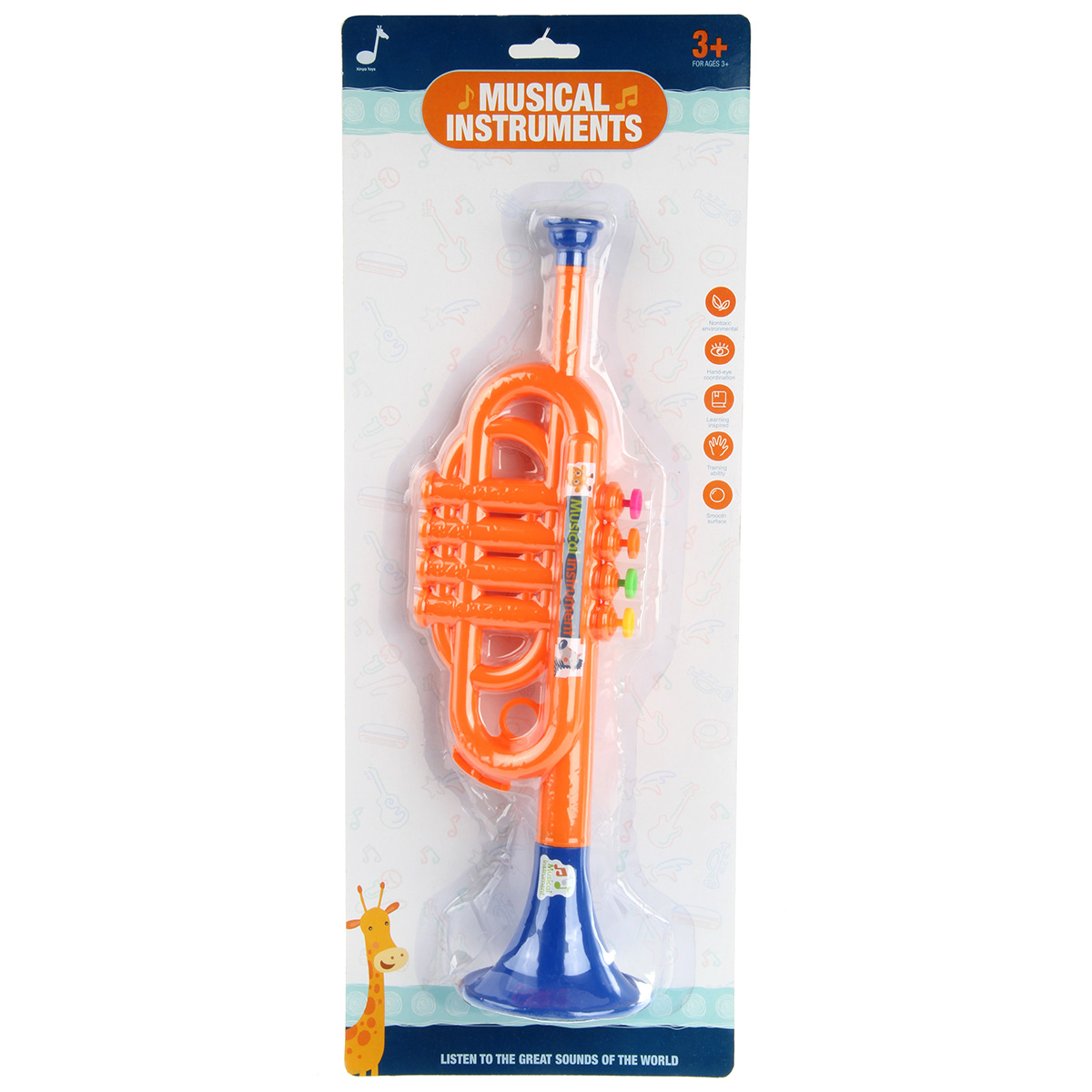 Эта красивая и яркая труба понравится каждому маленькому музыканту и меломану. Играть на ней следует, как на обычной трубе, зажимая клавиши на корпусе. Инструмент будет издавать соответствующий звук. Игрушка развивает артистические способности, воображение, слуховое и зрительное восприятие, координацию движений, мелкую моторику рук, знакомит с миром музыкальных инструментов. Инструмент идеально подойдет для маленьких пальчиков. Игрушка представлена в ассортименте. Игрушка изготовлена из качественного и безопасного полимерного материала, упакована в блистер с отверстием. Размеры игрушки: 35*9*11,5 см. Размеры игрушки в упаковке: 18,5*5*49 см.