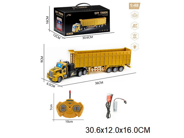 В наборе тягач, прицеп, пульт управления, USB кабель, аккумулятор 3.7V.