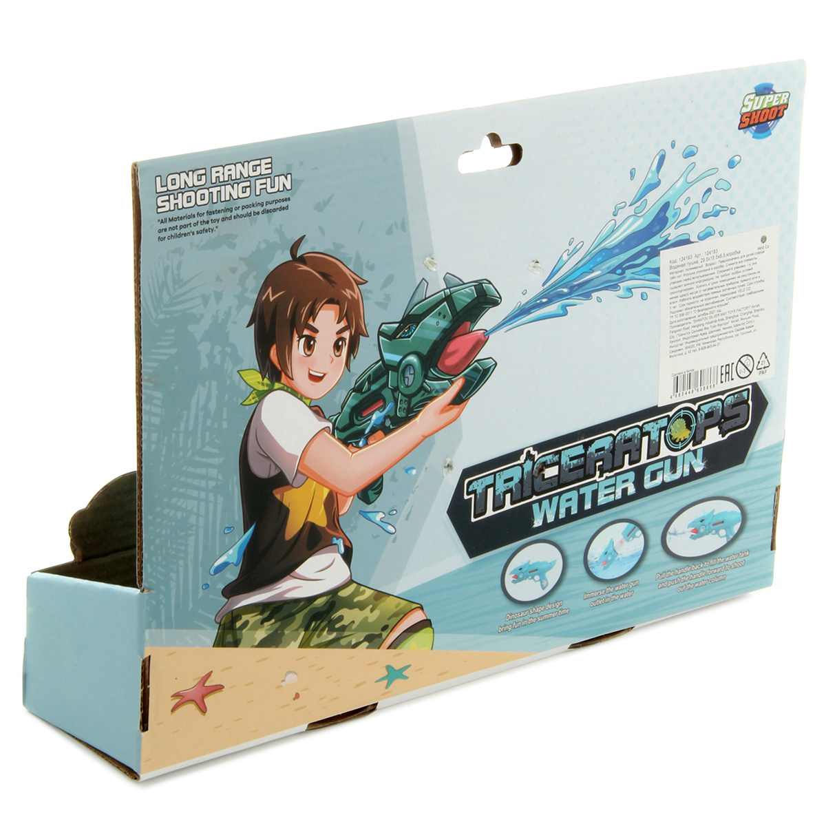 Замечательная игрушка для летних забав - водяная пушка. Красивый и яркий дизайн, простота использования. Игрушка водная пушка разнообразит сюжетно-ролевые игры. Функционал игрушки: -пушка работает по принципу насоса; -вода заполняется при отводе поршня, выстреливается при возврате. Размеры упаковки: 31*7*21 см. Размеры пистолета: 29*7*20 см. Изготовлено из пластика.