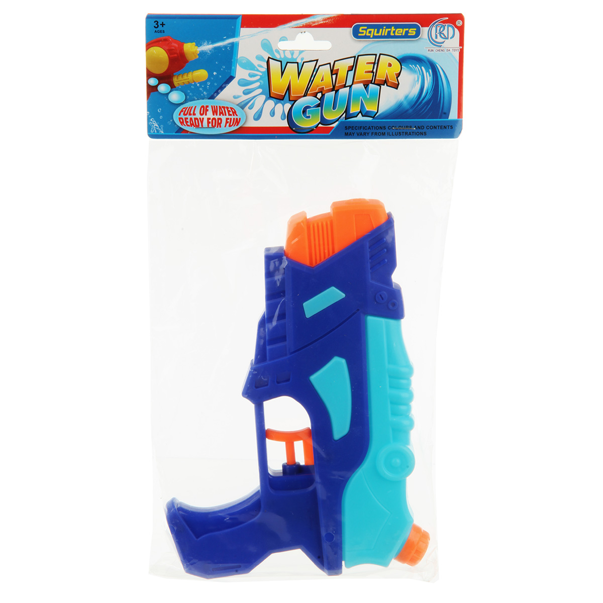 Замечательная игрушка для летних забав - водный пистолет. Принцип работы: - открутите крышечку, налейте внутрь воду; - прицельтесь и нажмите на спусковой крючок. Игрушка изготовлена из качественного и безопасного полимерного материала. Размеры игрушки: 21*3*15 см. Размеры в упаковке: 18*3*30 см.