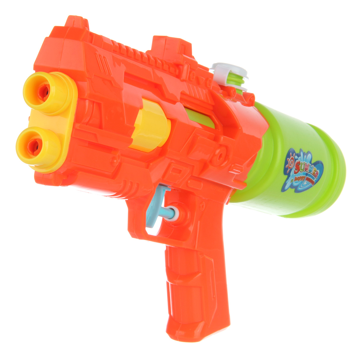 Водный пистолет станет замечательной игрушкой для активных игр на свежем воздухе. Изготовлен из прочных и долговечных материалов. Оформлен в стилизованном дизайне и приятной расцветке. Обладает легким весом, можно взять с собой на дачу, на прогулку, на пляж. В верхней части водного бластера открывается крышечка. Заливаем внутрь воду, закрываем крышечку. Нажимаем на спусковой крючок, оружие выстрелит водой из обоих дул. Такой пистолет с водой станет замечательным подарком детям, мальчику, девочке, на новый год, день рождения и на любой другой повод. Объем резервуара 350 мл. Изготовлено из качественного полимера. Дальность выстрела от 3 до 5 метров. Размер игрушечного оружия 30х7х16 см. Размер упаковки 20х7х39 см.