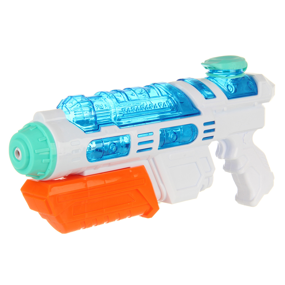 Водный пистолет станет замечательной игрушкой для активных игр на свежем воздухе. Изготовлен из прочных и долговечных материалов. Оформлен в стилизованном дизайне и приятной расцветке. Обладает легким весом, можно взять с собой на дачу, на прогулку, на пляж. Открываем крышку водного бластера, наливаем внутрь воду. Закрываем крышку, передергиваем ручку под стволом, детская игрушка выстрелит водой. С водяным пистолетом можно играть с семьей и друзьями. Такой пистолет с водой станет замечательным подарком детям, мальчику, девочке, на новый год, день рождения и на любой другой повод. Изготовлен из качественного полимера. Объем резервуара 400 мл. Дальность выстрела от 5 до 7 метров. Размер игрушечного оружия 33х6х17 см. Размер упаковки 22х6х40 см.
