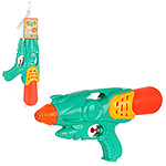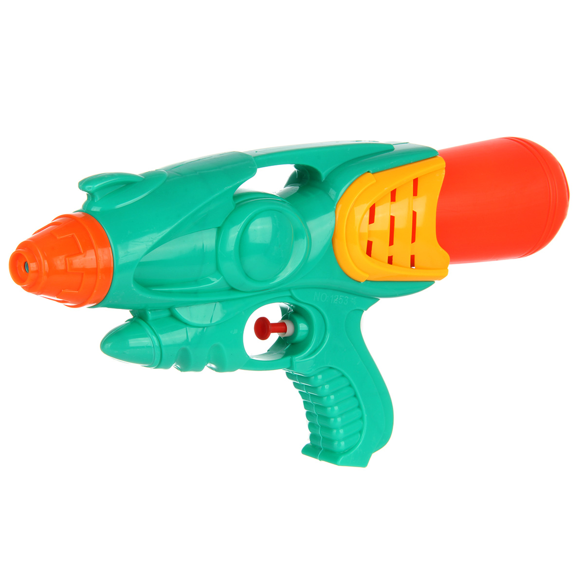 Водный пистолет станет замечательной игрушкой для активных игр на свежем воздухе. Изготовлен из прочных и долговечных материалов. Оформлен в стилизованном дизайне и приятной расцветке. Обладает легким весом, можно взять с собой на дачу, на прогулку, на пляж. Откручиваем резервуар водного бластера, наполняем водой. Возвращаем резервуар на место. Для выстрела передергиваем ручку под стволом водного бластера. Нажимаем на спусковой крючок, оружие выстрелит водой. Такой пистолет с водой станет замечательным подарком детям, мальчику, девочке, на новый год, день рождения и на любой другой повод. Изготовлено из качественного полимера. Объем резервуара 560 мл. Дальность выстрела 3 метра. Размер игрушечного оружия 34х6х18 см. Размер упаковки 17х6х43 см.
