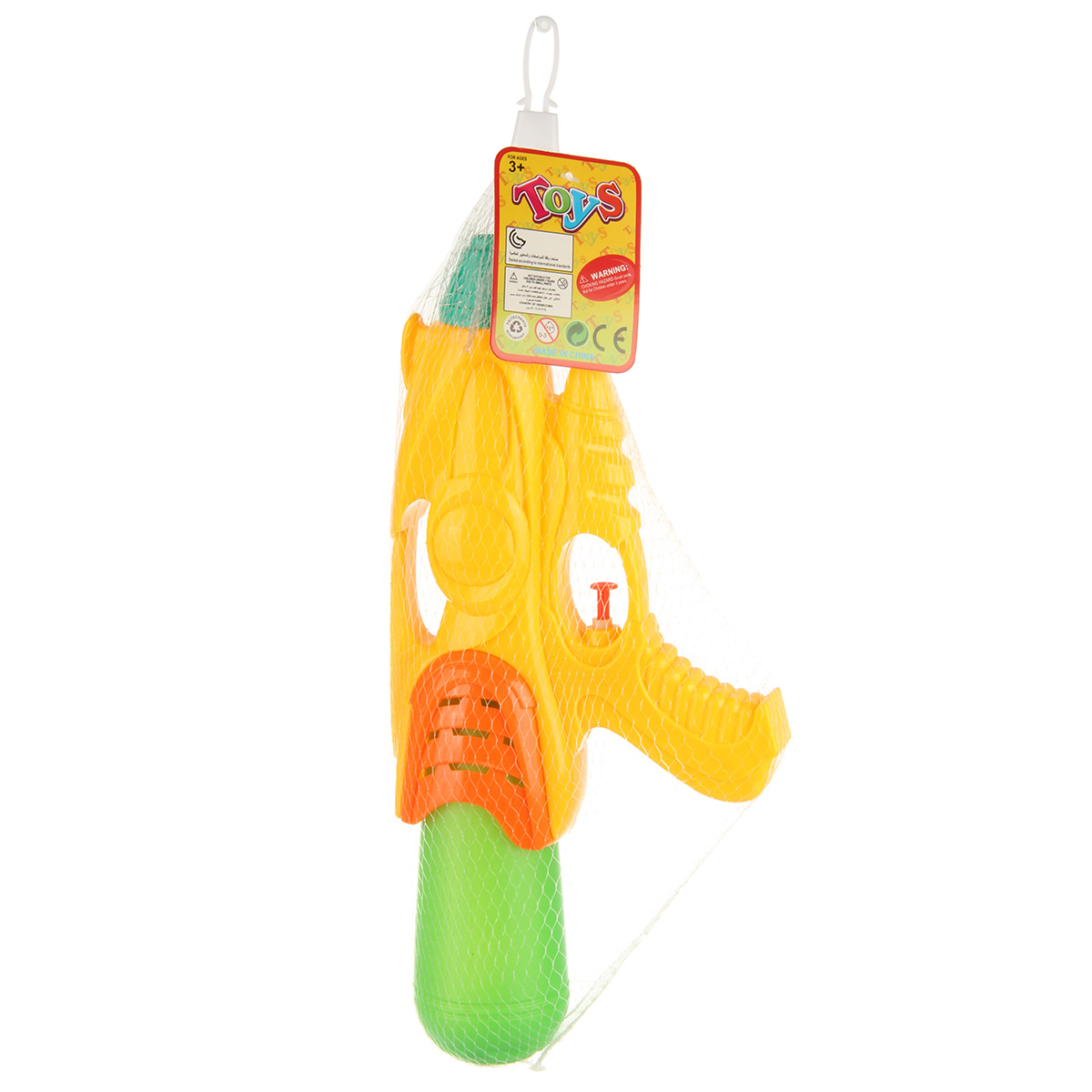 Игрушечный водный пистолет замечательно дополнят активные летние игры. Изготовлен из прочного и долговечного материала. Оформлен в стилизованном дизайне и яркой расцветке. Откручиваем резервуар, наполняем водой. Возвращаем резервуар на место. Для выстрела нажимаем на спусковой крючок под дулом. Оружие выстрелит водой. Водяной пистолет стреляет водой, а не твердыми предметами, безопасно. С такой игрушкой ребёнок в игровой форме будет развивать мелкую моторику, координацию движений, зрительное восприятие. Обладает легким весом, игрушку удобно брать с собой на прогулку, на дачу, на море. Водное оружие станет замечательным подарком детям, мальчику, девочке, на новый год, день рождения и на любой другой повод. Изготовлено из качественного полимера. Объем резервуара 350 мл. Дальность выстрела от 3 до 5 метров. Размер игрушечного оружия 35х6х19 см. Размер упаковки 36х6х19 см.