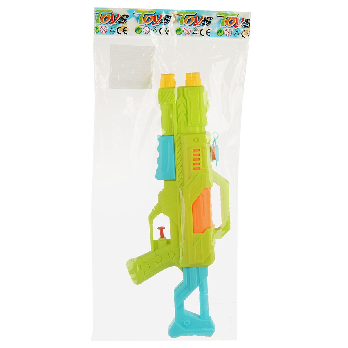 Игрушечный водный пистолет замечательно дополнят активные летние игры. Изготовлен из прочного и долговечного материала. Оформлен в стилизованном дизайне и яркой расцветке. Открываем крышечку в верхней части корпуса оружия. Заливаем внутрь воду, закрываем крышечку. Нажимаем на кнопку под ручкой ствола, из обоих дул пистолета выстрелит вода. Водяной пистолет стреляет водой, а не твердыми предметами, безопасно. С такой игрушкой ребёнок в игровой форме будет развивать мелкую моторику, координацию движений, зрительное восприятие. Обладает легким весом, игрушку удобно брать с собой на прогулку, на дачу, на море. Водное оружие станет замечательным подарком детям, мальчику, девочке, на новый год, день рождения и на любой другой повод. Изготовлено из качественного полимера. Объём резервуара 100 мл. Дальность выстрела от 3 до 5 метров. Размер игрушечного оружия 37х5х16 см. Размер упаковки 21х5х48 см