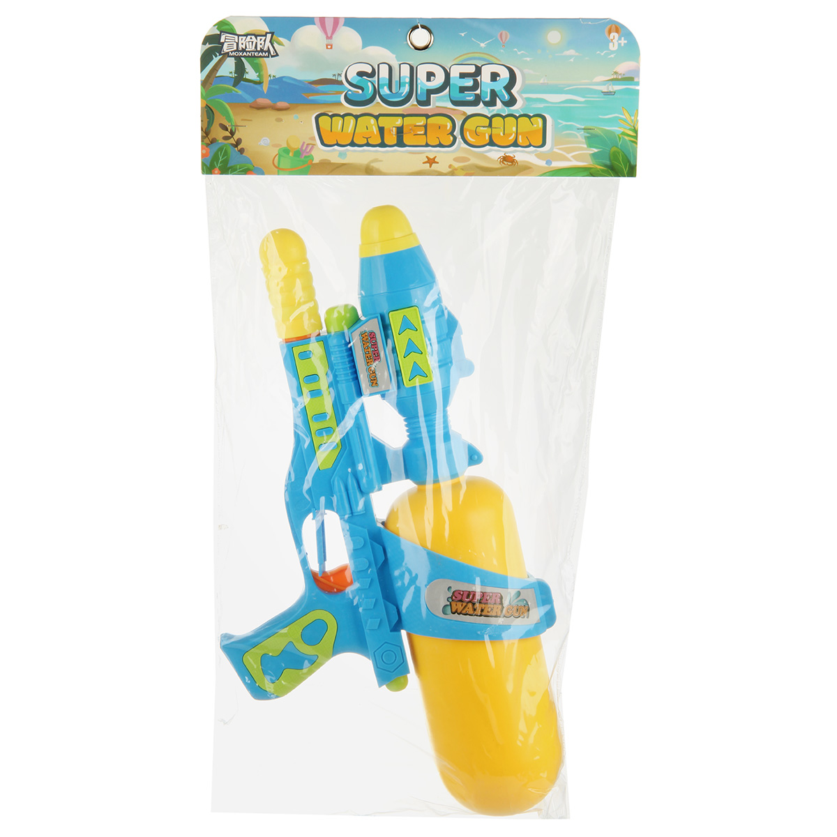 Игрушечный водный пистолет замечательно дополнят активные летние игры. Изготовлен из прочного и долговечного материала. Оформлен в стилизованном дизайне и яркой расцветке. Откручиваем крышечку в верхней части корпуса оружия. Заливаем внутрь воду, закручиваем крышечку. Нажимаем на копку под дулом, игрушка выстрелит водой. Водяной пистолет стреляет водой, а не твердыми предметами, безопасно. С такой игрушкой ребёнок в игровой форме будет развивать мелкую моторику, координацию движений, зрительное восприятие. Обладает легким весом, игрушку удобно брать с собой на прогулку, на дачу, на море. Водное оружие станет замечательным подарком детям, мальчику, девочке, на новый год, день рождения и на любой другой повод. Изготовлено из качественного полимера. Объем резервуара для воды 350 мл. Дальность выстрела от 5 до 7 метров. Размер игрушечного оружия 34х4х19 см. Размер упаковки 22х45 см.