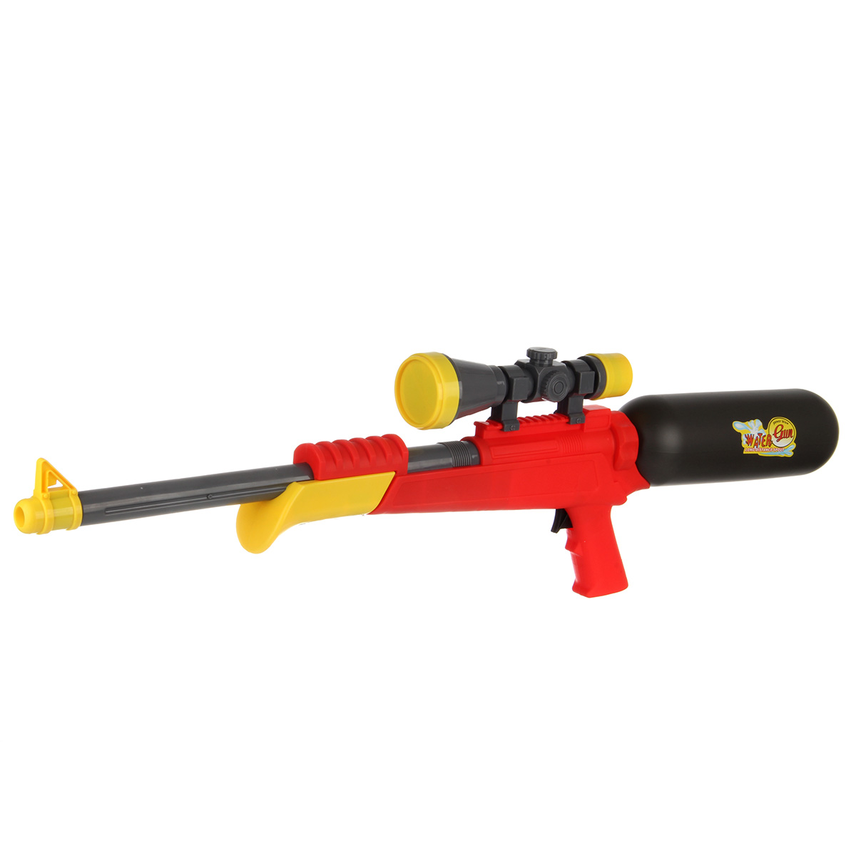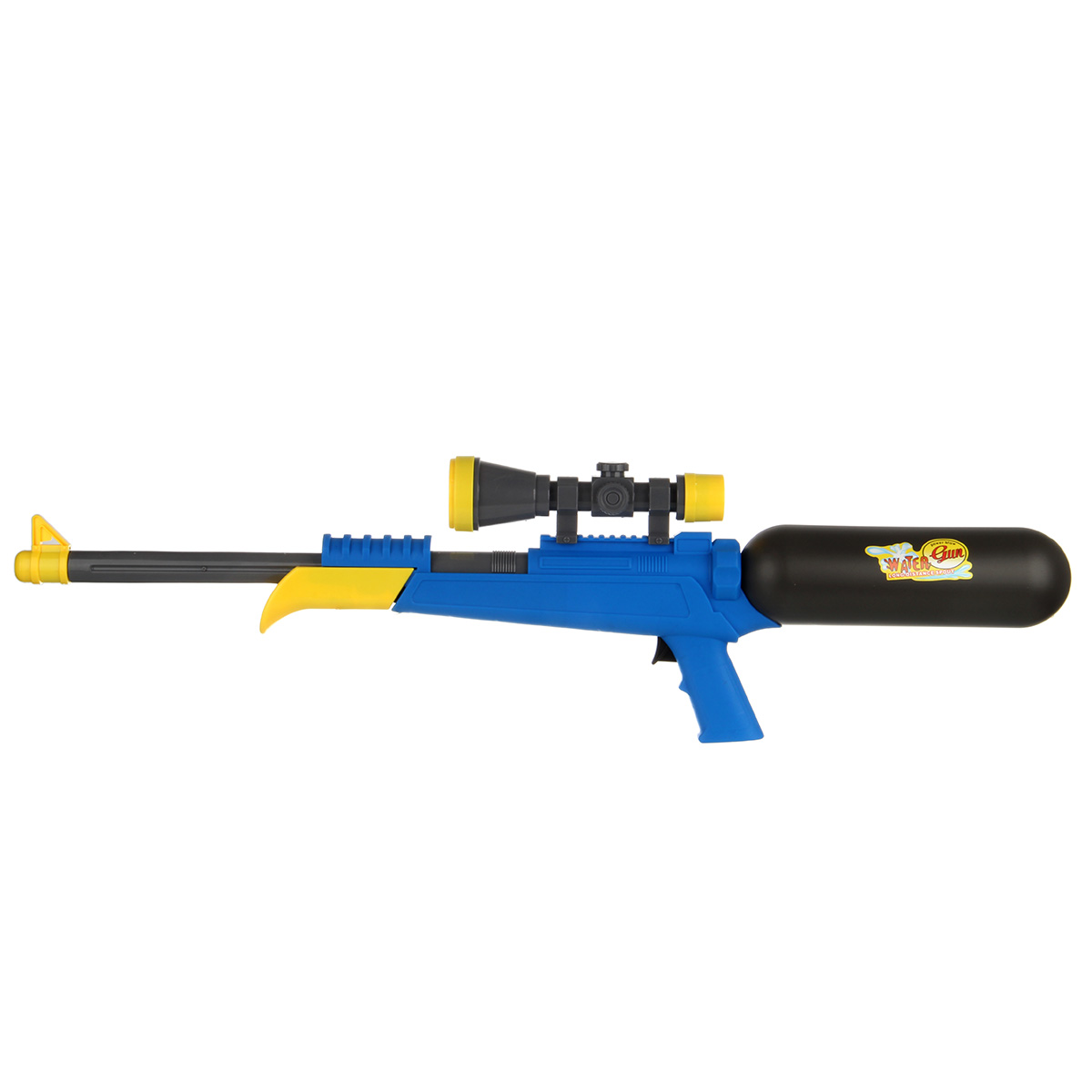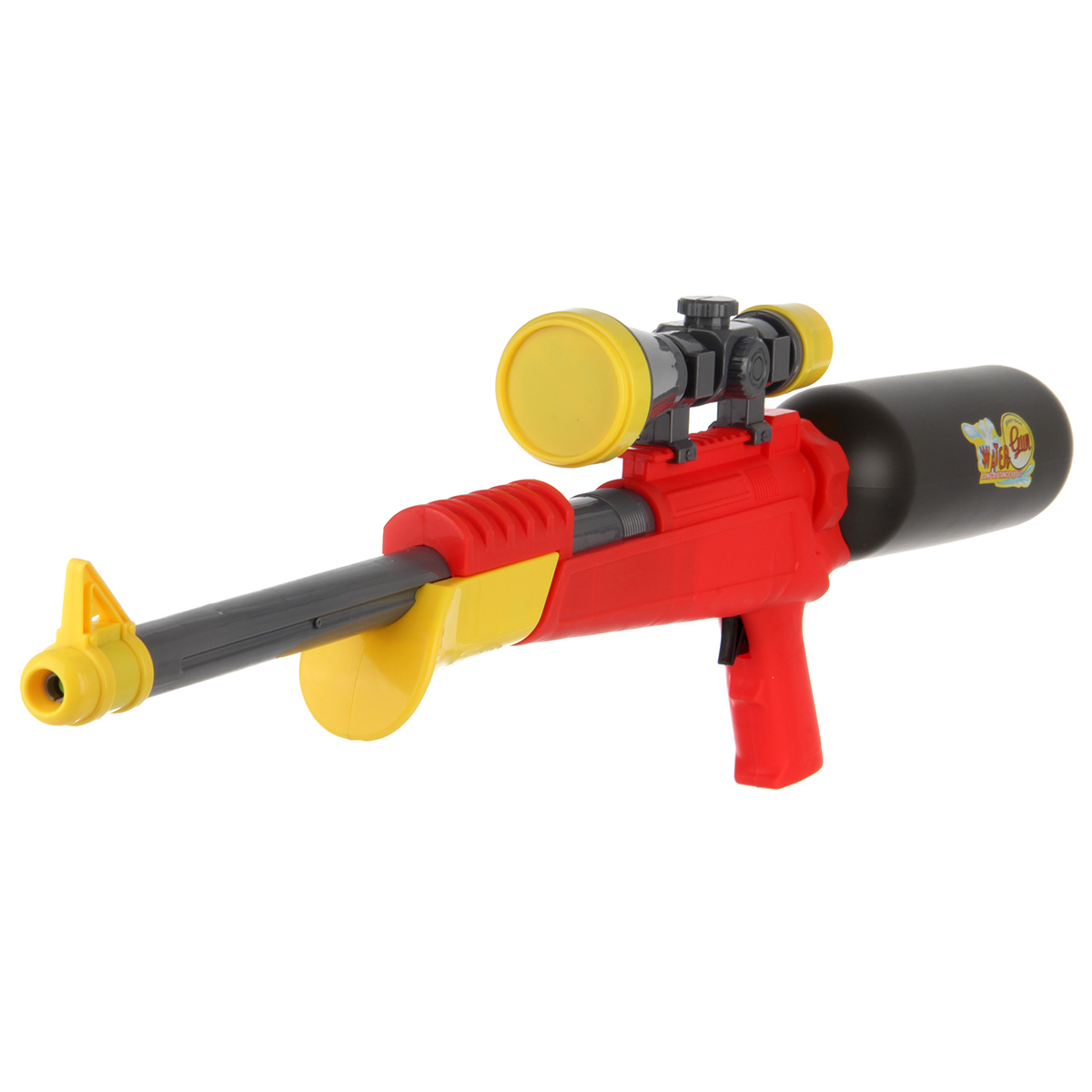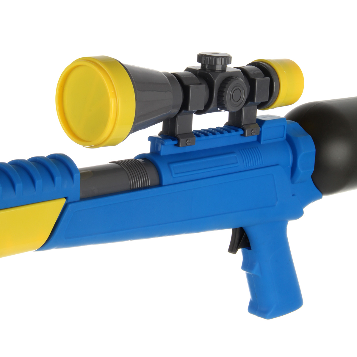 Откручиваем резервуар для воды, наливаем туда воду. Передёргиваем желтую ручку под стволом и нажимаем на спусковой крючок, оружие выстрелит водой.