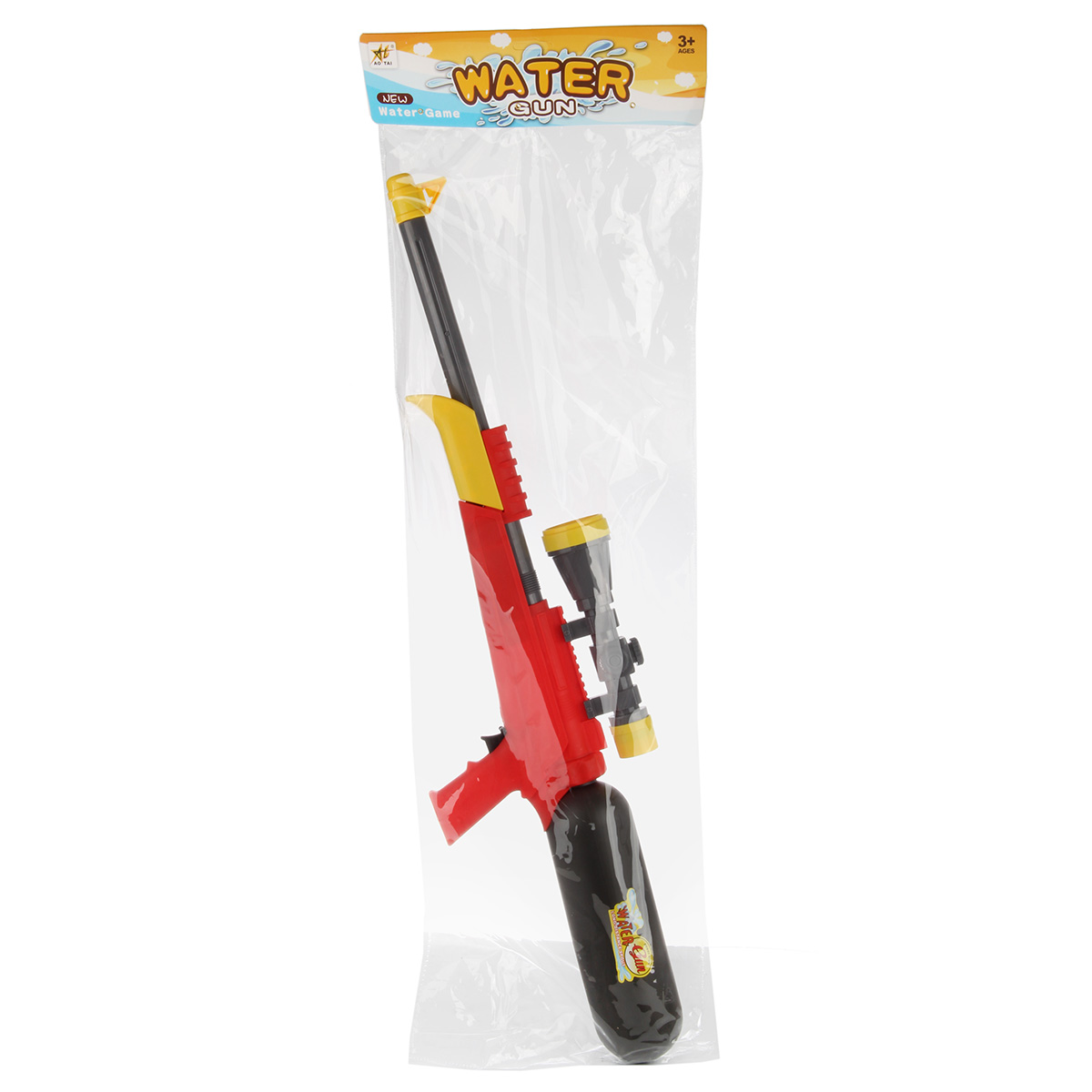 Водный пистолет станет замечательной игрушкой для активных игр на свежем воздухе. Изготовлен из прочных и долговечных материалов. Оформлен в стилизованном дизайне и приятной расцветке. Обладает легким весом, можно взять с собой на дачу, на прогулку, на пляж. Откручиваем резервуар водного бластера, наливаем туда воду. Передёргиваем желтую ручку под стволом и нажимаем на спусковой крючок, детская игрушка выстрелит водой. Такой пистолет с водой станет замечательным подарком детям, мальчику, девочке, на новый год, день рождения и на любой другой повод. Объем резервуара для воды 900 мл. Изготовлено из качественного полимера. Размер игрушечного оружия 78х5х12 см. Дальность стрельбы 5-7 метров. Размер упаковки 28х5х86 см.
