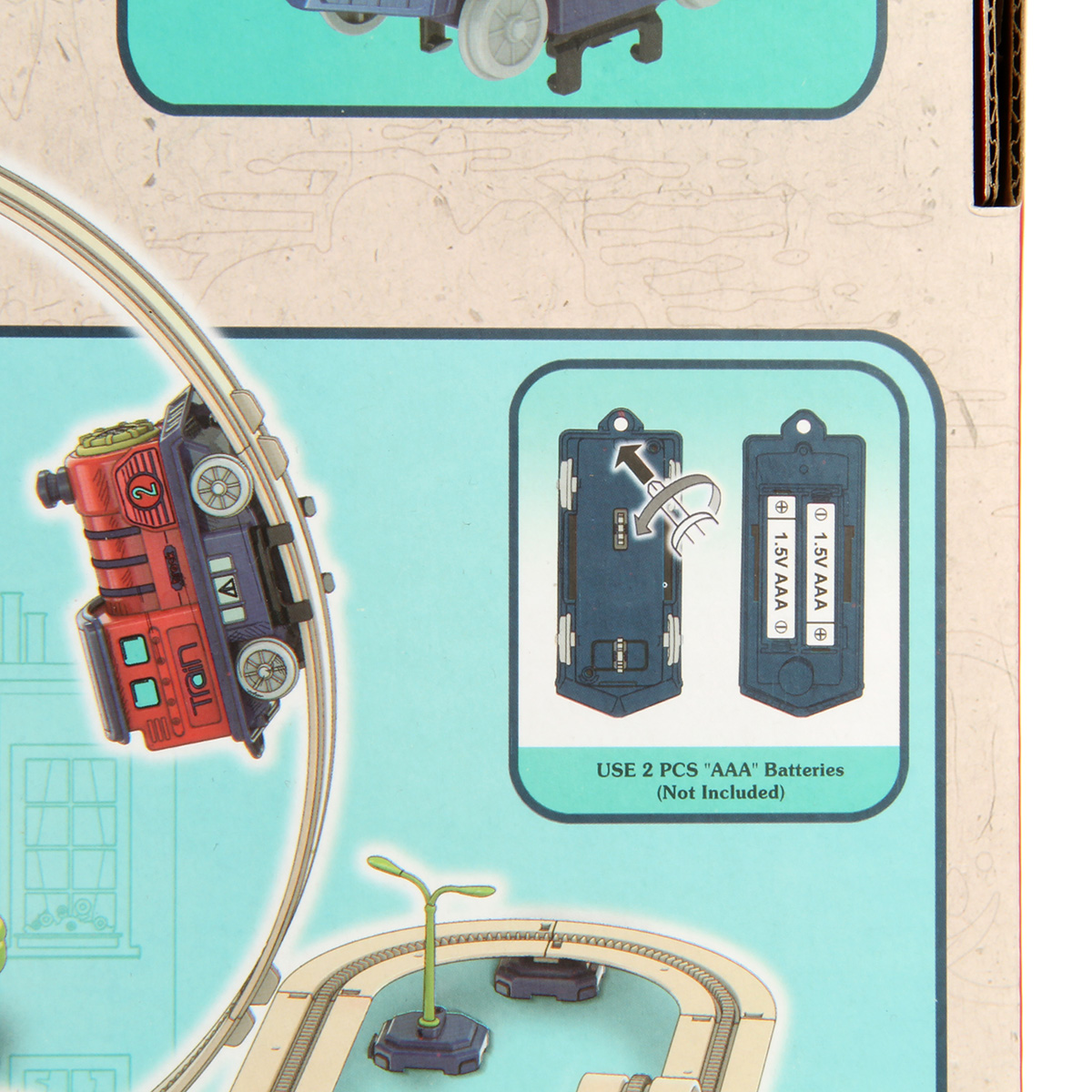 Паровозик работает от 2 батареек ААА, не входят в комплект. Чтобы вставить батарейки, открутите болт на нижней части паровозика, снимите корпус.