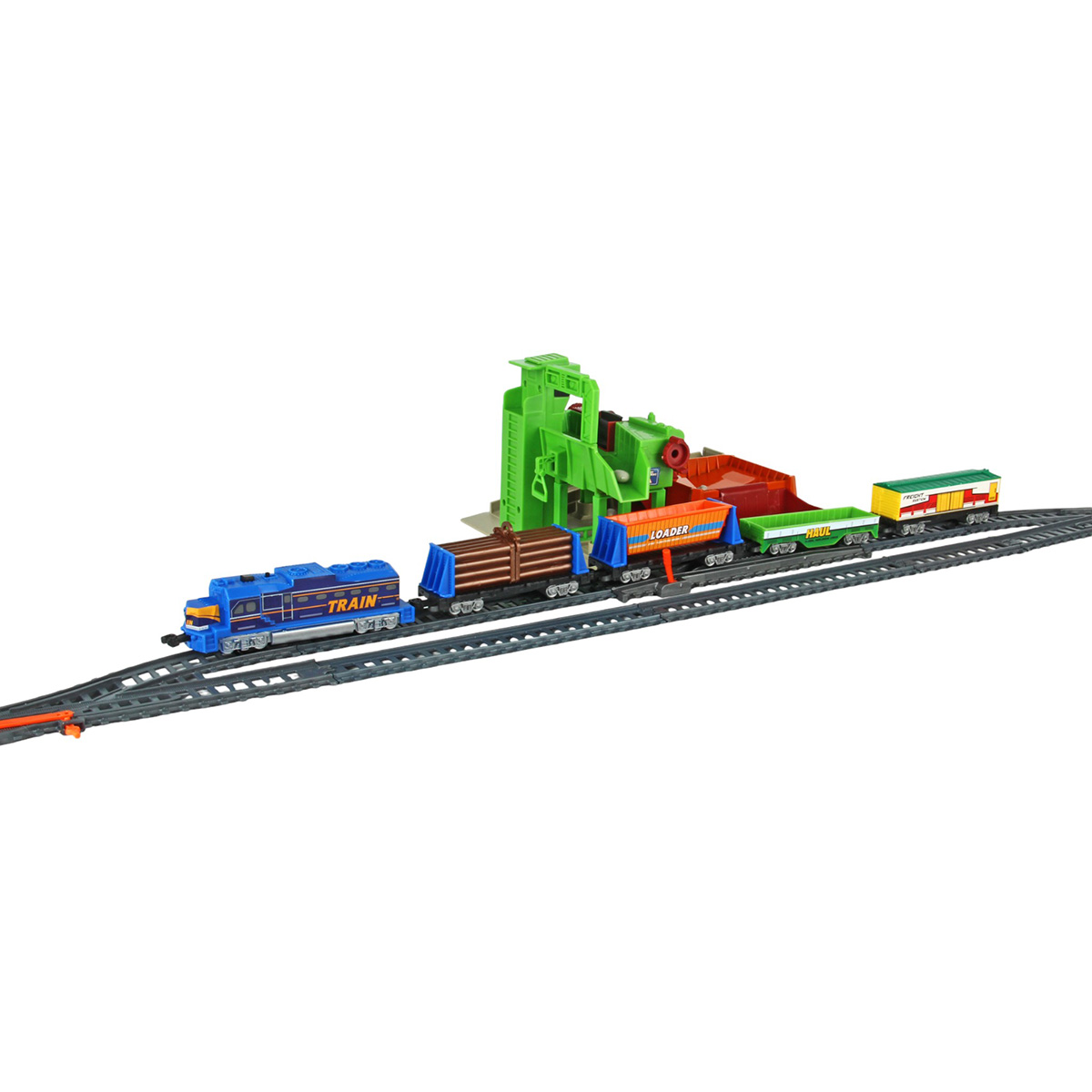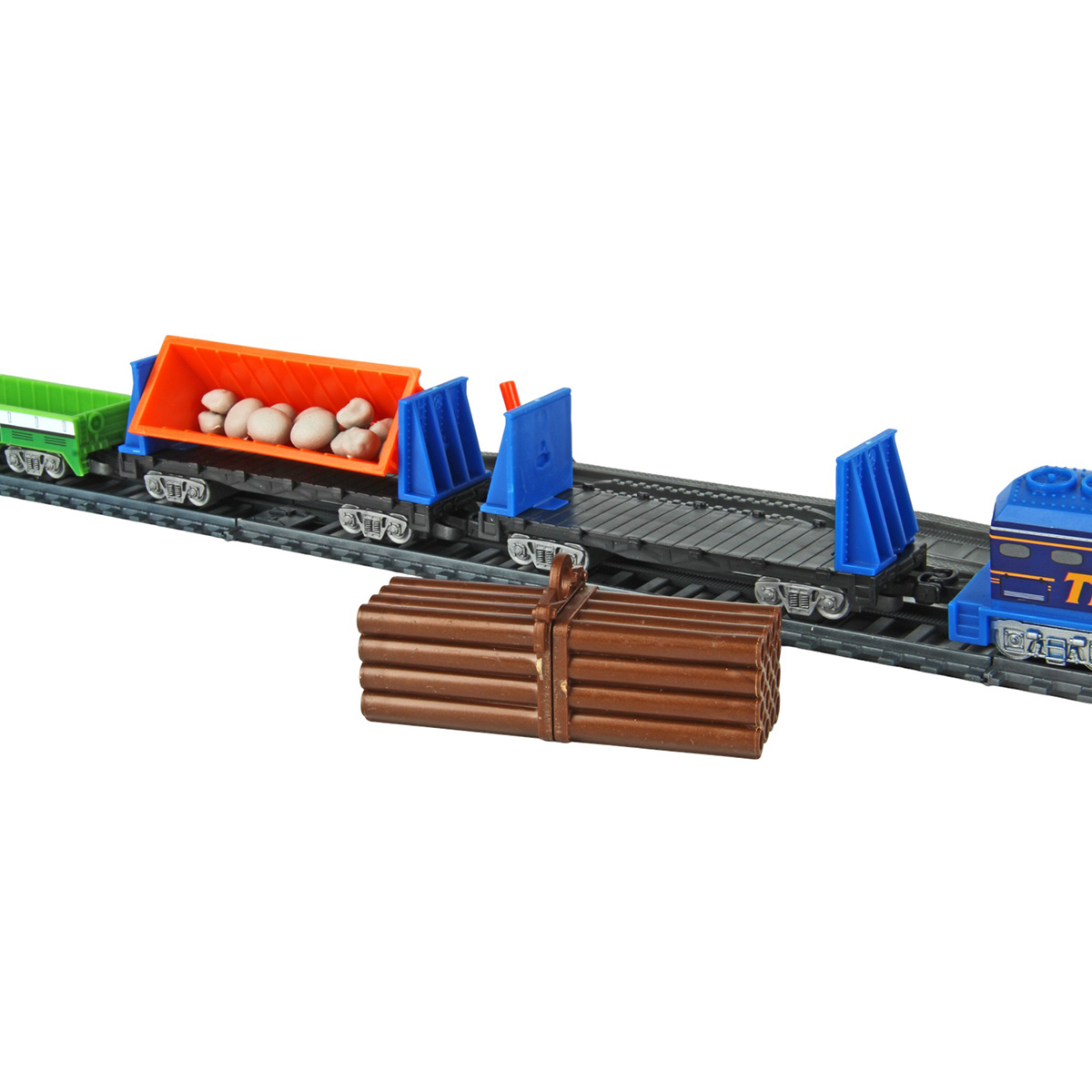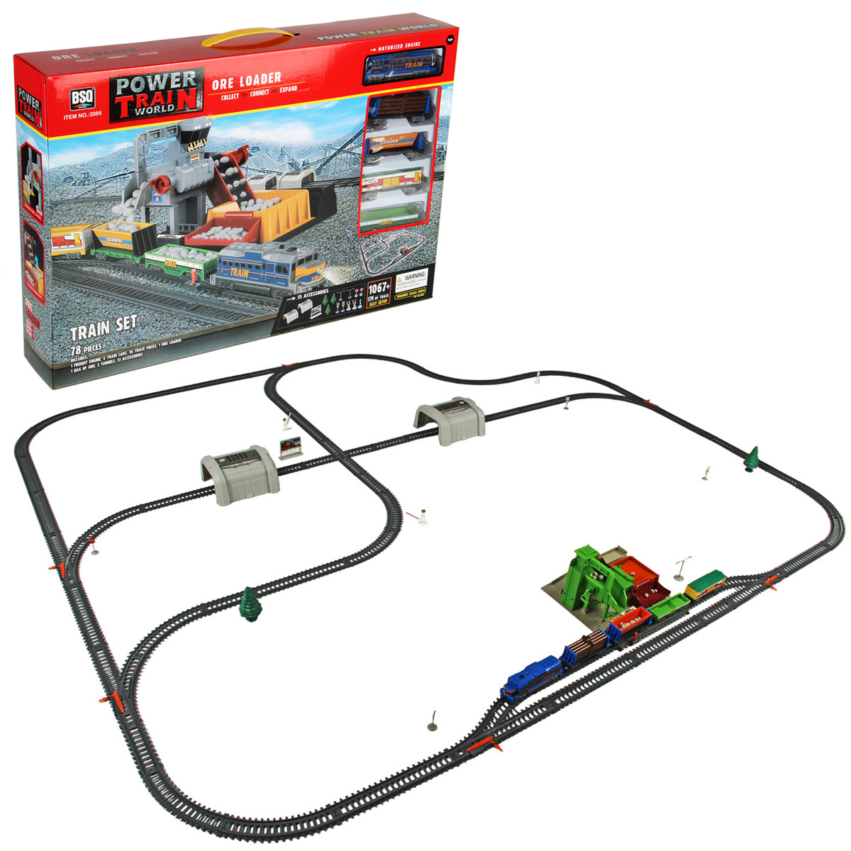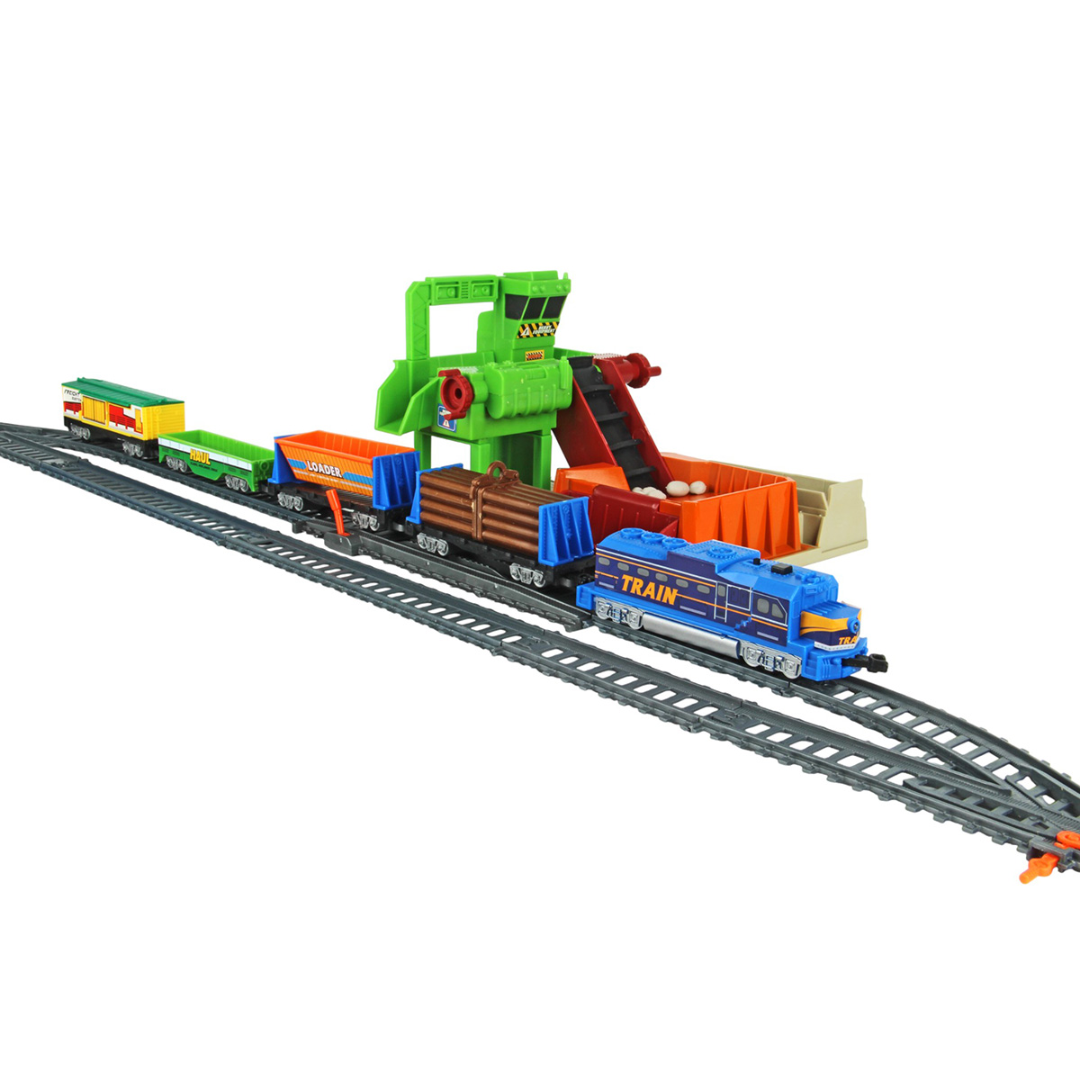Игрушечная железная дорога с каменоломней, множеством аксессуаров, подсветкой. Легкая сборка, движение локомотива вперёд, 2 скорости, более быстрая и более медленная, подсветка носового фонаря, каменоломня с подвижной транспортной лентой, доставка грузов на верхний этаж, можно поместить каменную породу в вагон самосвал. Смена направления движения поезда путем перевода стрелочных механизмов, железнодорожный переезд с функцией остановки движения локомотива. Игрушка изготовлена из прочных и безопасных материалов в качественном исполнении с вниманием к деталям.