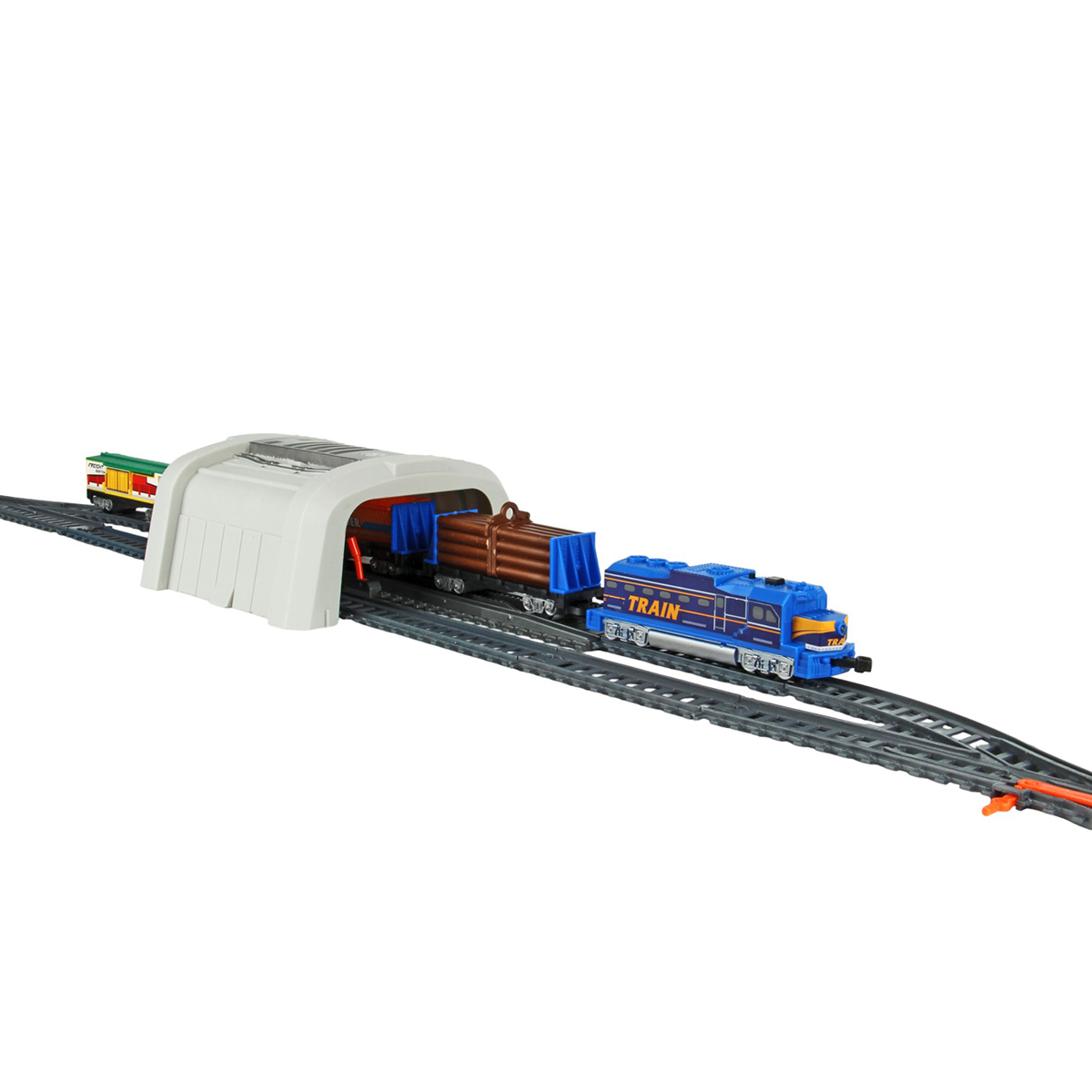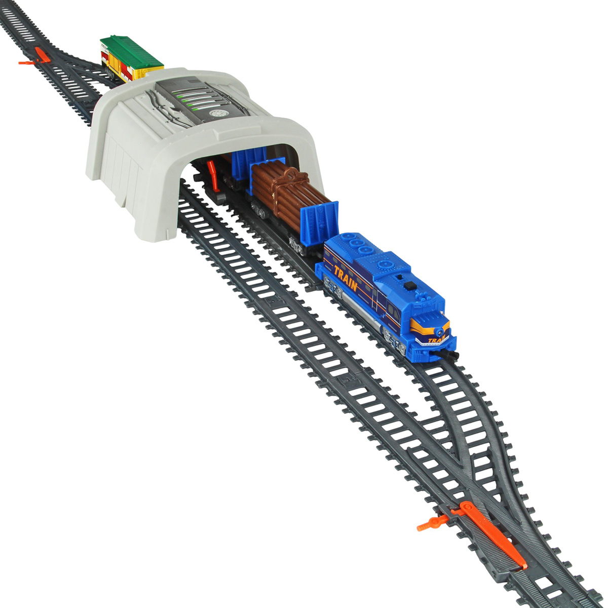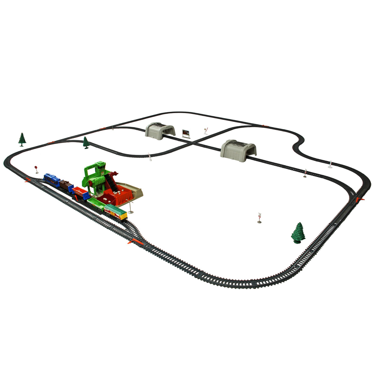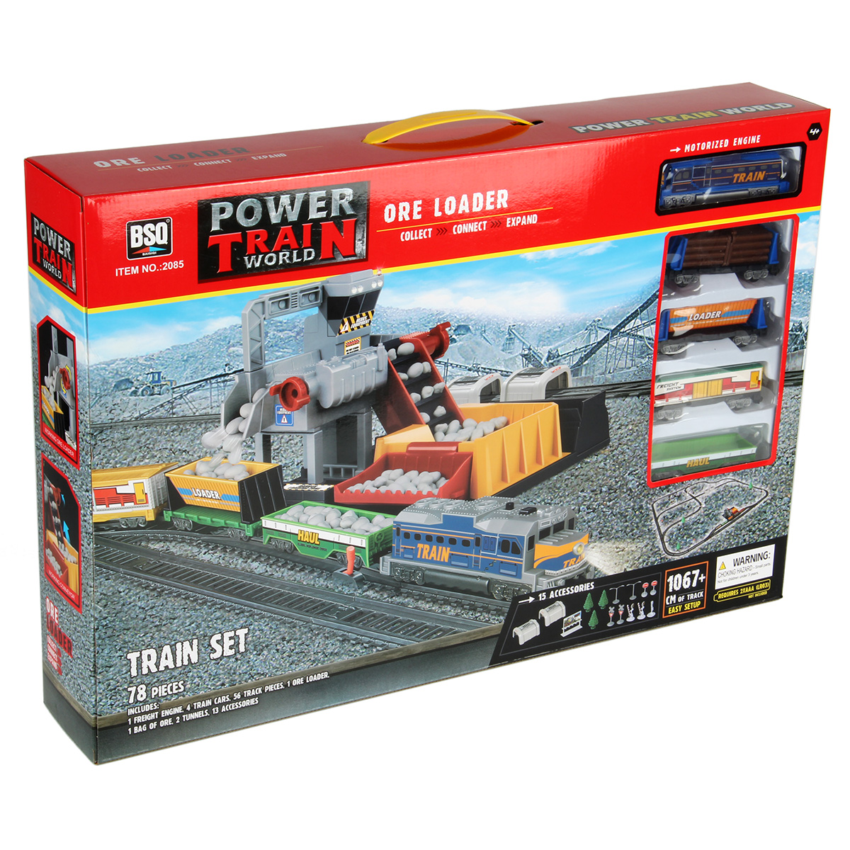 Игрушечная железная дорога с каменоломней, множеством аксессуаров, подсветкой. Легкая сборка, движение локомотива вперёд, 2 скорости, более быстрая и более медленная, подсветка носового фонаря, каменоломня с подвижной транспортной лентой, доставка грузов на верхний этаж, можно поместить каменную породу в вагон самосвал. Смена направления движения поезда путем перевода стрелочных механизмов, железнодорожный переезд с функцией остановки движения локомотива. Игрушка изготовлена из прочных и безопасных материалов в качественном исполнении с вниманием к деталям.