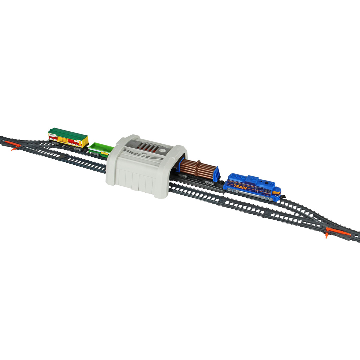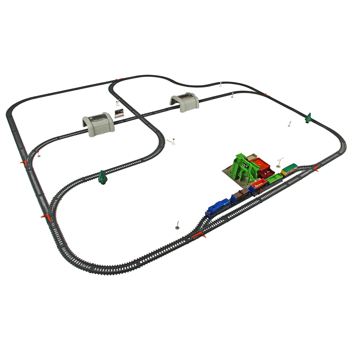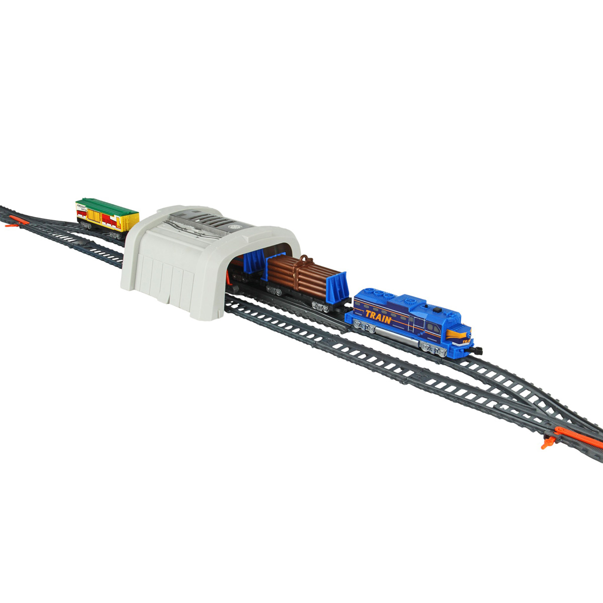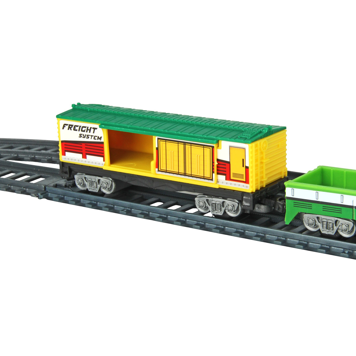 Игрушечная железная дорога с каменоломней, множеством аксессуаров, подсветкой. Легкая сборка, движение локомотива вперёд, 2 скорости, более быстрая и более медленная, подсветка носового фонаря, каменоломня с подвижной транспортной лентой, доставка грузов на верхний этаж, можно поместить каменную породу в вагон самосвал. Смена направления движения поезда путем перевода стрелочных механизмов, железнодорожный переезд с функцией остановки движения локомотива. Игрушка изготовлена из прочных и безопасных материалов в качественном исполнении с вниманием к деталям.