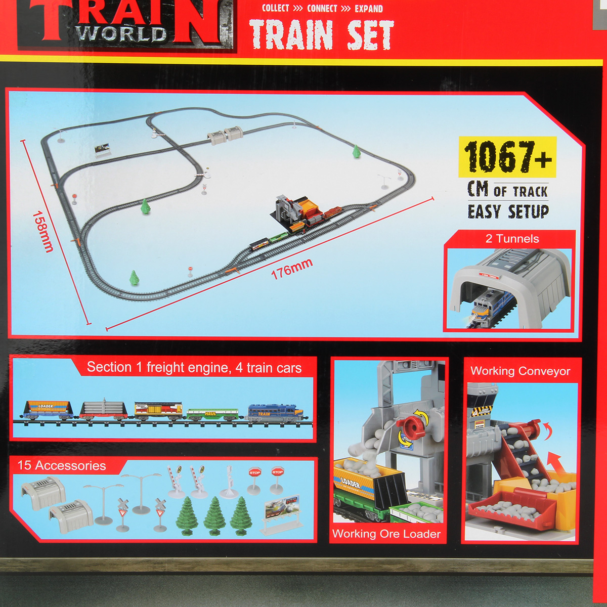 Размер железной дороги в собранном виде с учетом каменоломни 176х158х12 см.