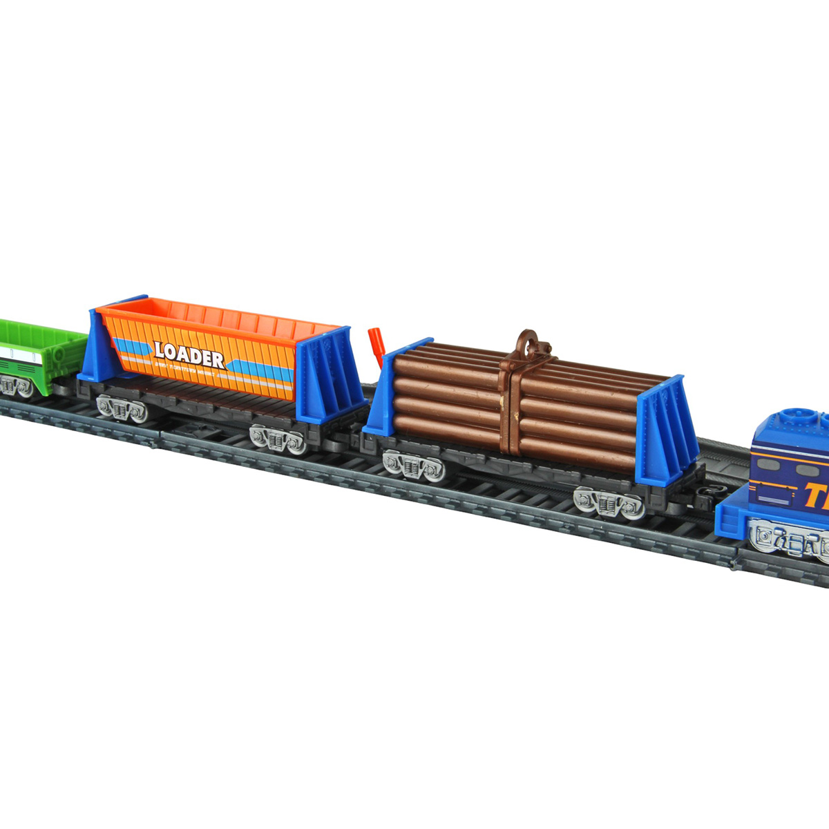 1. Локомотив едет вперед, подсветка носового фонаря красным, 2 скорости, более быстрая и более медленная, задний привод. Локомотив соединяется с вагонами с помощью сцепки.