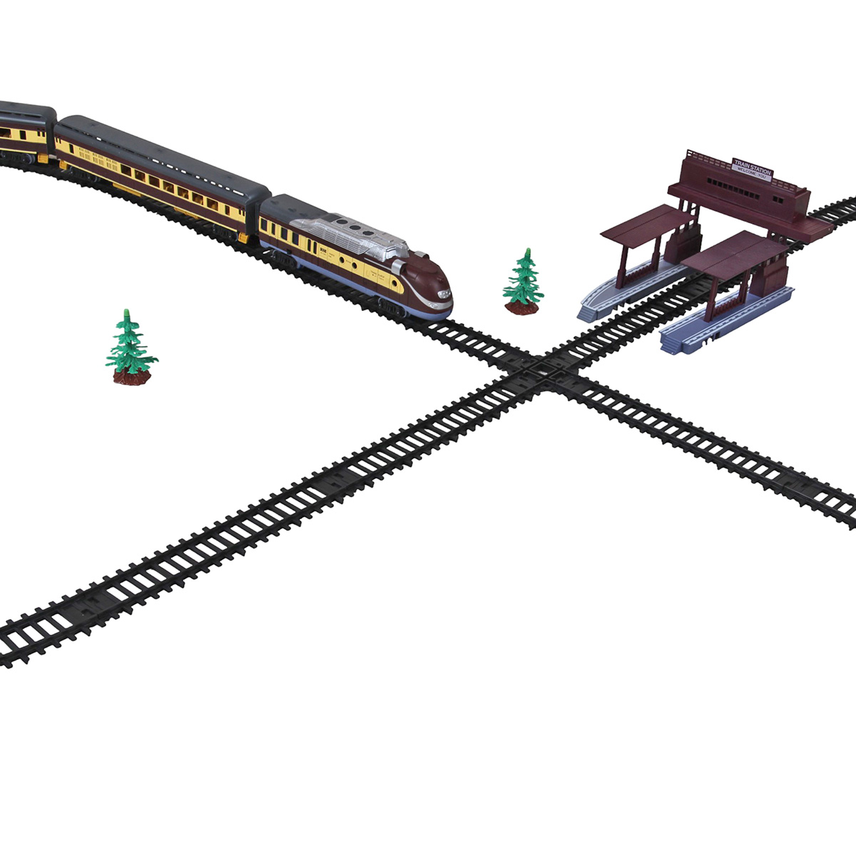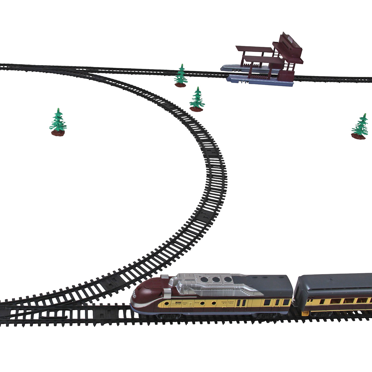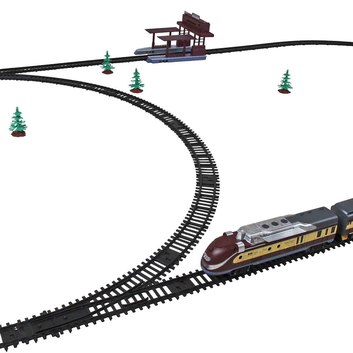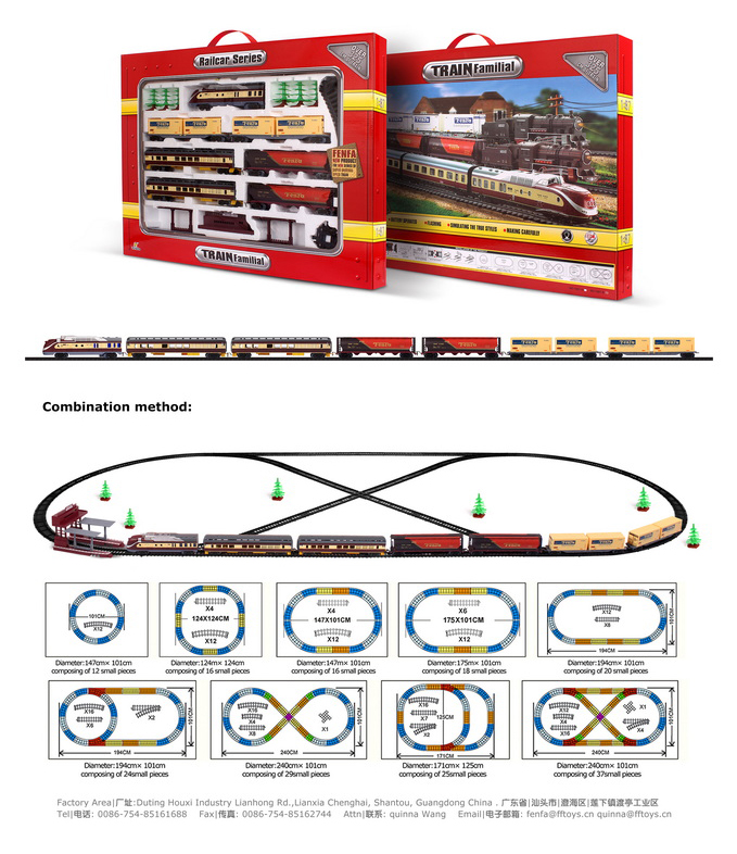 2. Железная дорога легко собирается и разбирается, различные варианты сборки, в виде круга, в виде восьмерки, в виде овала. Благодаря наличию четырех элементов железной дороги с развилками можно менять направление. Вручную направить локомотив, поставив его на путь, который нужен. Есть деталь перекресток.