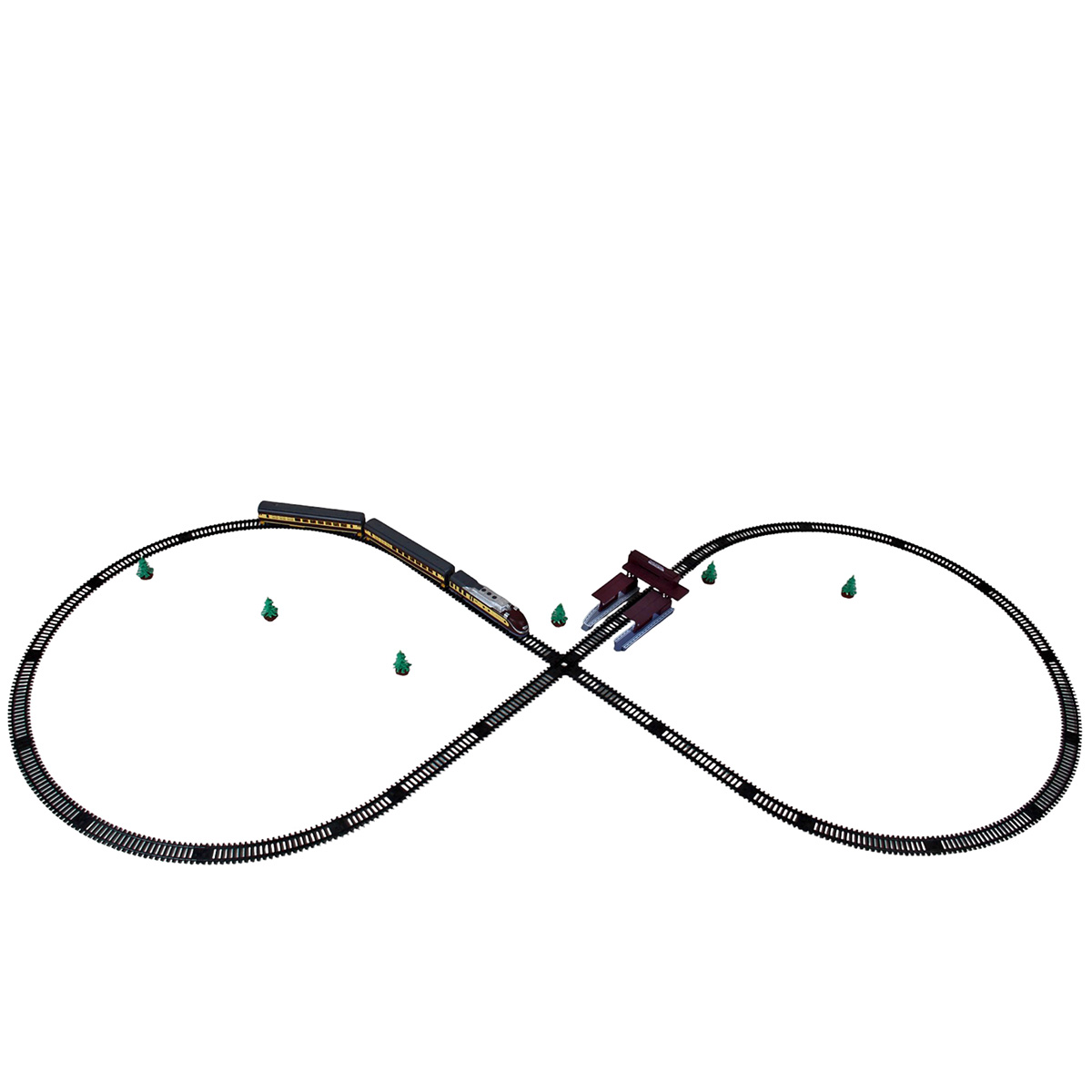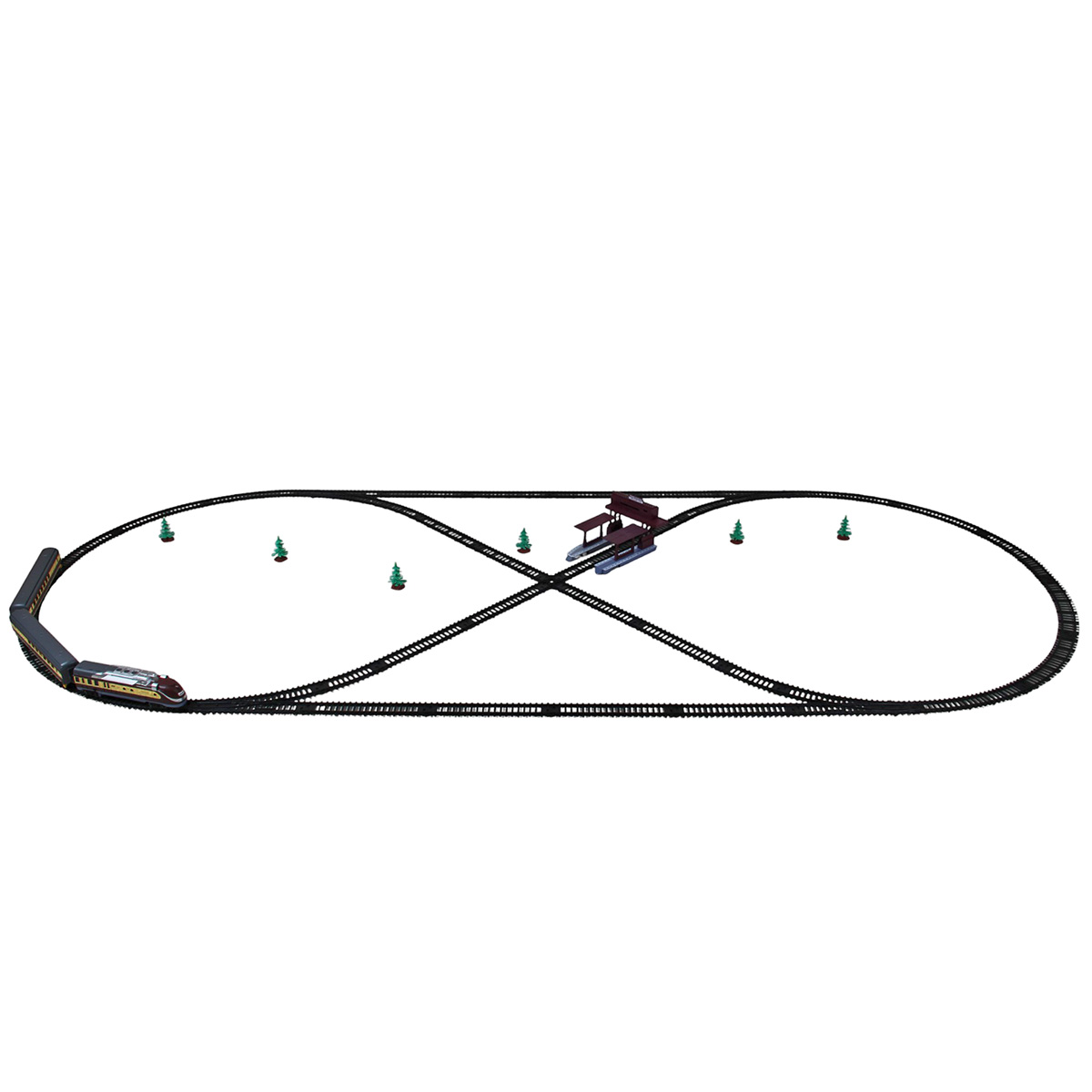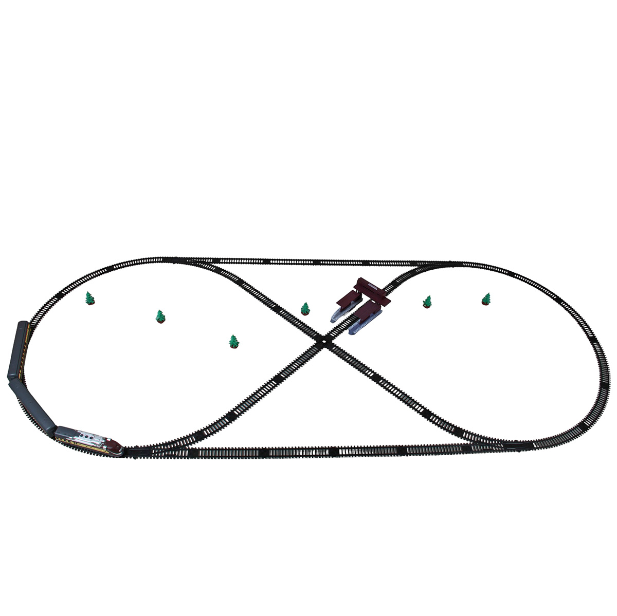 Размер железной дороги, собранной в виде восьмерки 240х101 см.