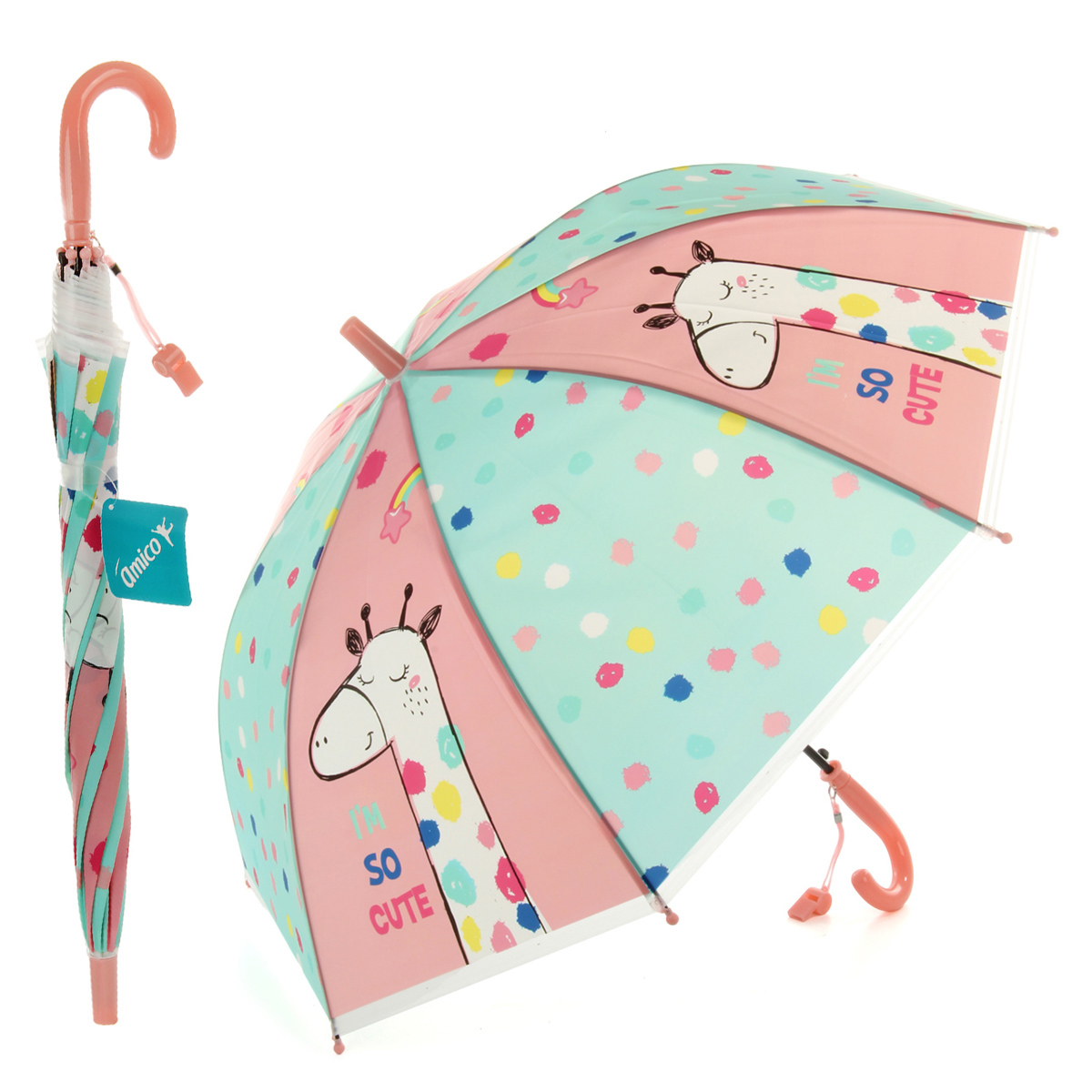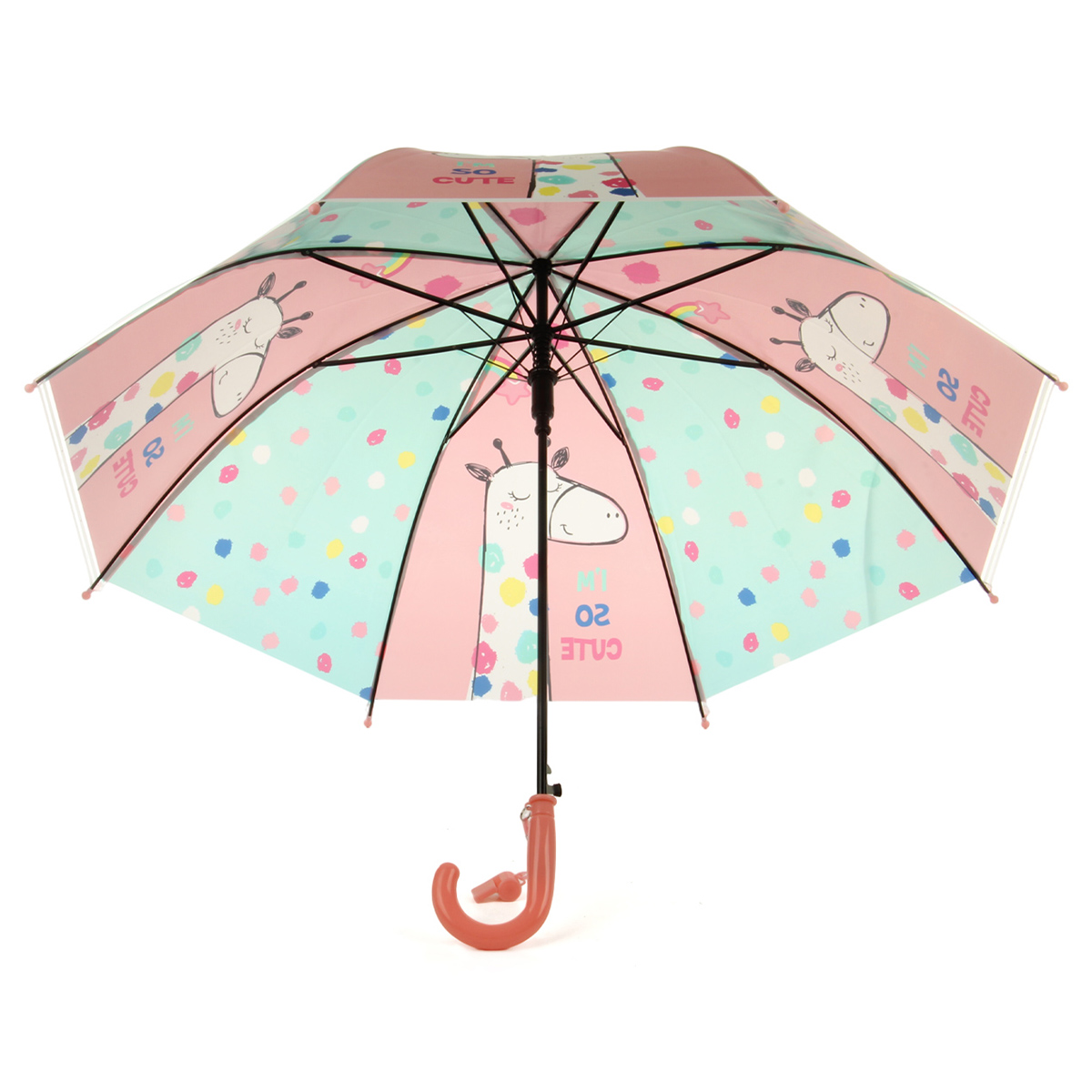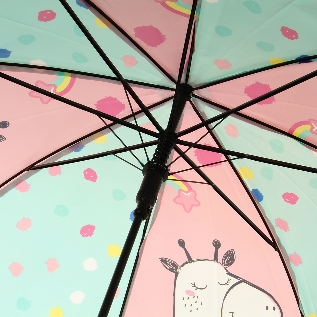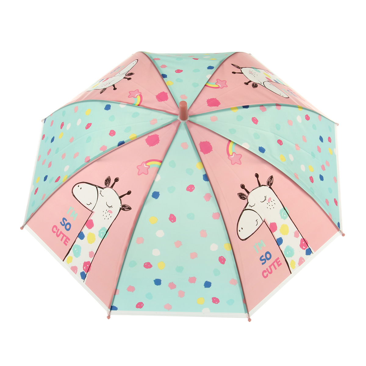 Зонтик трость с милым принтом заметен в толпе, имеет удобную закругленную ручку, комфортно держать, пластиковая ручка не дает ладони замерзнуть.